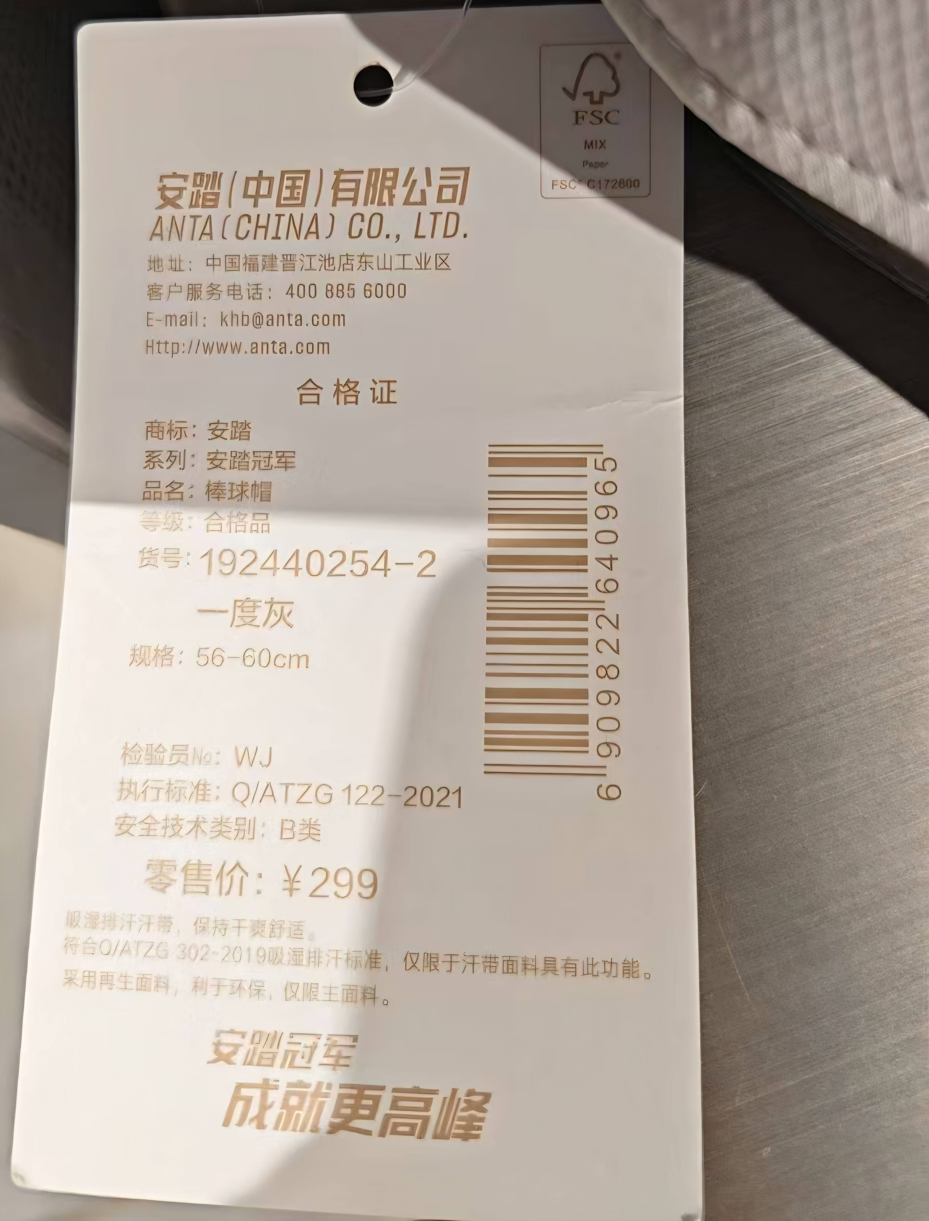 Anta Sun Hat Sponsored by the National Team Flag Edition Champion Men's and Women's Sports Cap Baseball Cap 192440254