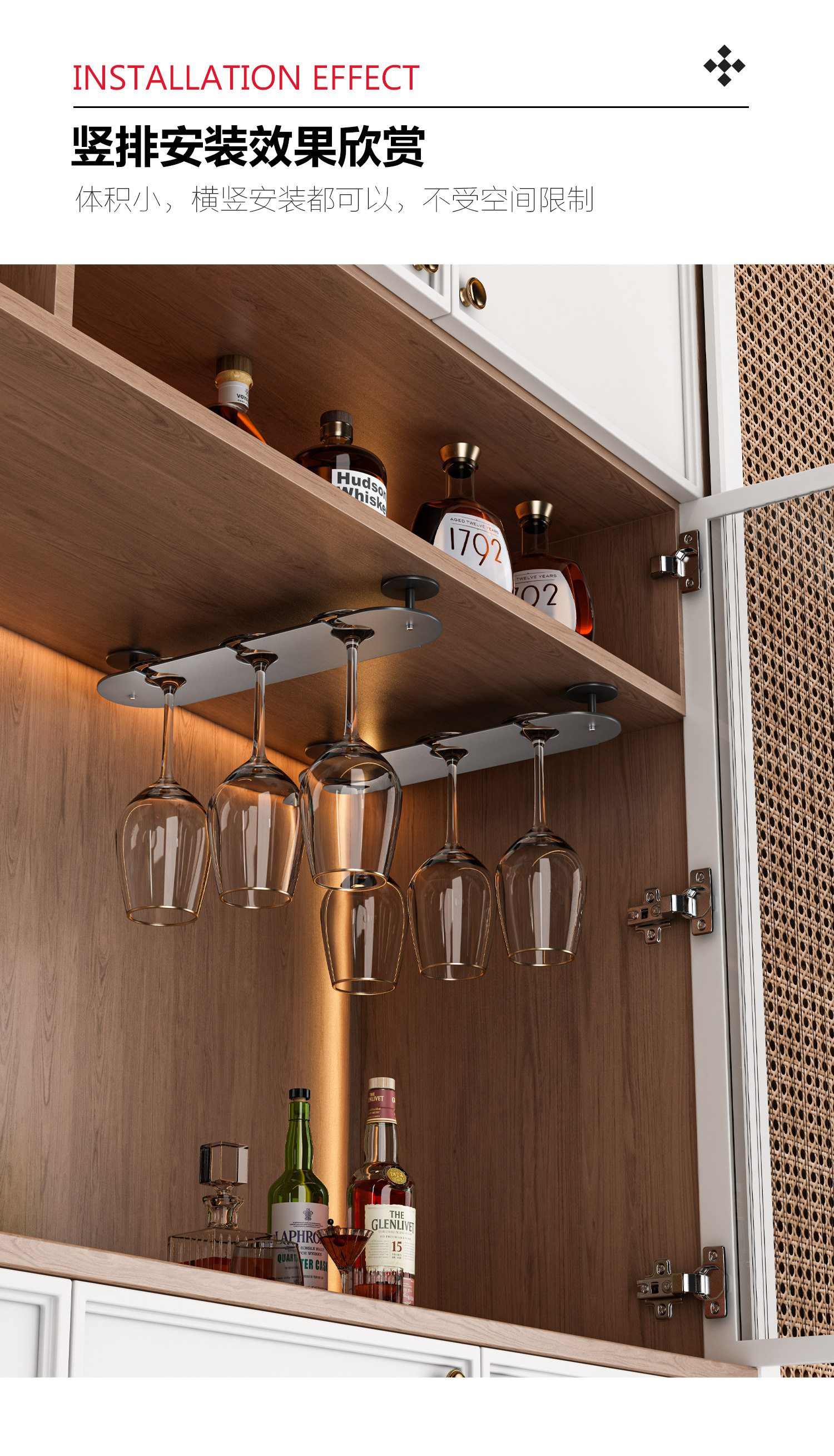 Red Wine Glass Rack, Upside-Down Hanging Goblet Storage Rack, Wine Cabinet Storage, Light Luxury Single-Row Household Hanging Wine Glass Rack