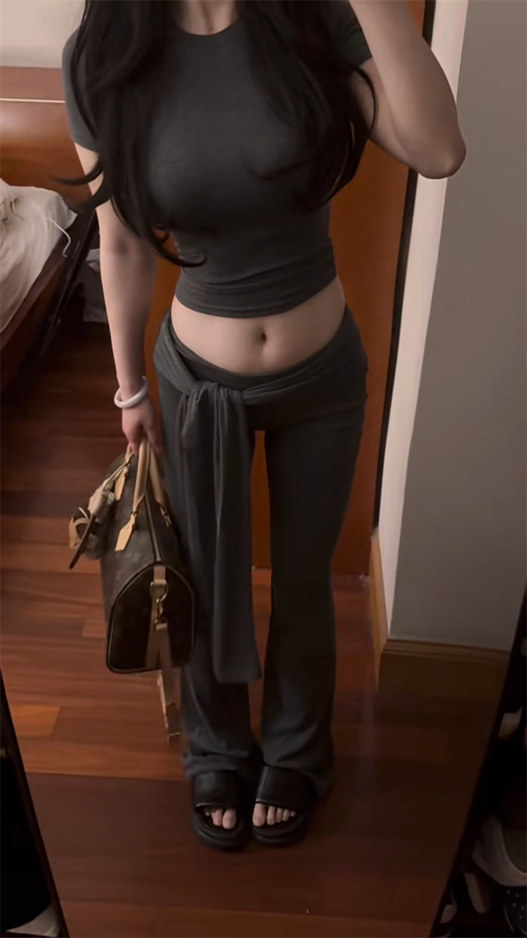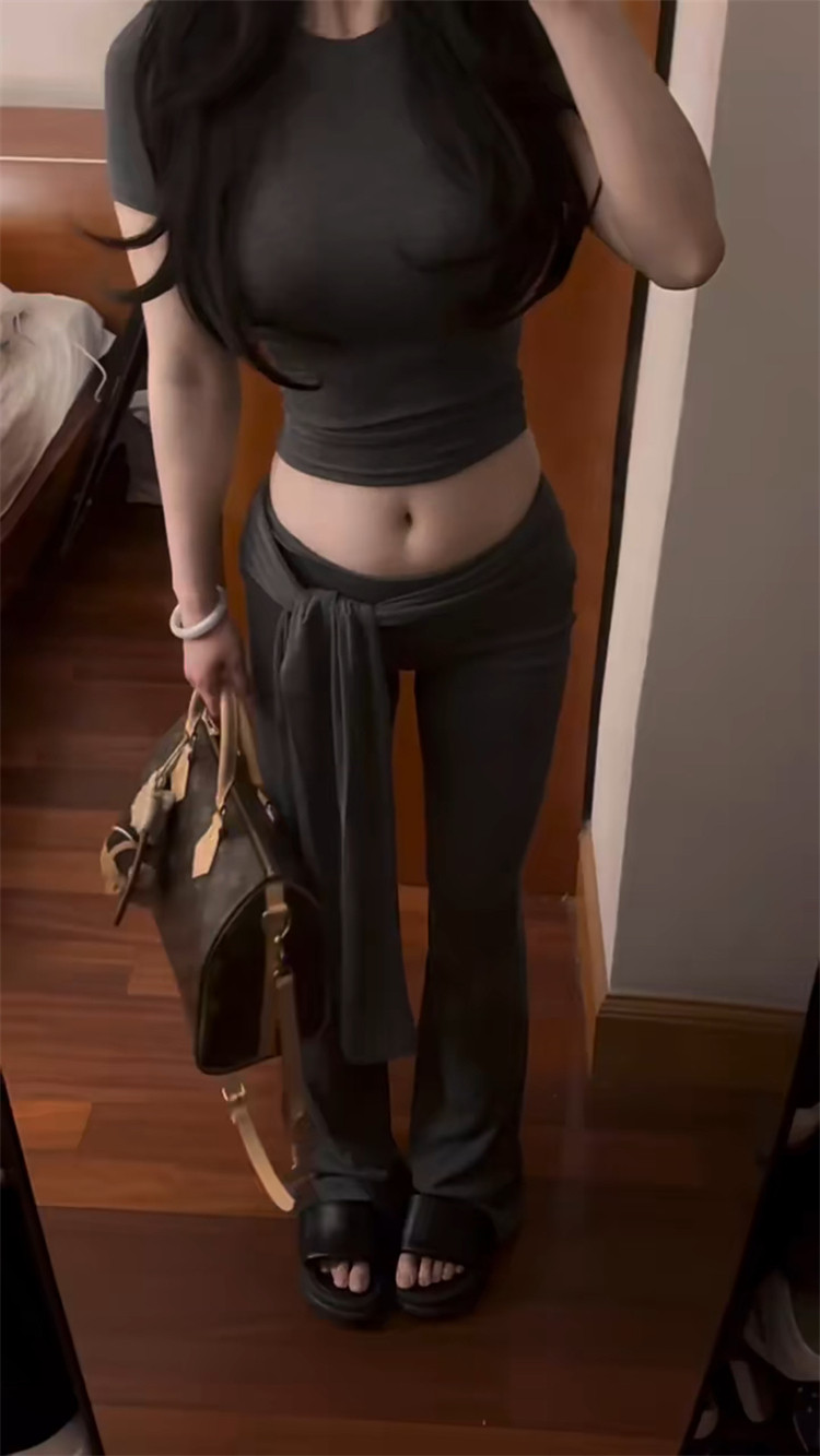 Main Color Gray Top [Spring/Autumn/T-Shirt/Women'S/Chic/Slimming/Short Sleeve/Base Layer/Relaxed Fit/New Arrival],Gray Pants [Versatile/Straight/Hong Kong Style/Spring/New Style/Draped/Casual/Slimming/Wide-Leg Pants/Spring and Autumn]