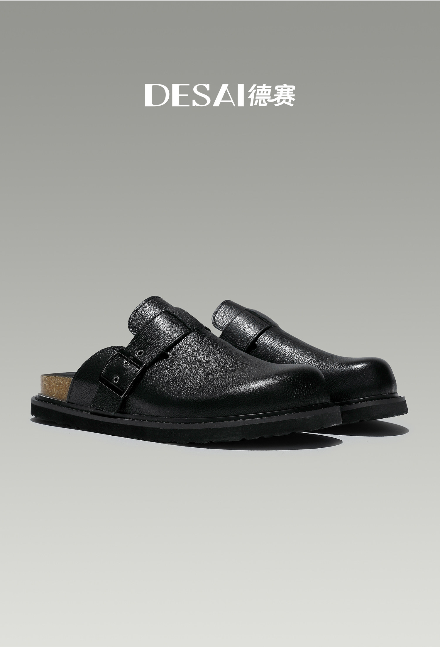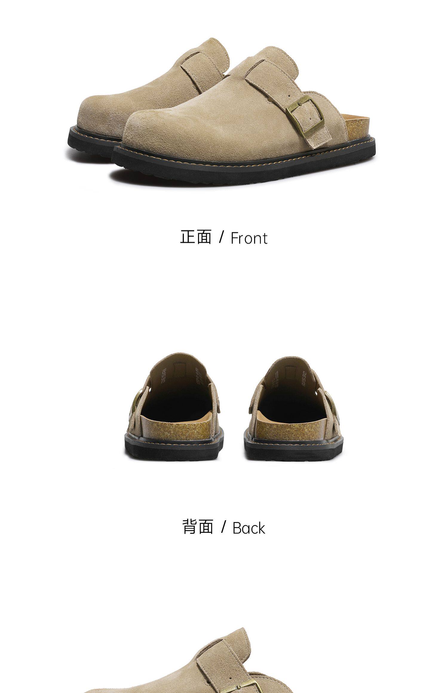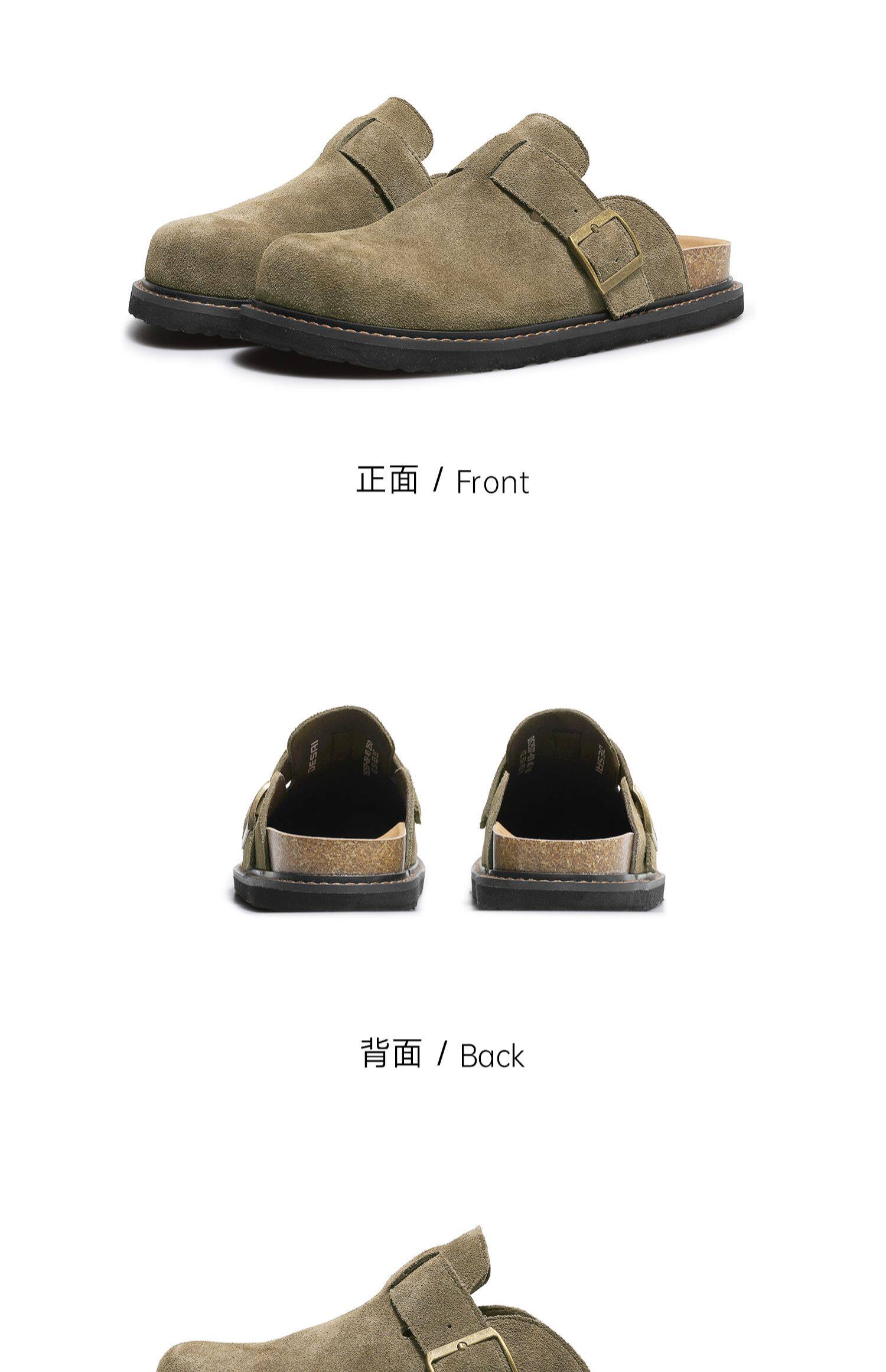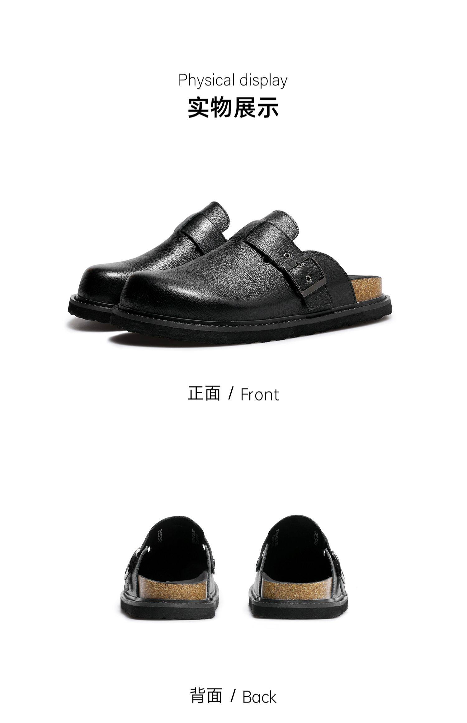 Desai Men's Shoes, Summer Retro Birkenstock Shoes, Breathable and Versatile Flat Toe-Cap Slippers, Men's Genuine Leather Slip-On Shoes