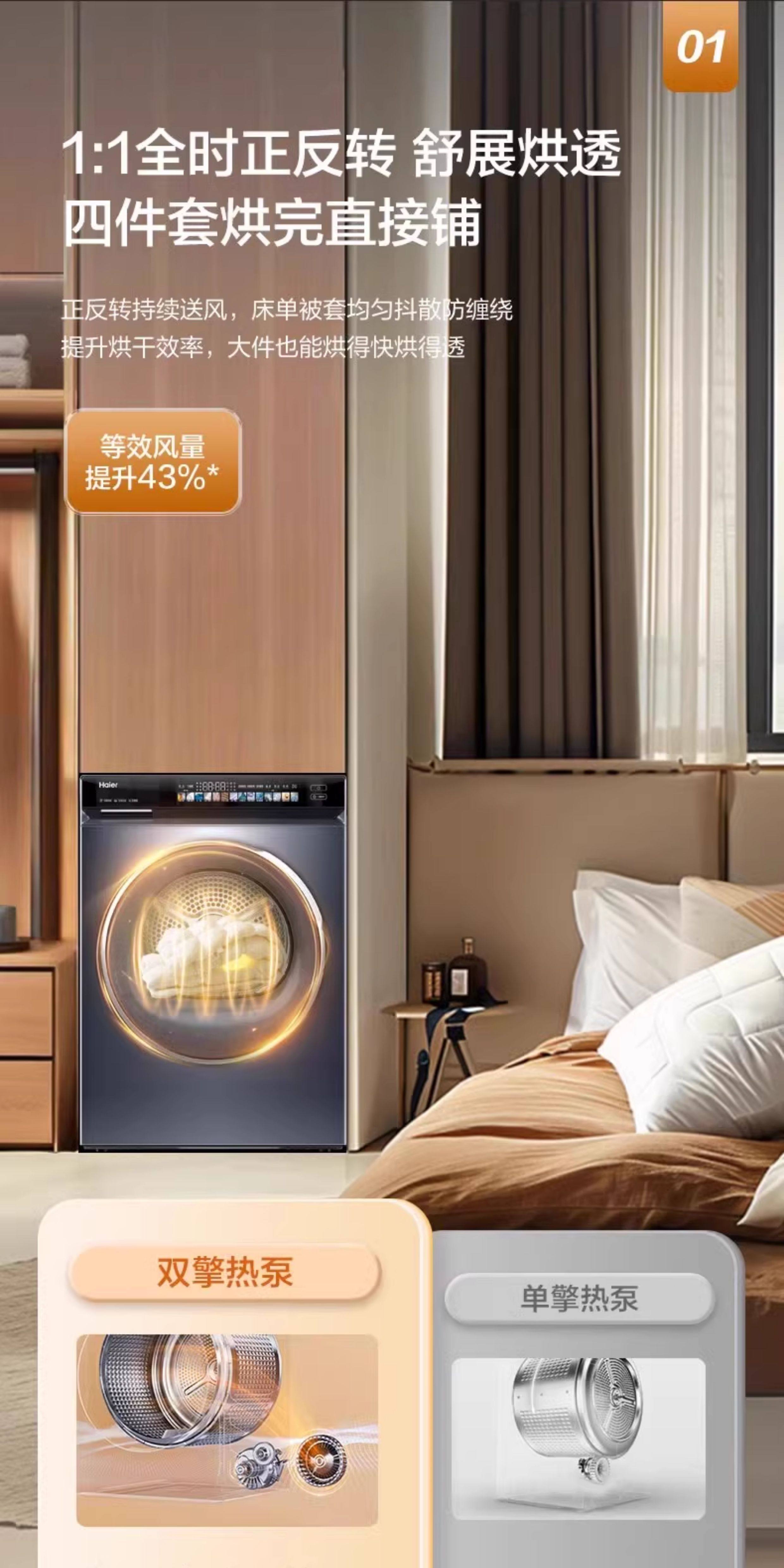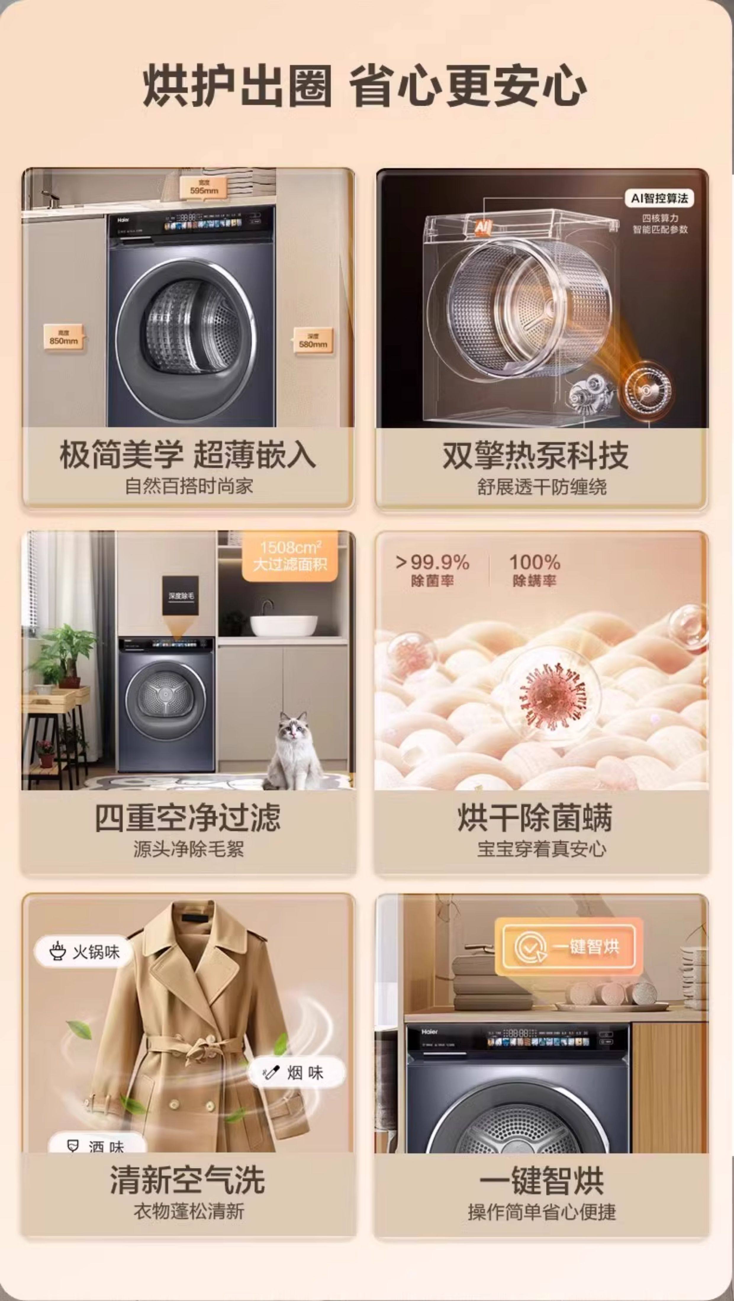 Haier Dual-Engine Heat Pump Ultra-Thin Embedded Household Fully Automatic Clothes Dryer with Large Capacity and Filtration Drying 176Pro