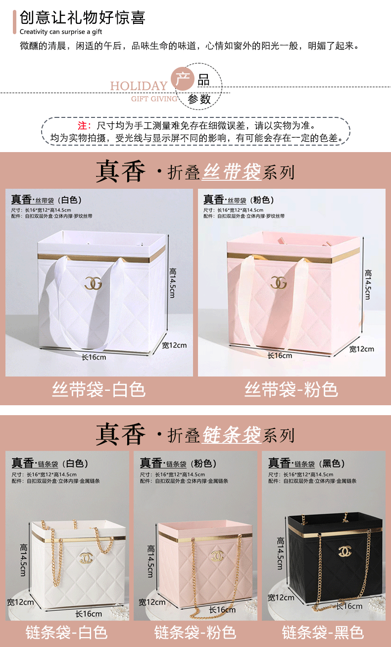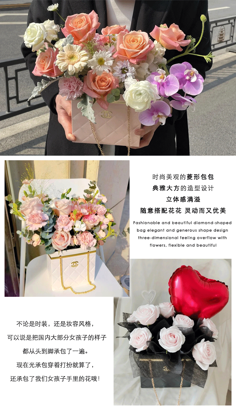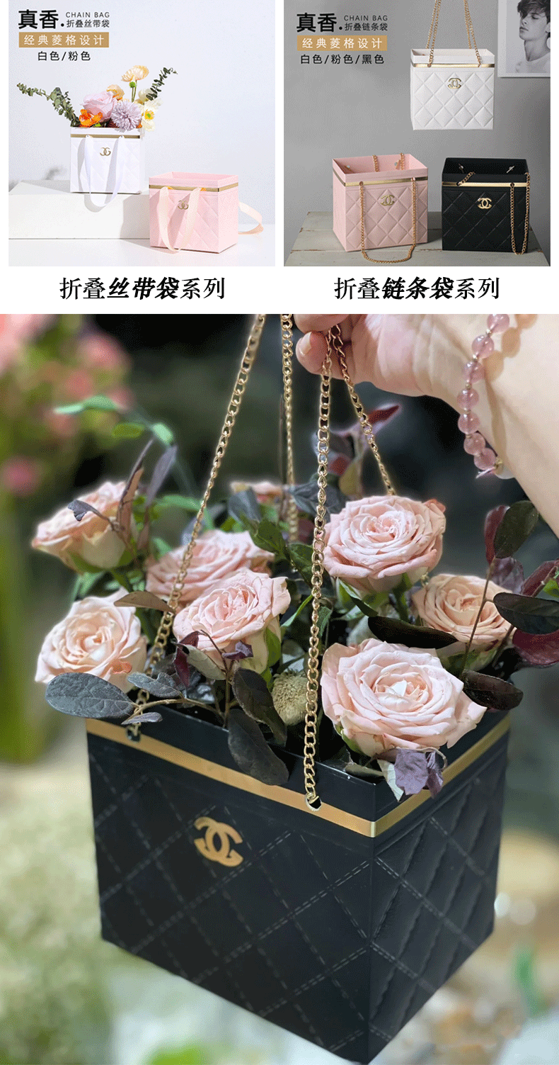 Diamond-Patterned Foldable Tote Bag, Flower Gift Bag, 520 Qixi Flower Bouquet, Flower Box, Creative Packaging Box, Chain Packaging Bag