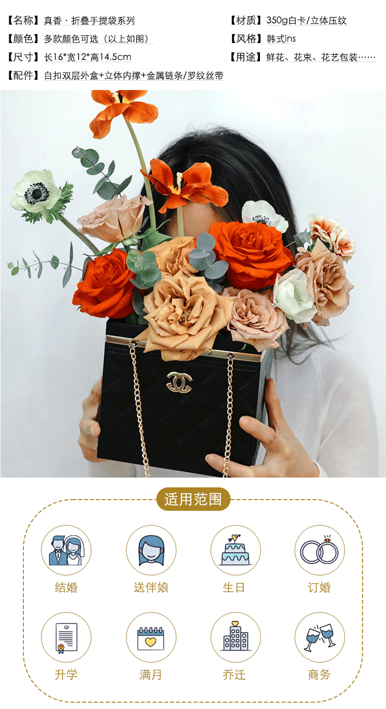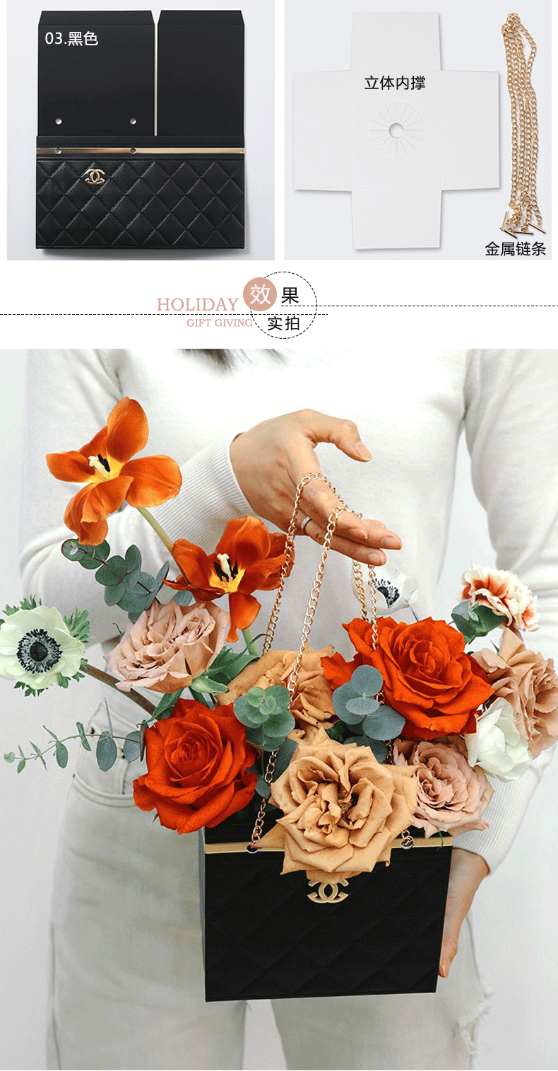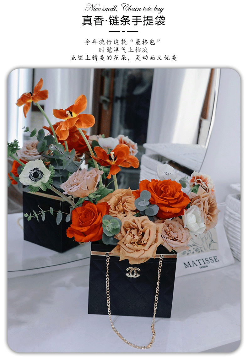 Diamond-Patterned Foldable Tote Bag, Flower Gift Bag, 520 Qixi Flower Bouquet, Flower Box, Creative Packaging Box, Chain Packaging Bag
