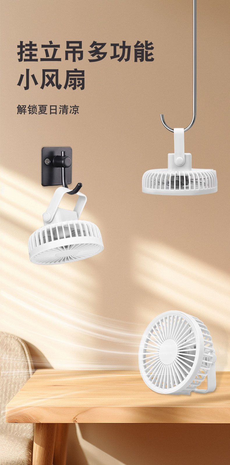 USB Small Fan for Student Dormitory Bed, Rechargeable Silent Electric Fan, Small Mosquito Net-Style Fan, Strong Wind, Ultra-Powerful, Suitable for Lower Bunk, Tent, Camping, Hanging, Kitchen, Car, Wall-Mounted