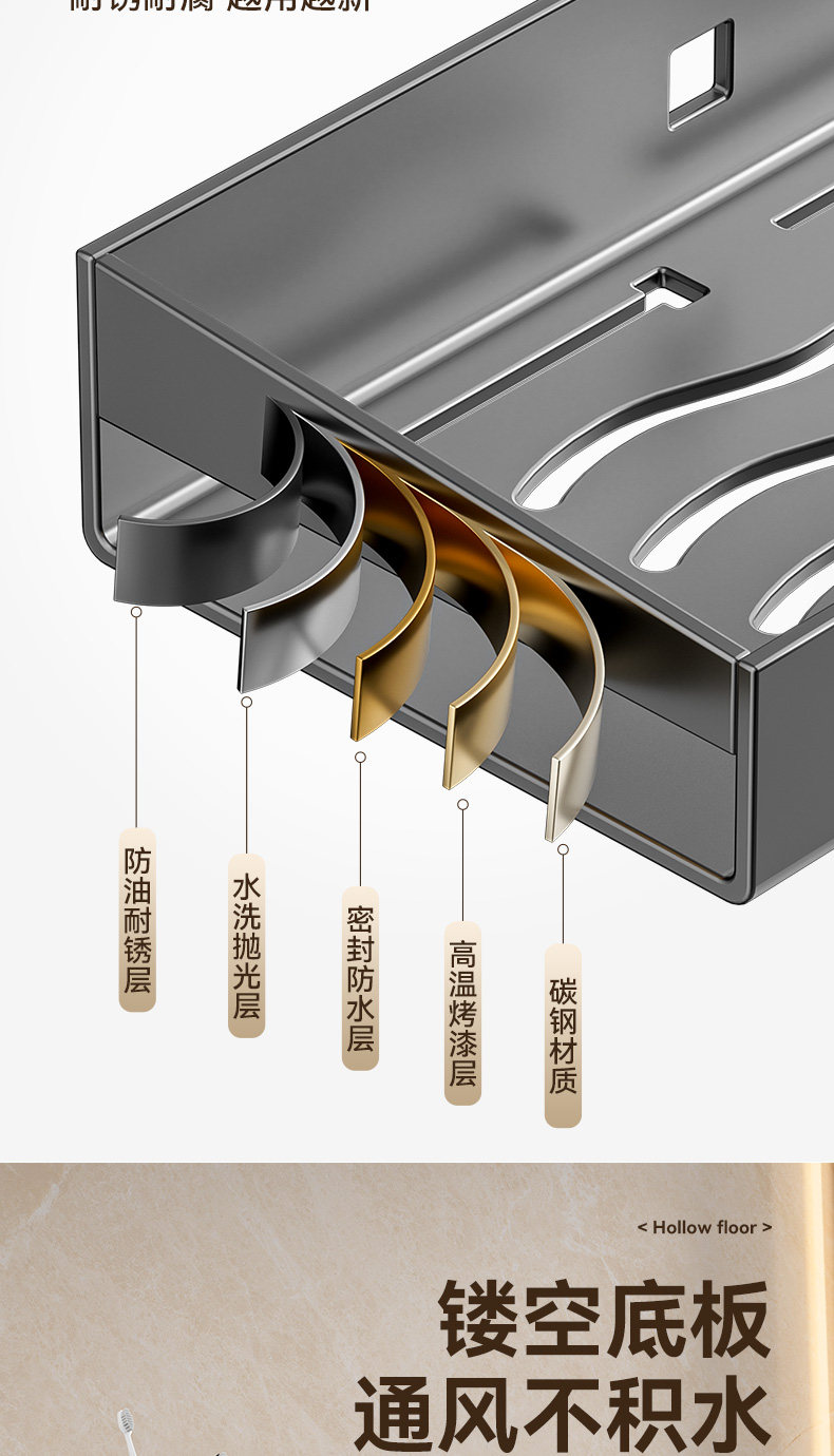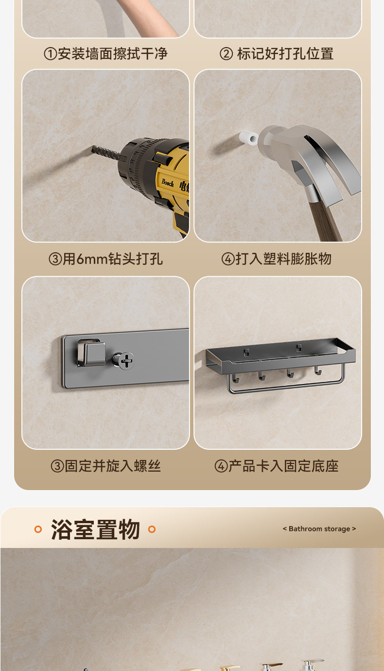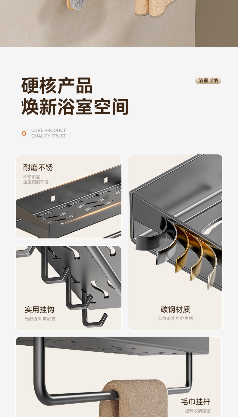 Bathroom storage rack without punching wall-mounted toilet washroom and bathroom sink supplies wall storage rack