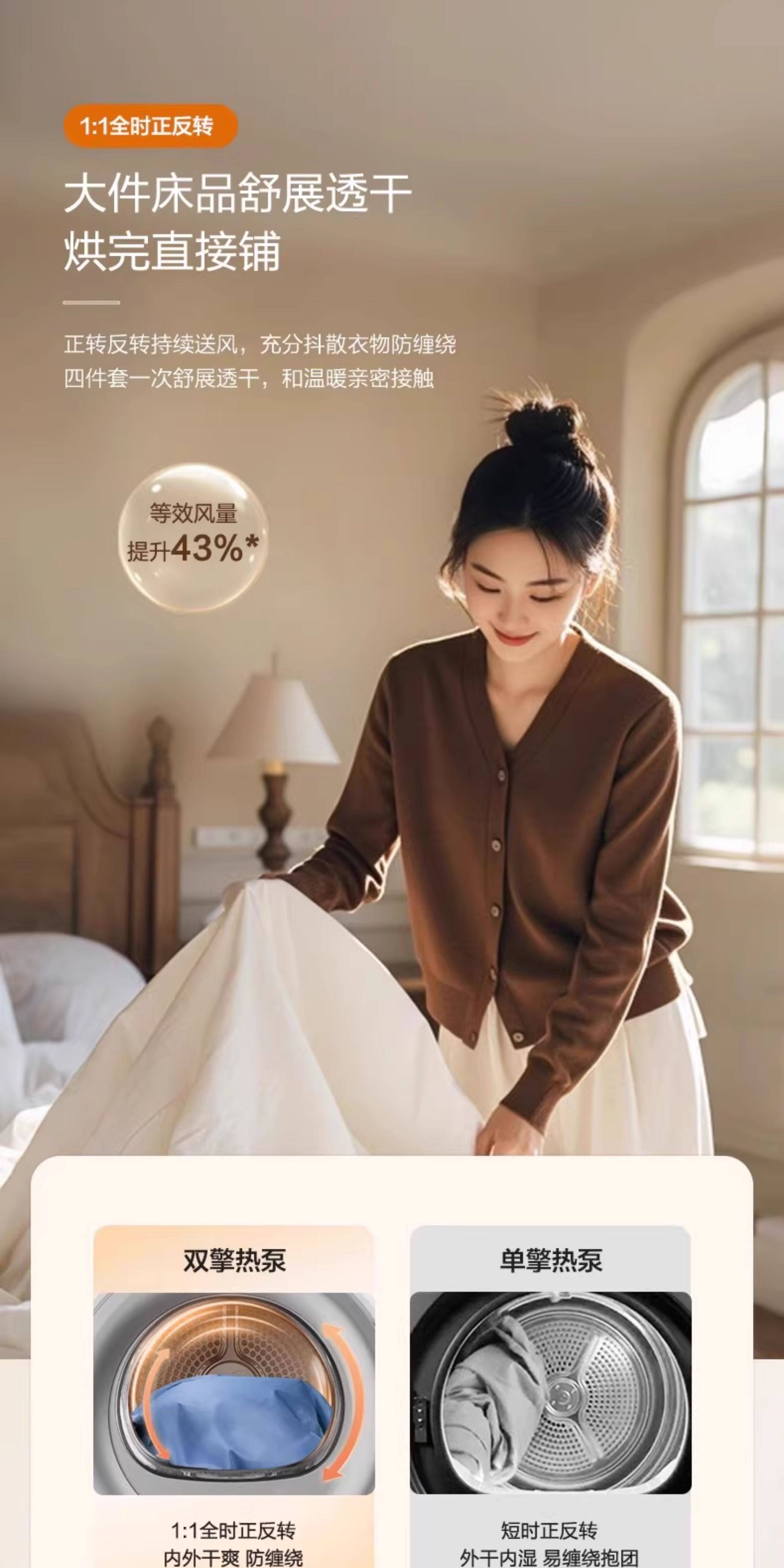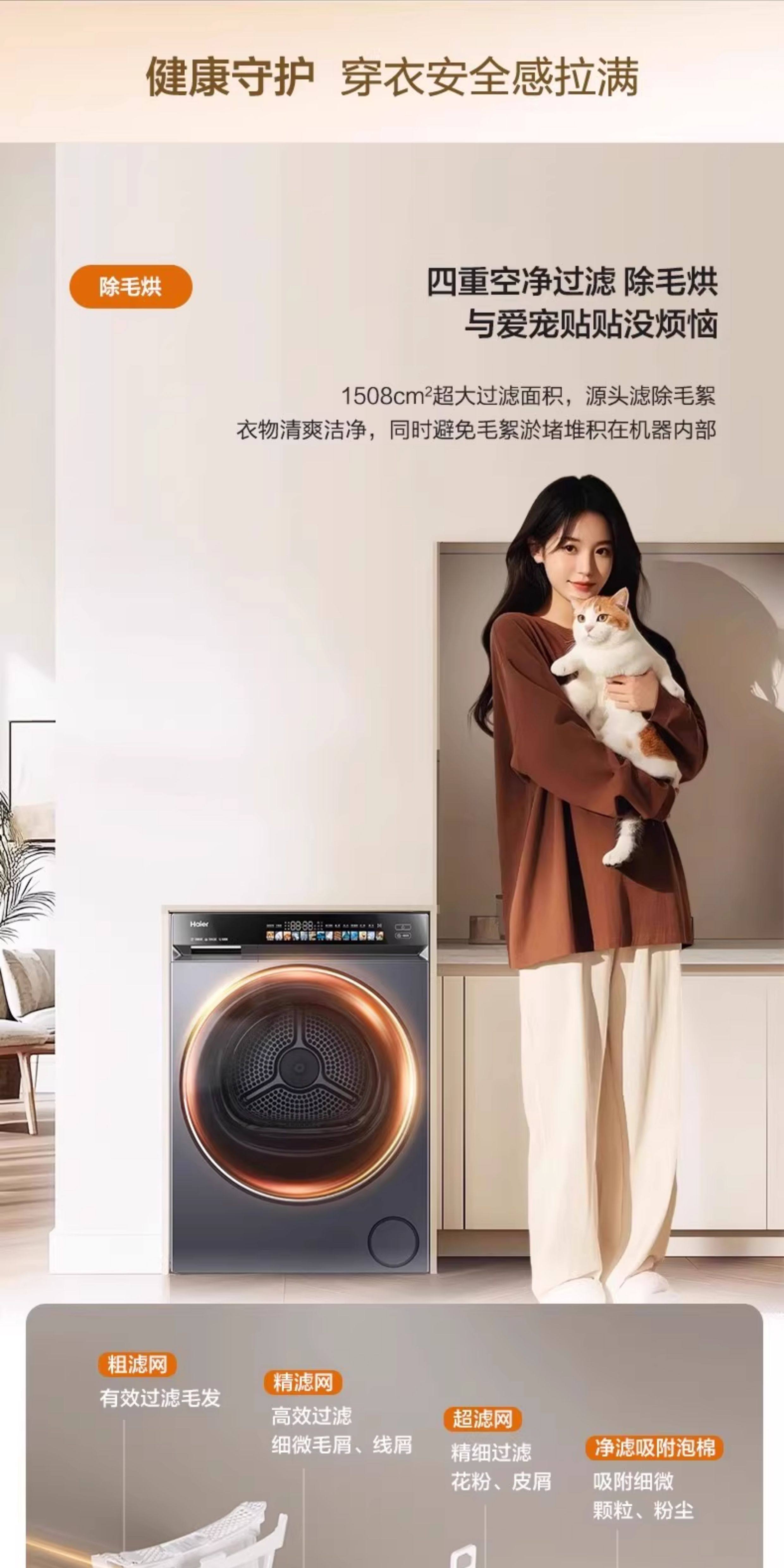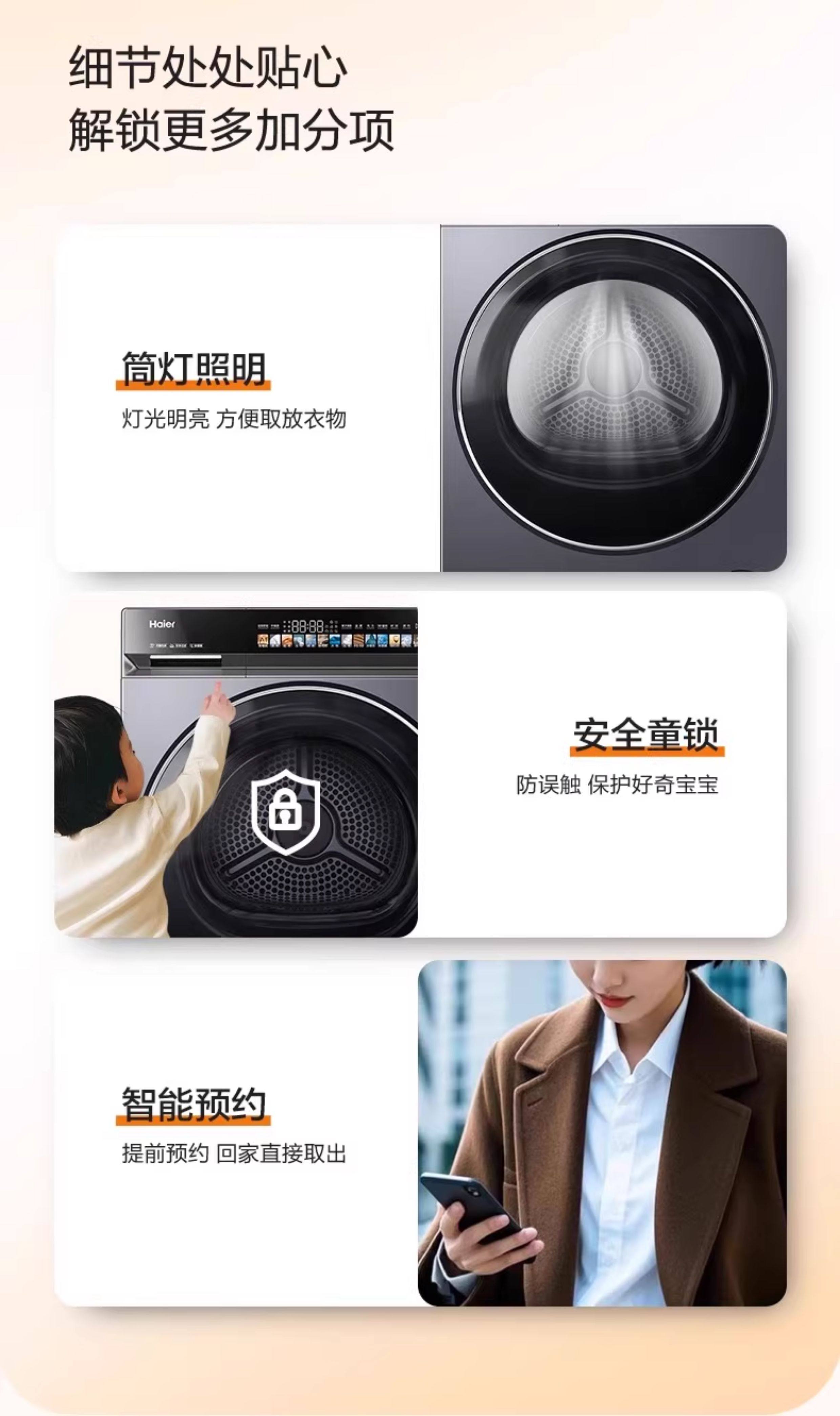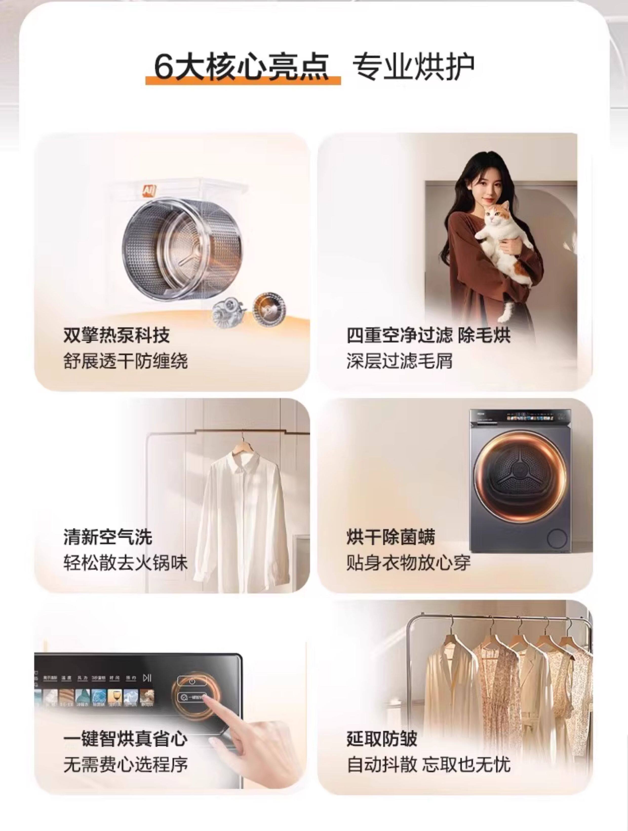 [Chasing Light]Haier Household Large Capacity Ultra-Thin Built-In Silent Dual-Engine Heat Pump Dryer Fully Automatic 376XS