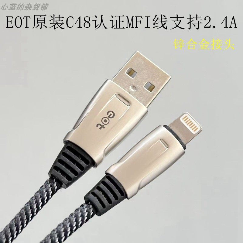 Eot Original C48 Certified Mfi Charging Data Cable with Zinc Alloy Head 1.88m Suitable for Iphone8 X Xr 11 12 13 14 Mobile Phones and Tablets Supports Apple 2.4A Protocol 12W