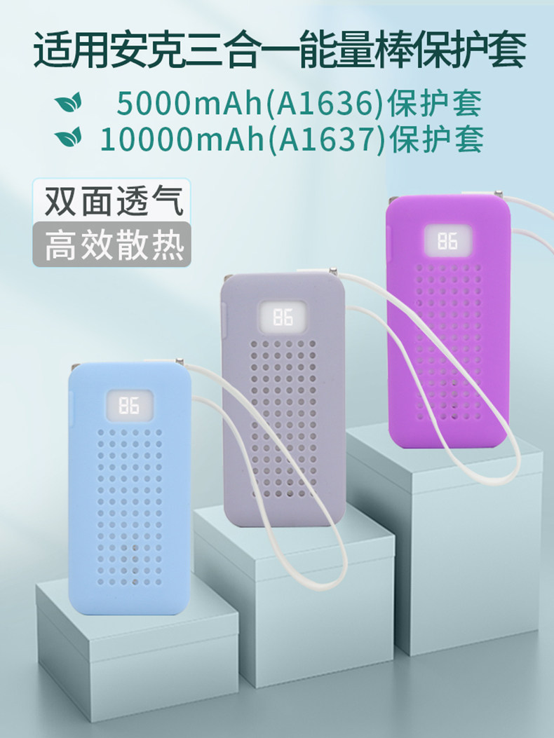 Suitable for Anker Three-In-One Power Bank Protective Case A1637 Energy Bar Silicone Case A1636 Mobile Power Storage Box Anker Built-In Cable Charger 30W Plug Shockproof Storage Bag