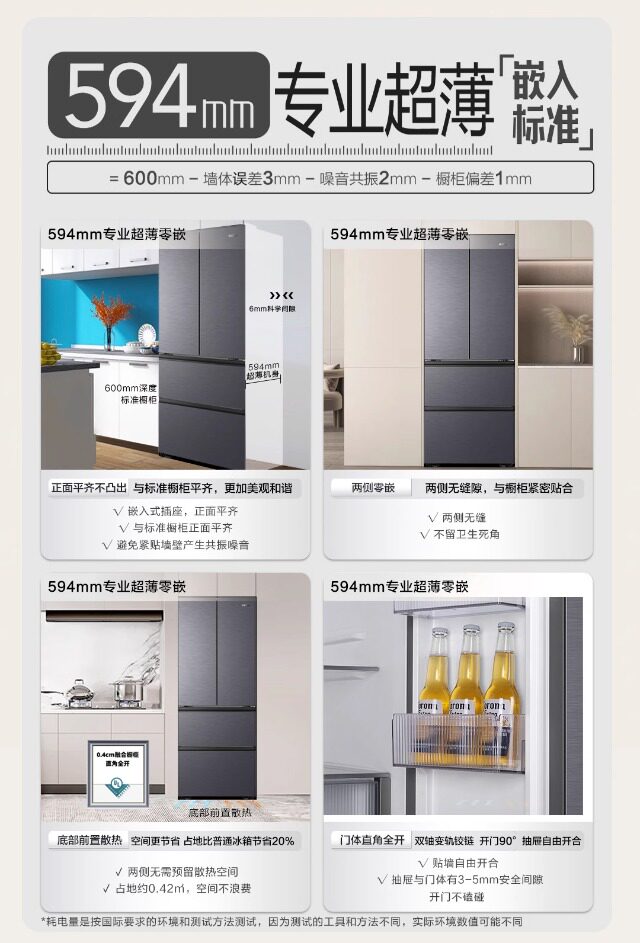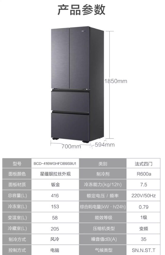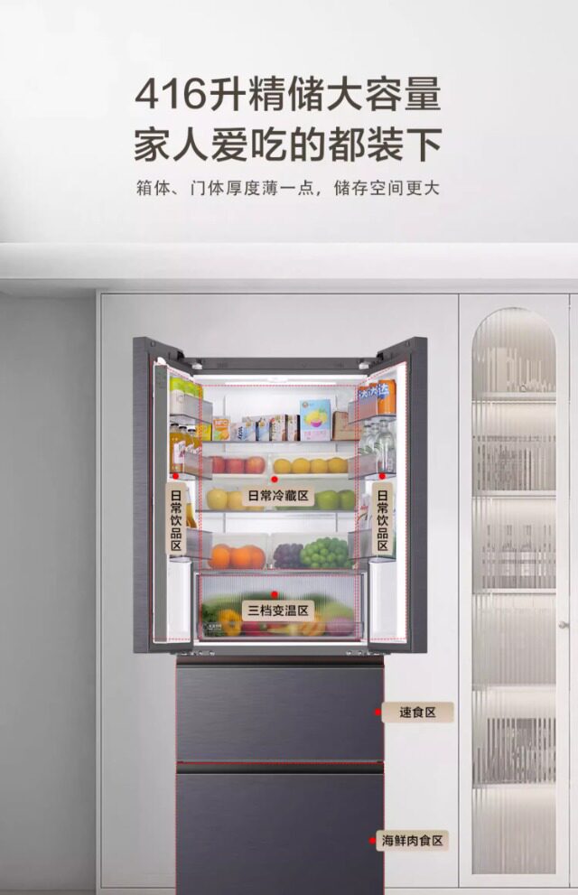 Haier 416L Embedded Ultra-Thin 594mm French Multi-Door First-Class Air-Cooled Frost-Free Household Refrigerator Large Capacity