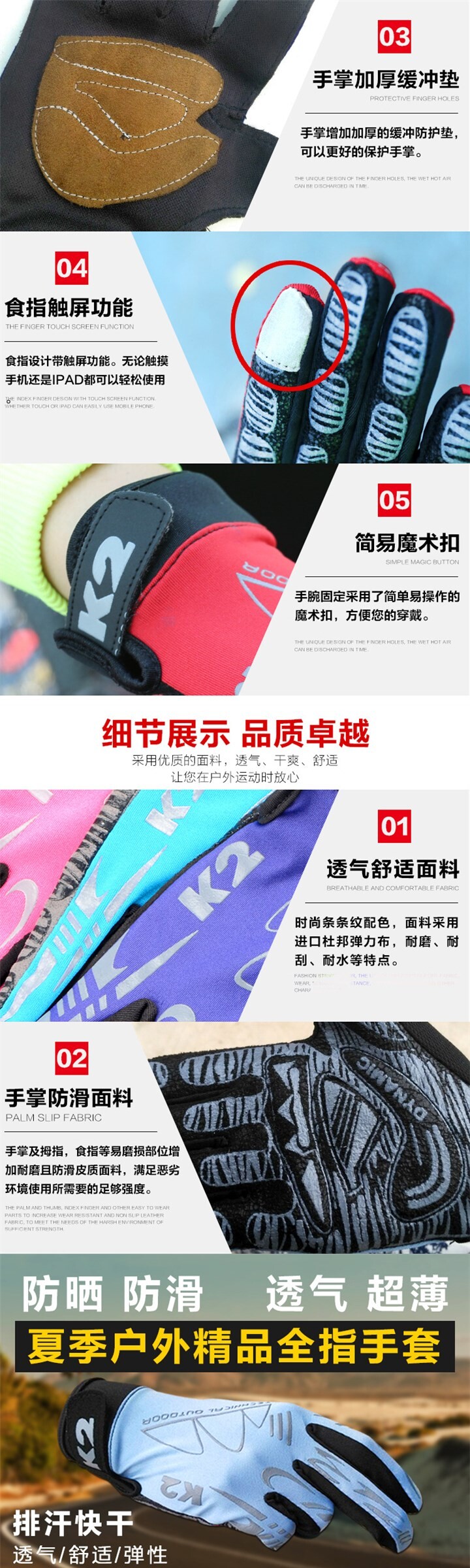 Outdoor Cycling Gloves Full-Finger Thin Style Men's Mountaineering Bicycle Women's Sports Sun Protection Breathable Non-Slip Touch Screen