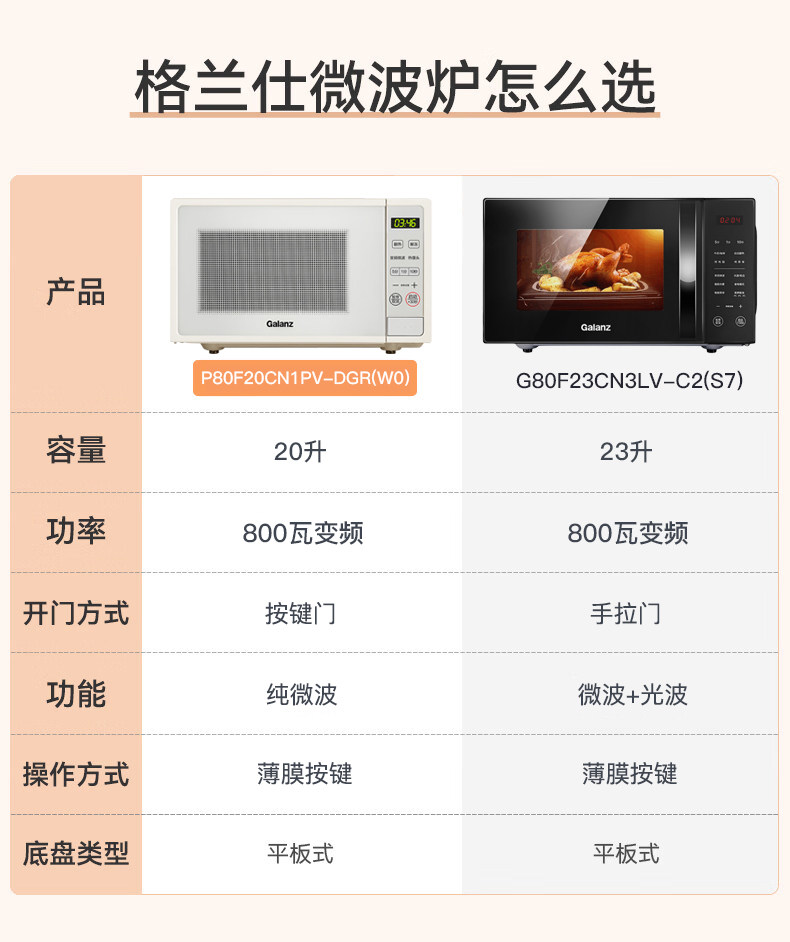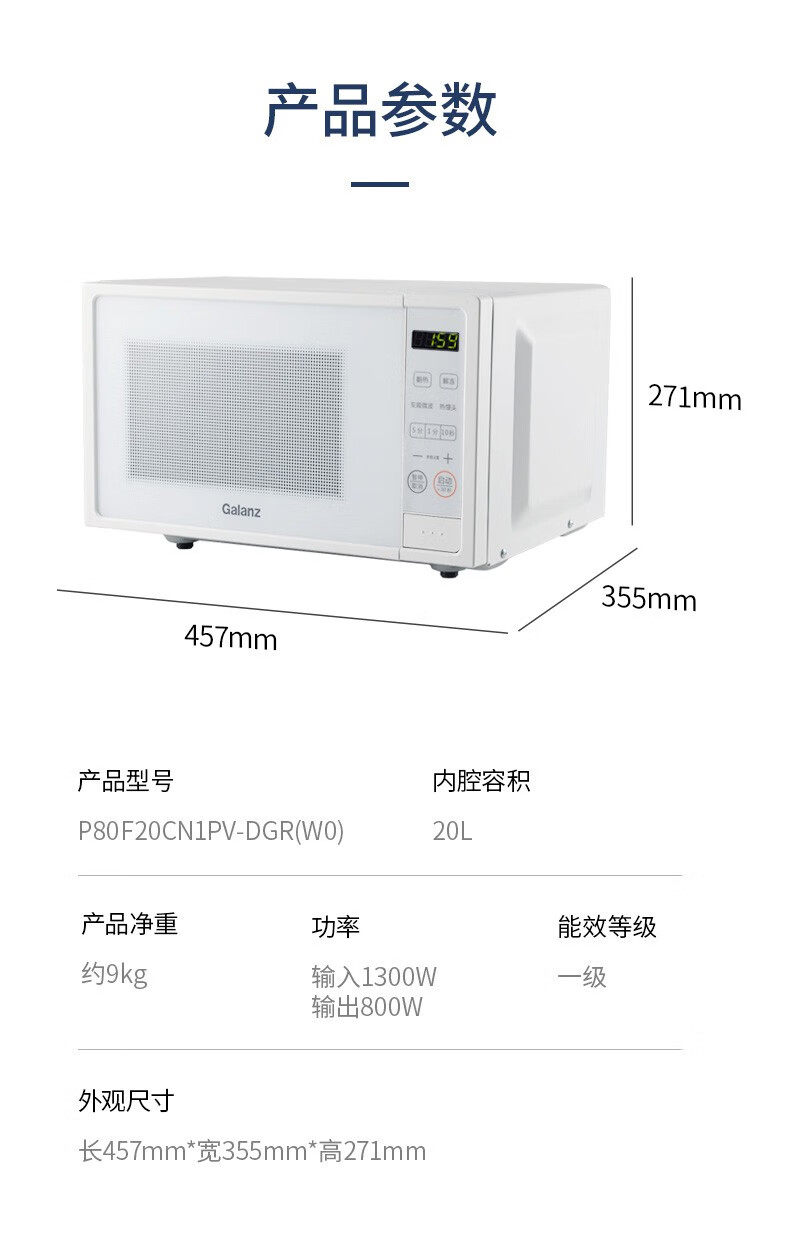 Galanz Household Microwave Oven First-Class Energy Efficiency Inverter 800W Fast Heating 20L Small Flat-Panel Type Official Genuine Product Dgr