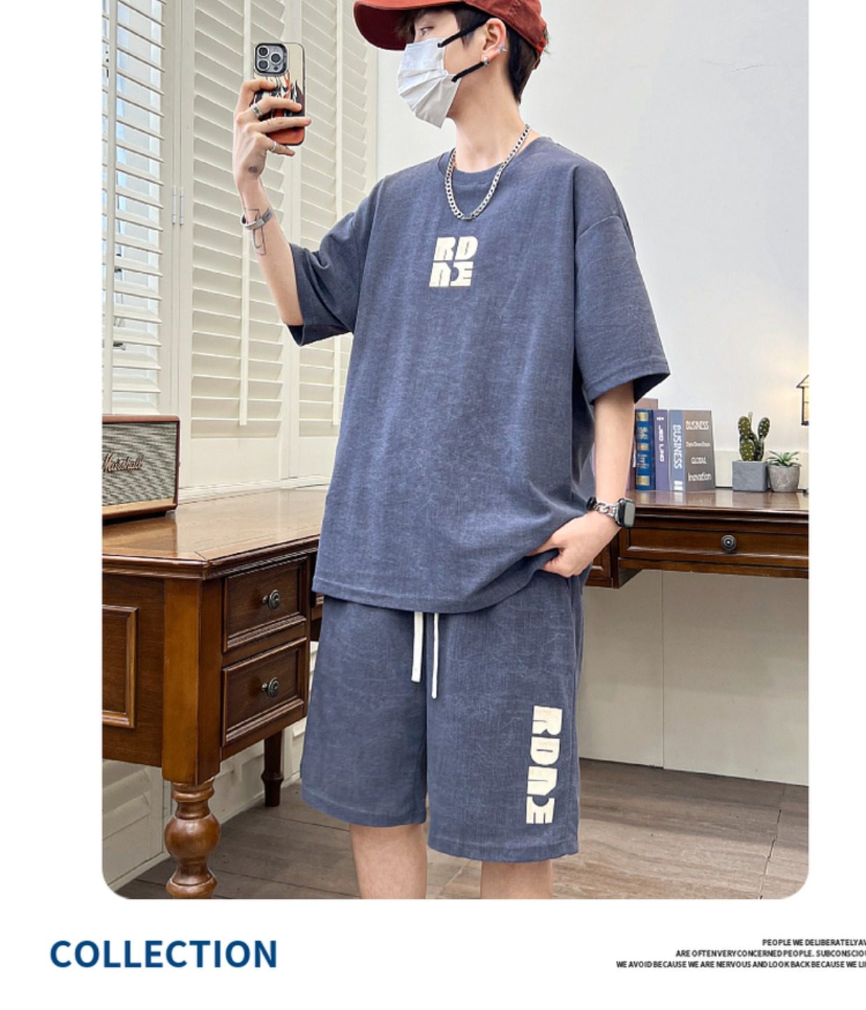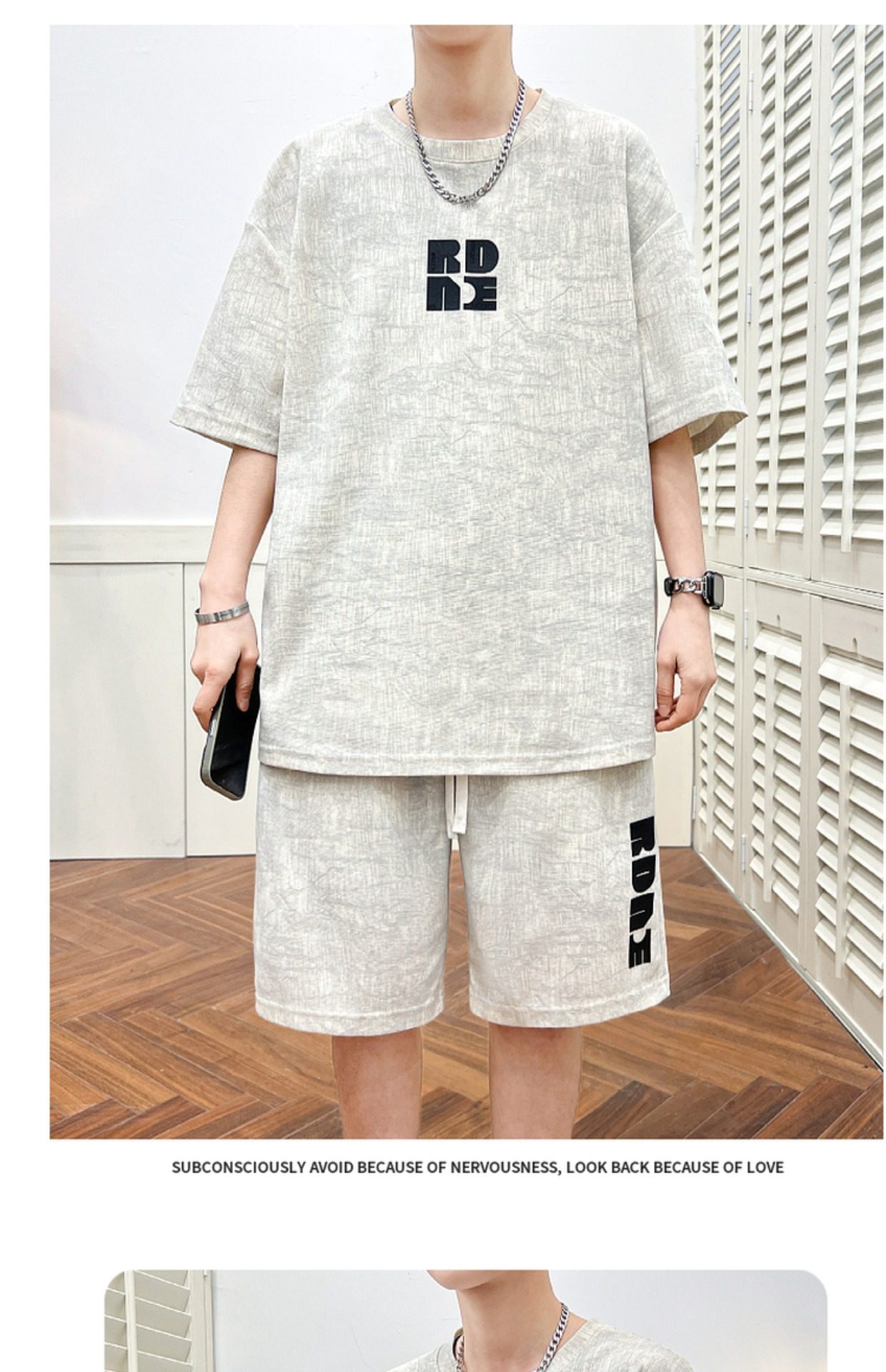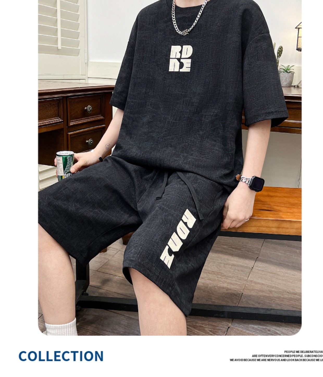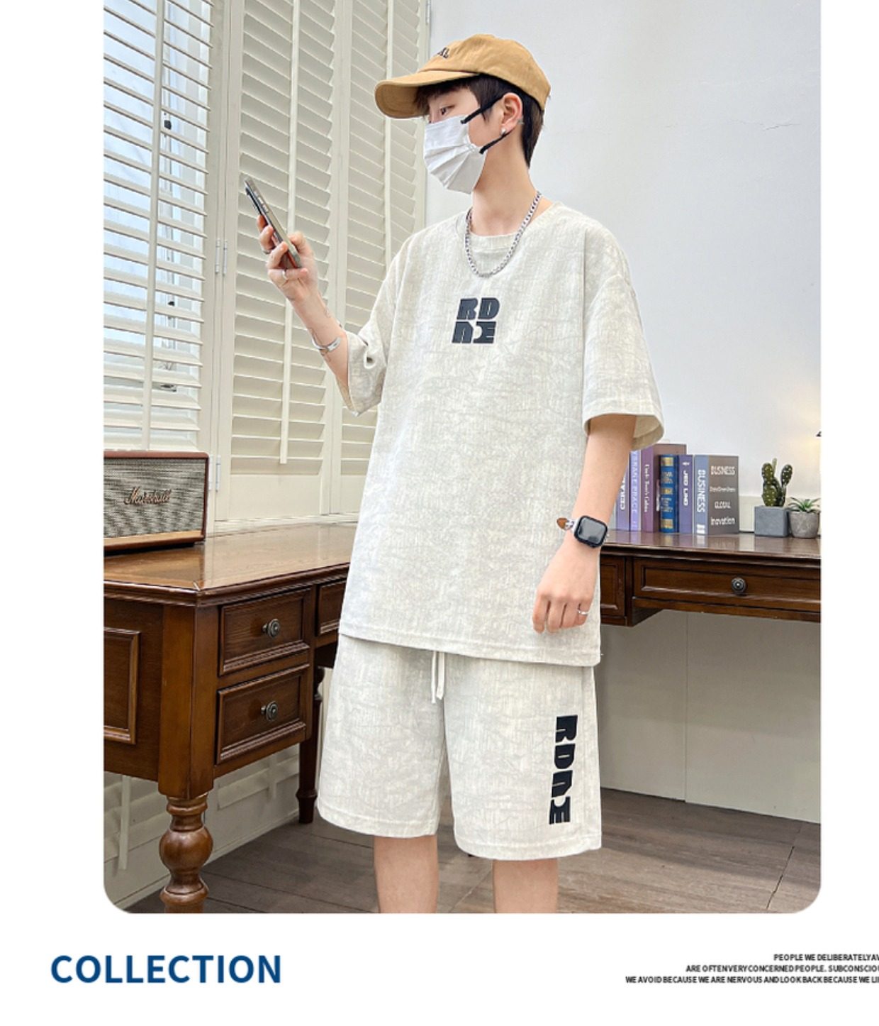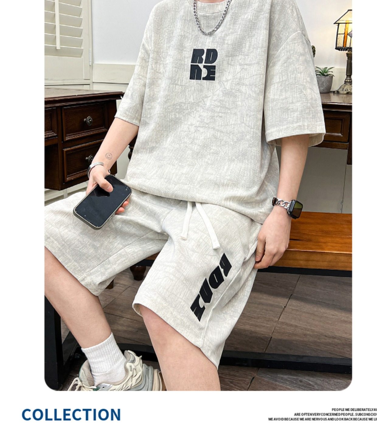 Summer casual suit for men 2025 new youth loose sports shorts short-sleeved handsome two-piece suit