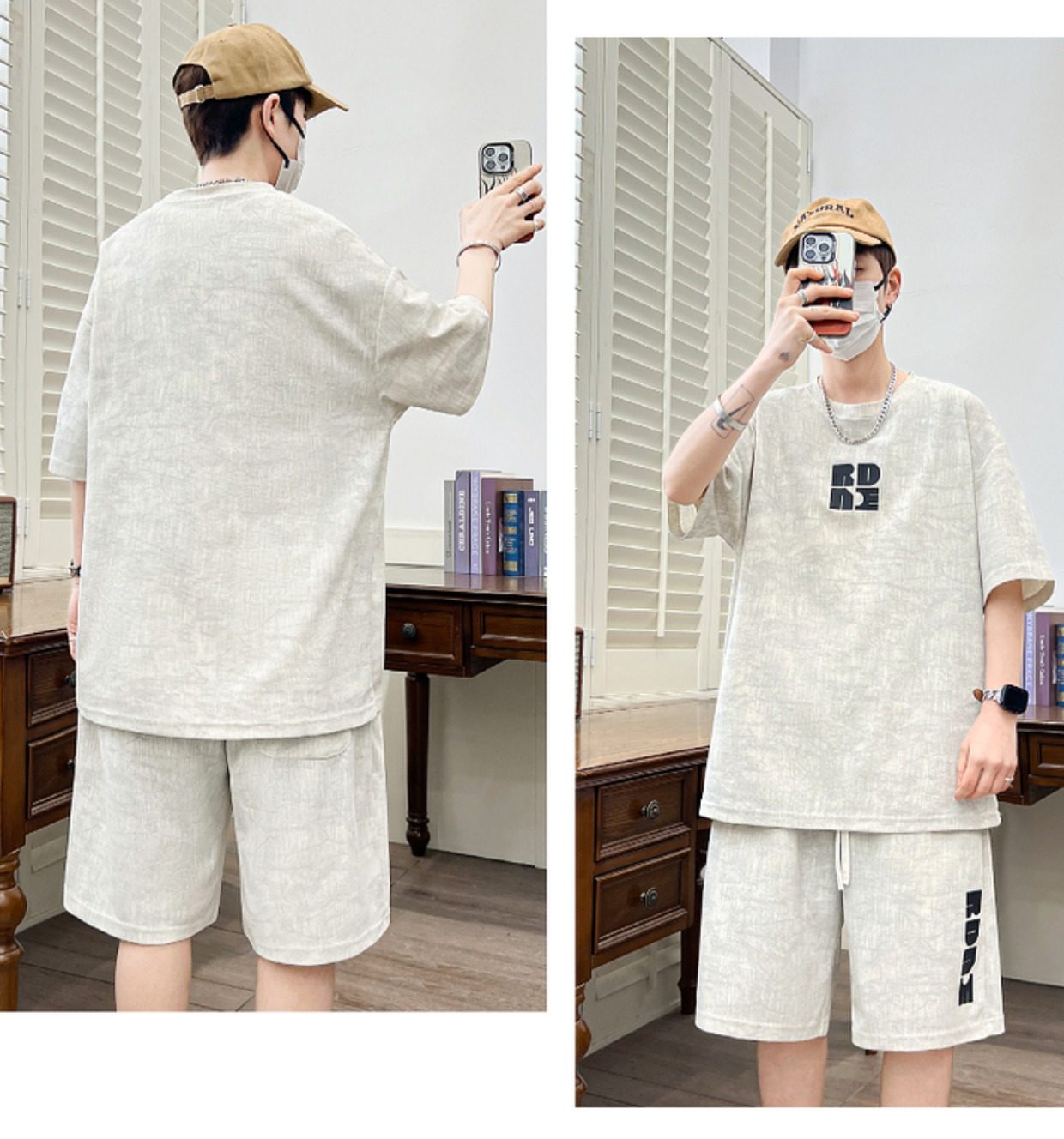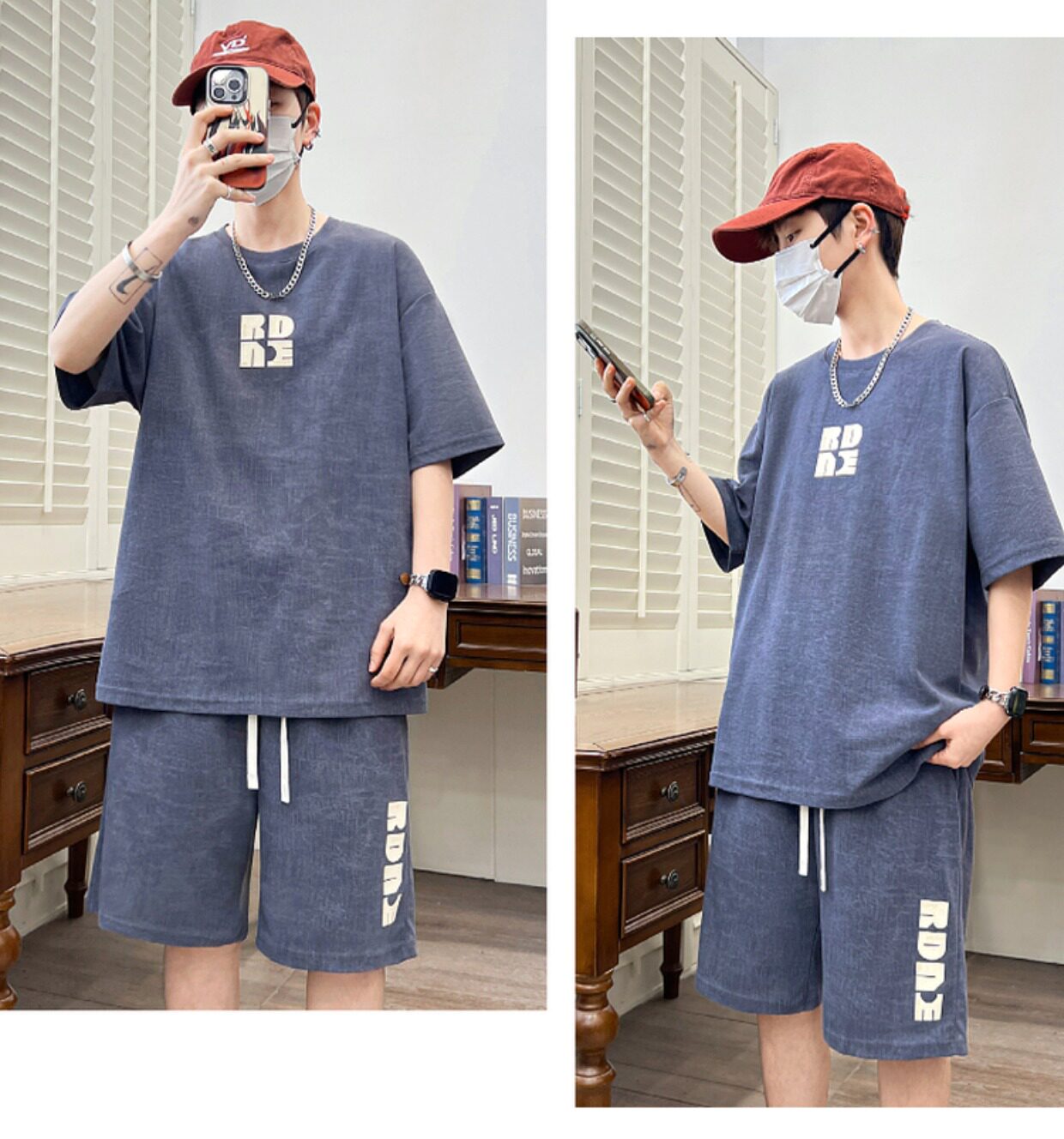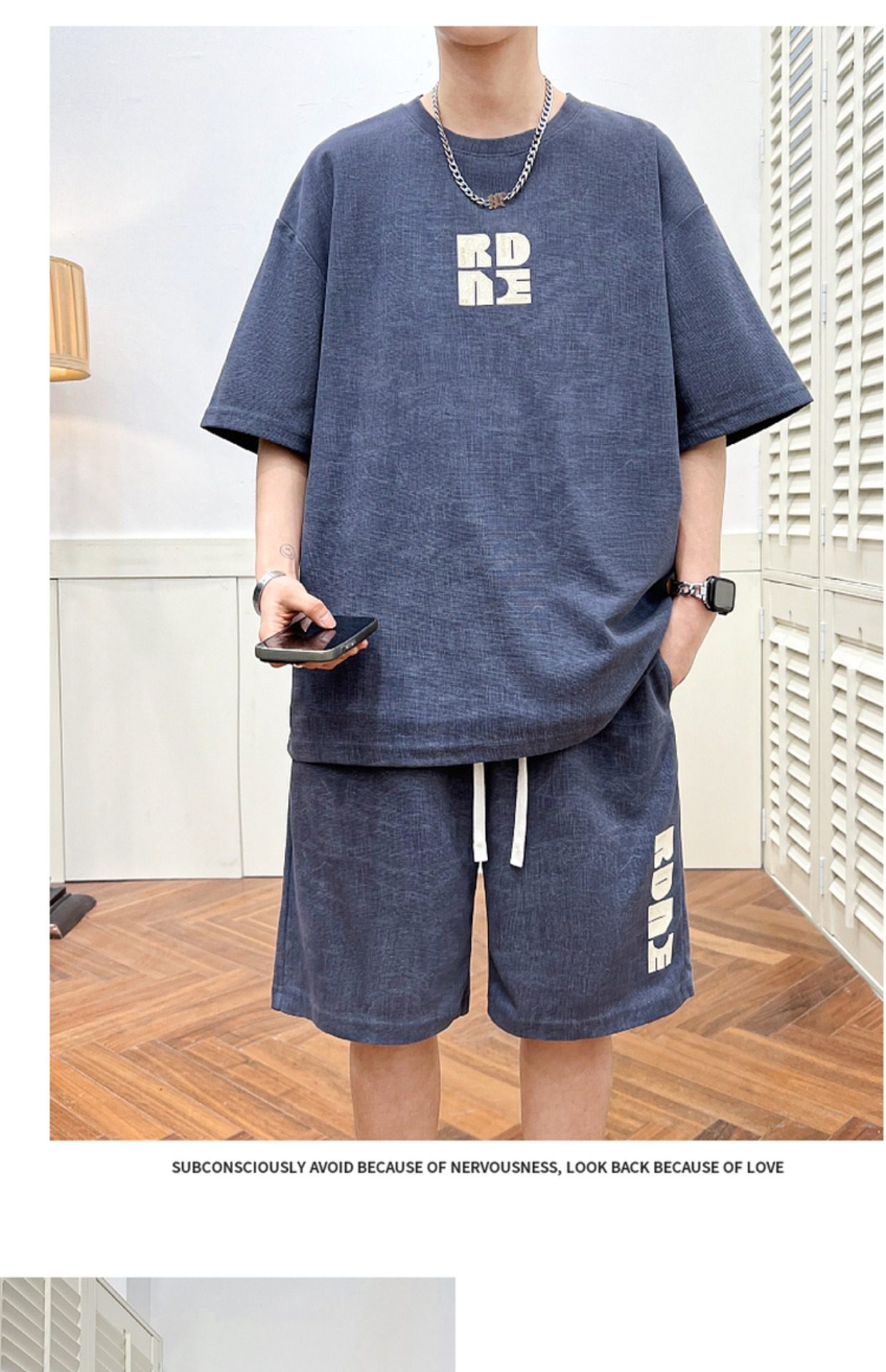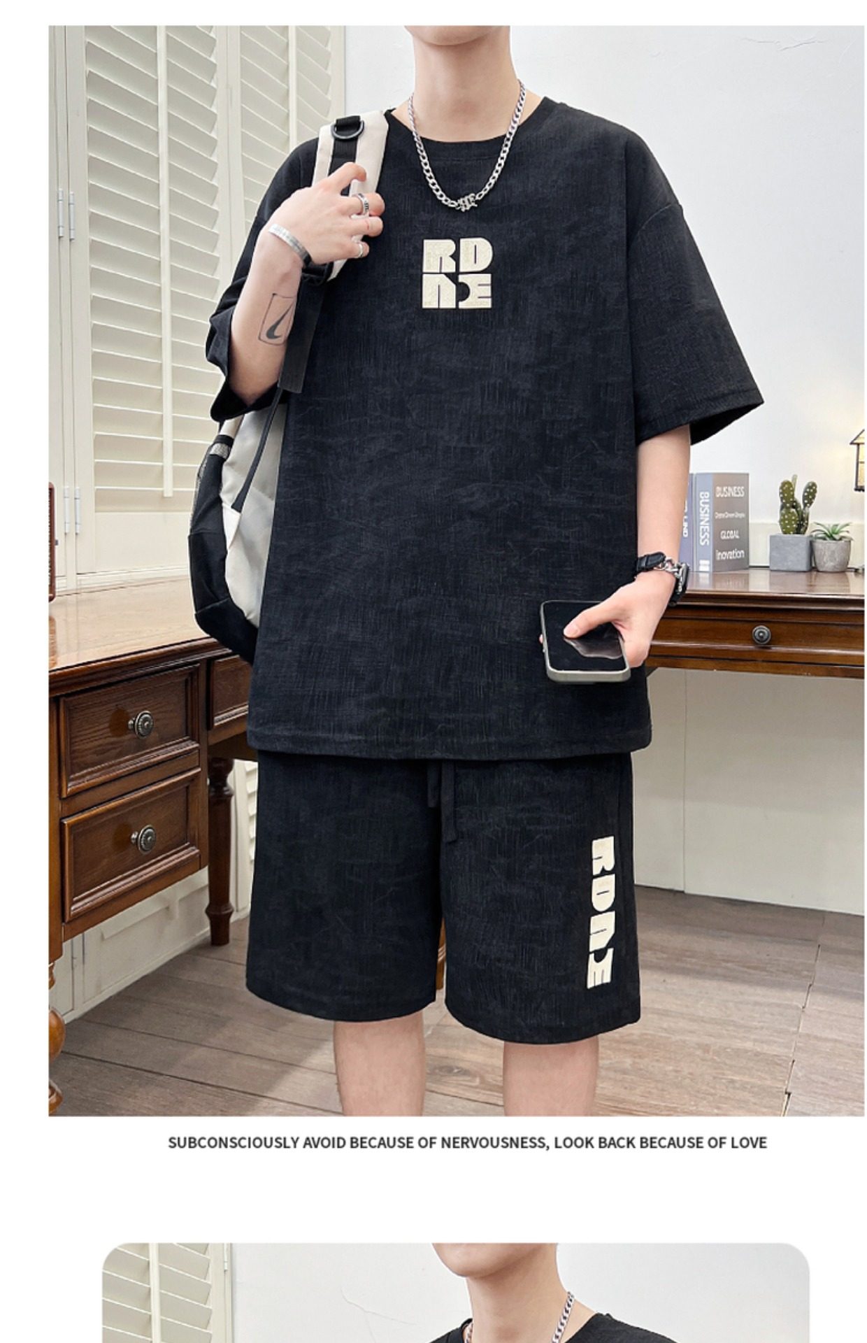 Summer casual suit for men 2025 new youth loose sports shorts short-sleeved handsome two-piece suit