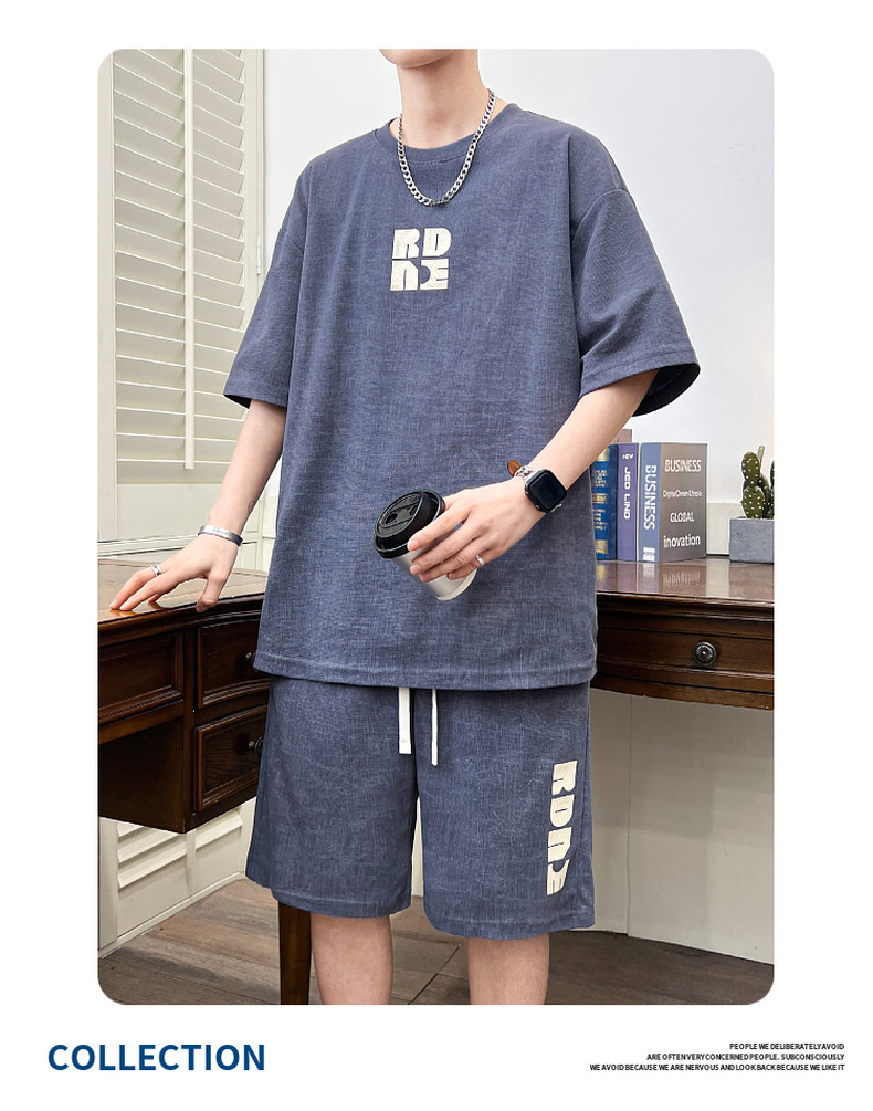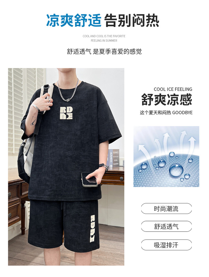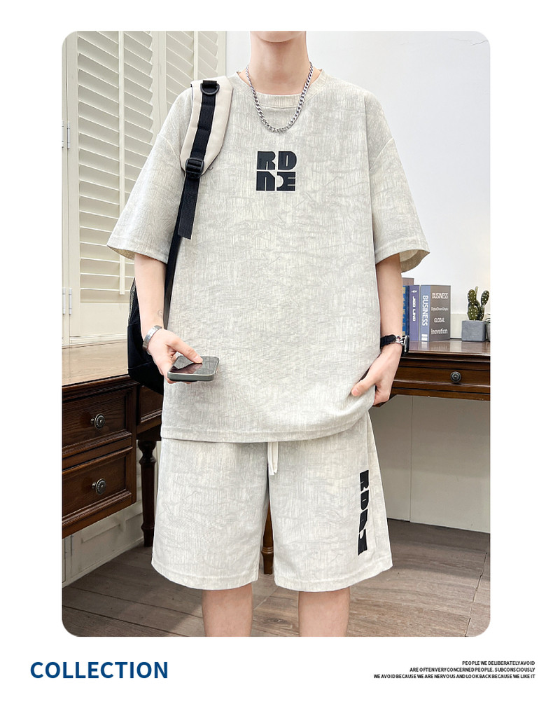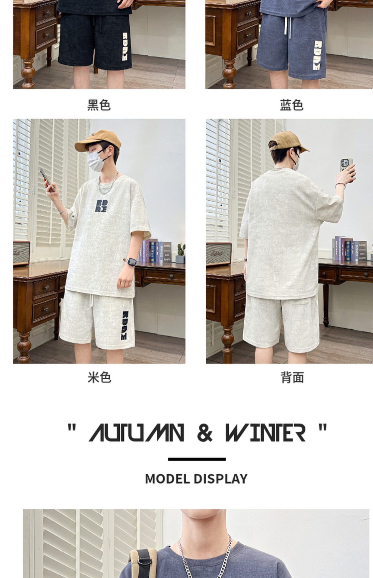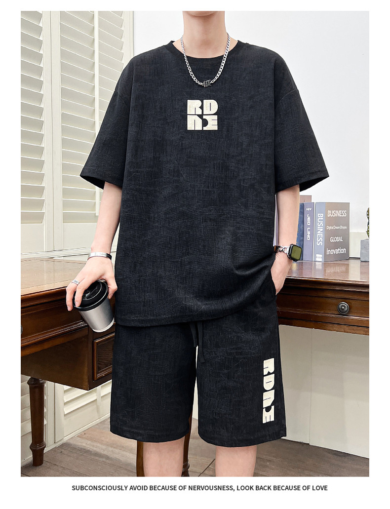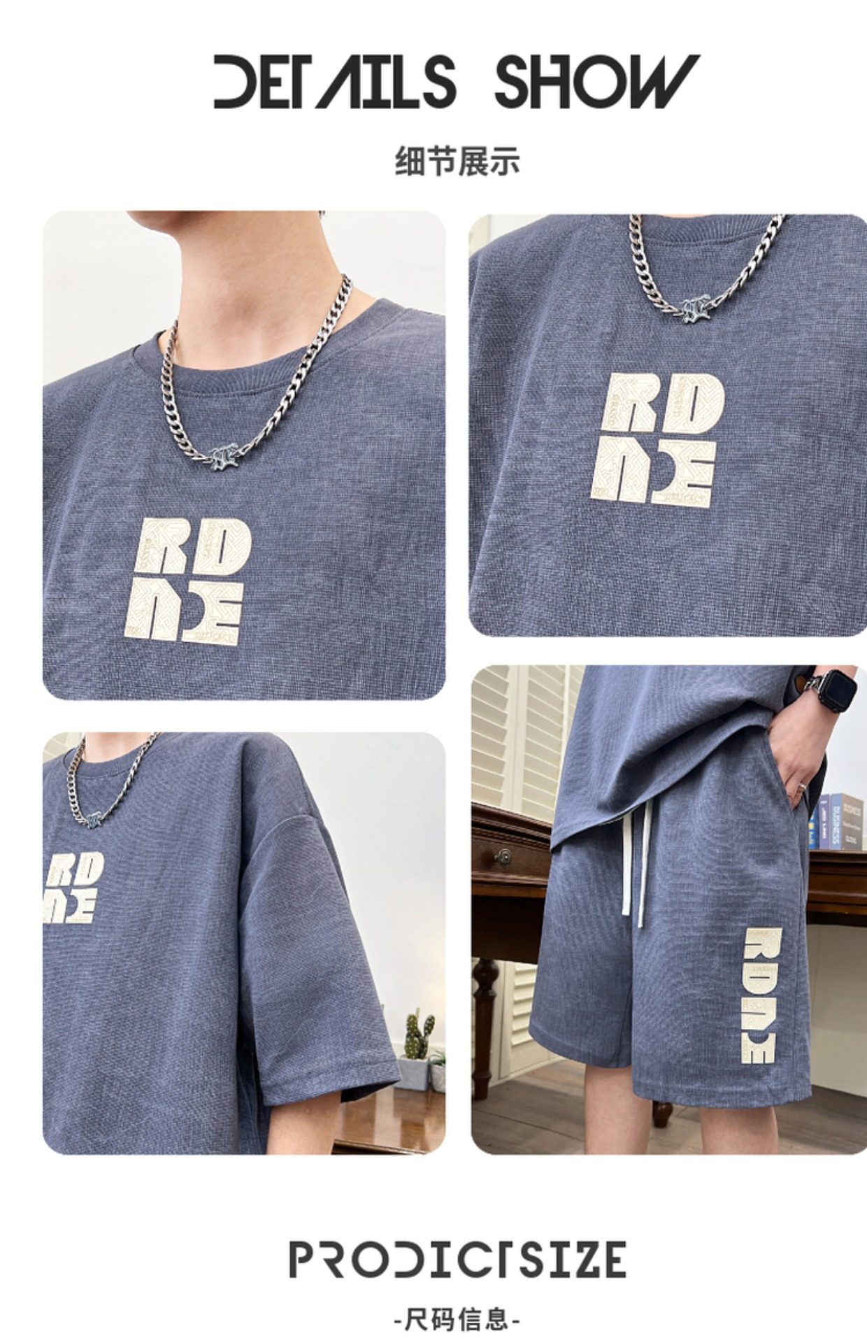 Summer casual suit for men 2025 new youth loose sports shorts short-sleeved handsome two-piece suit