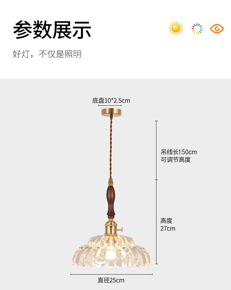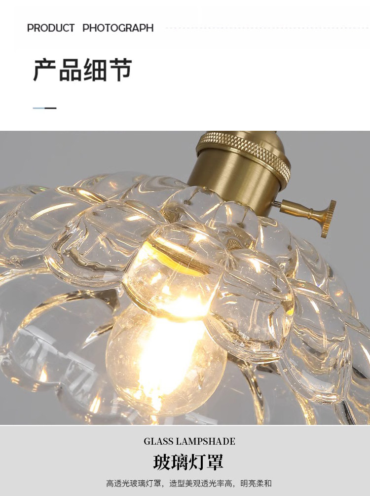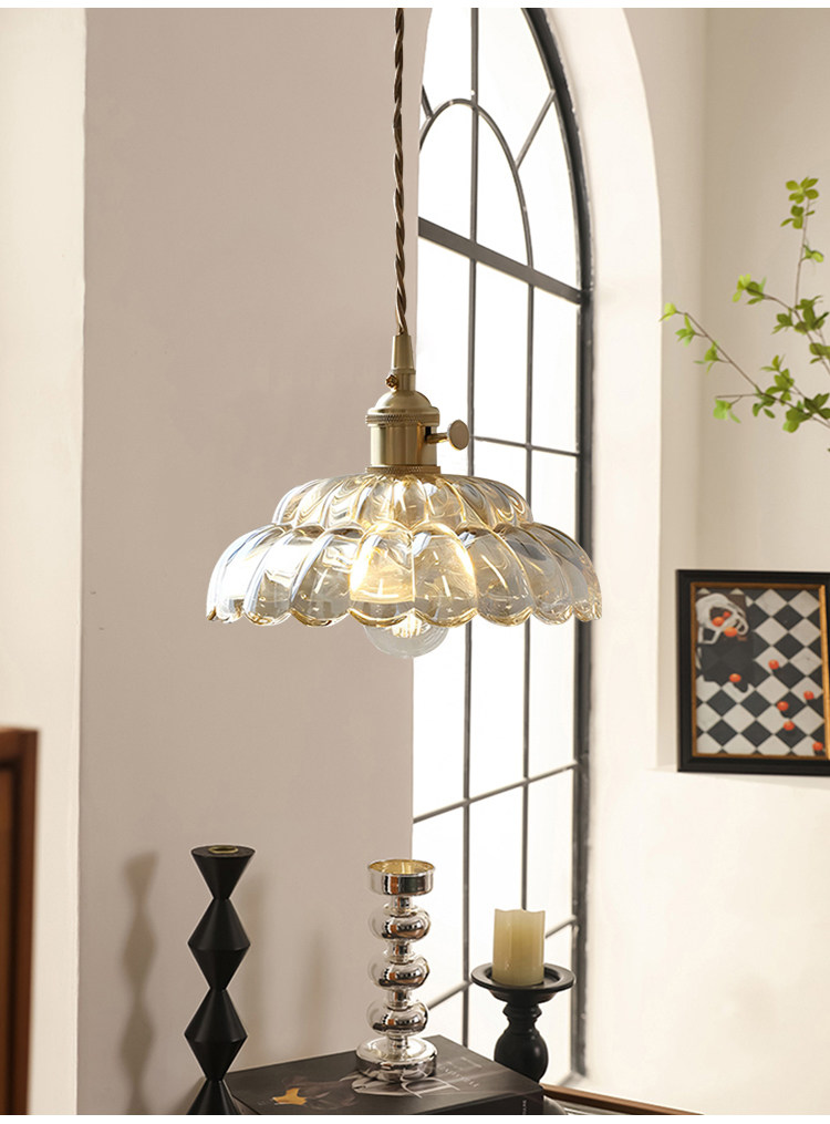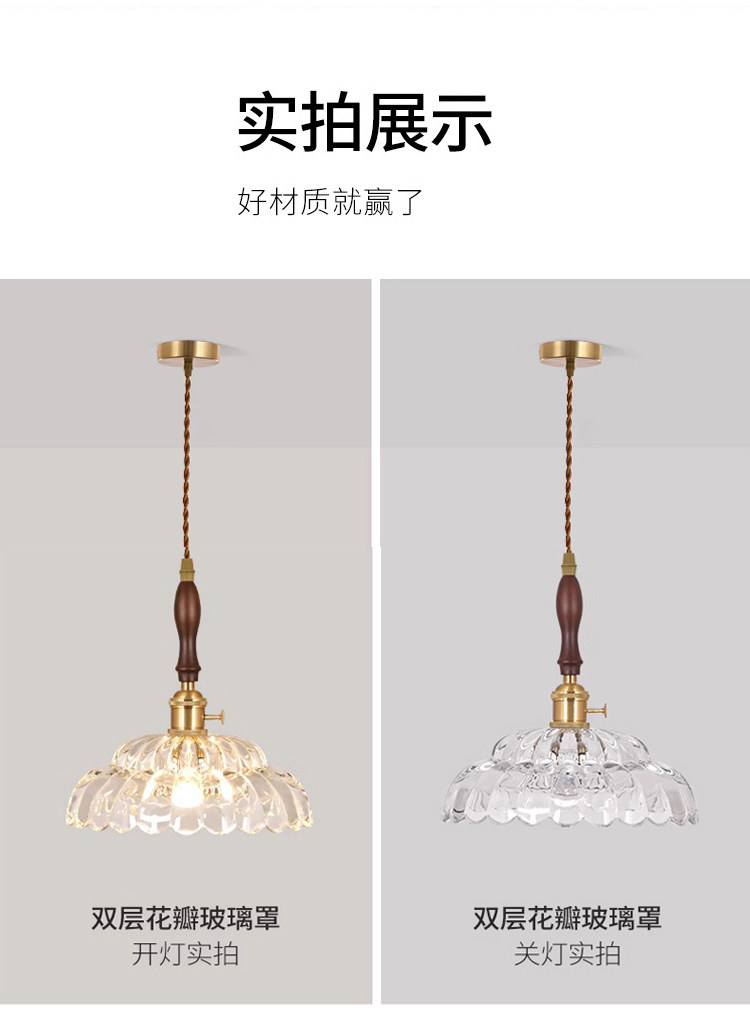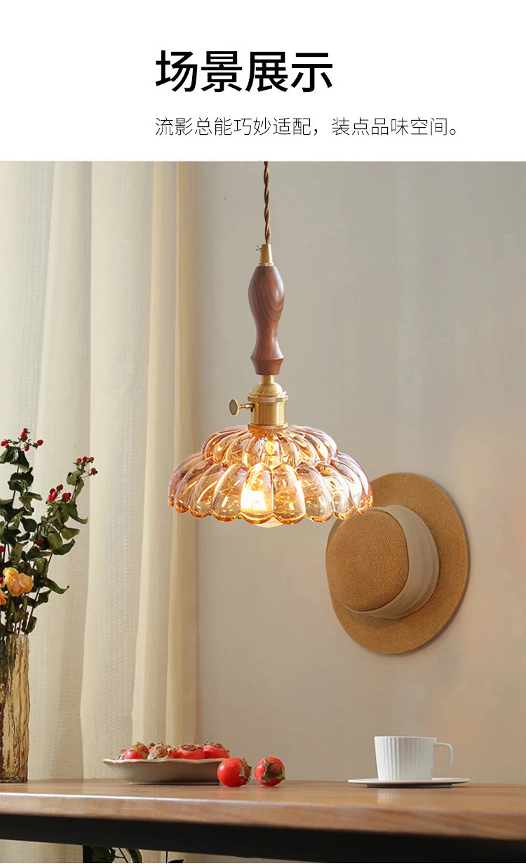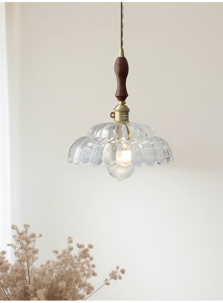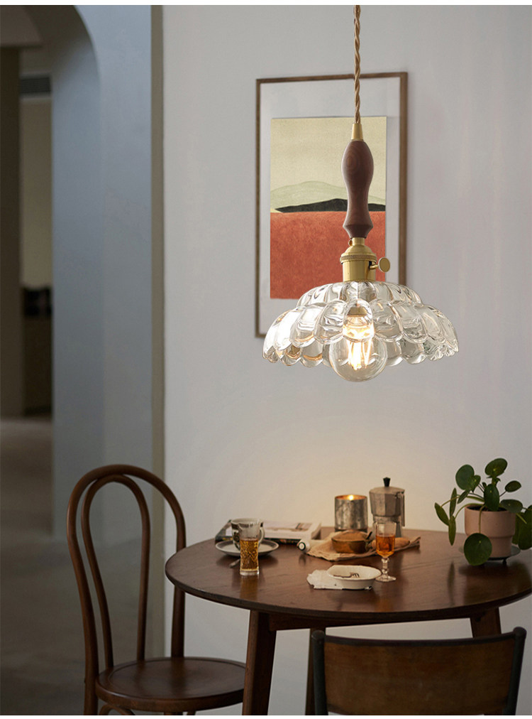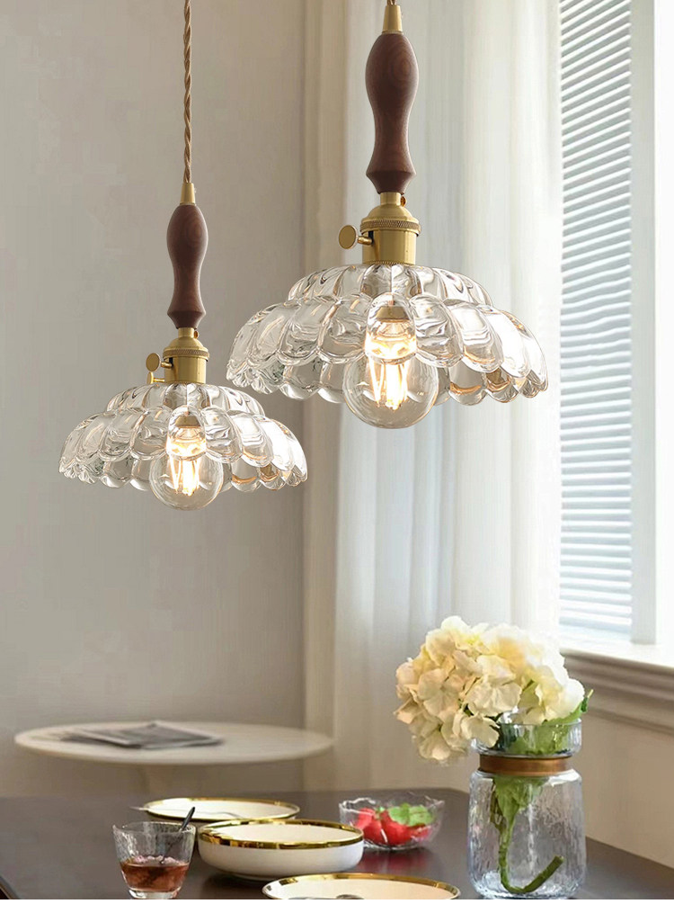 Nordic retro flower glass lamps creative personality restaurant lamp bar bedside bedside hotel shop walnut chandelier