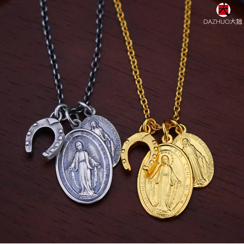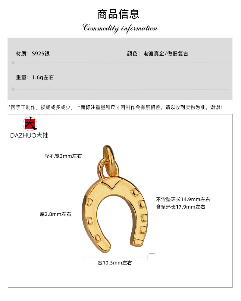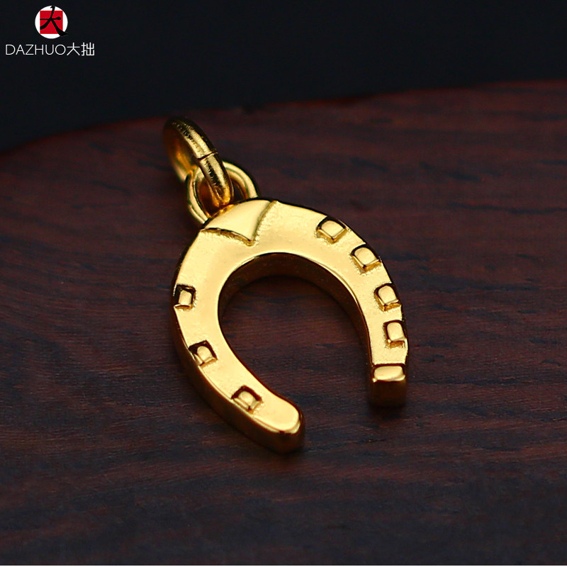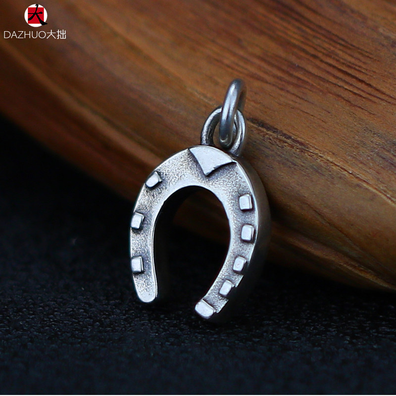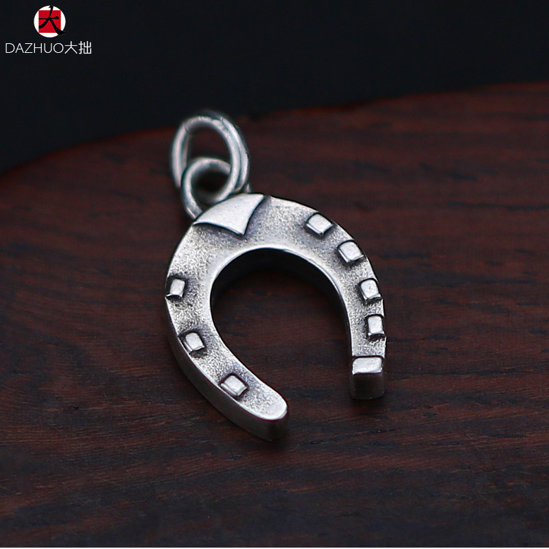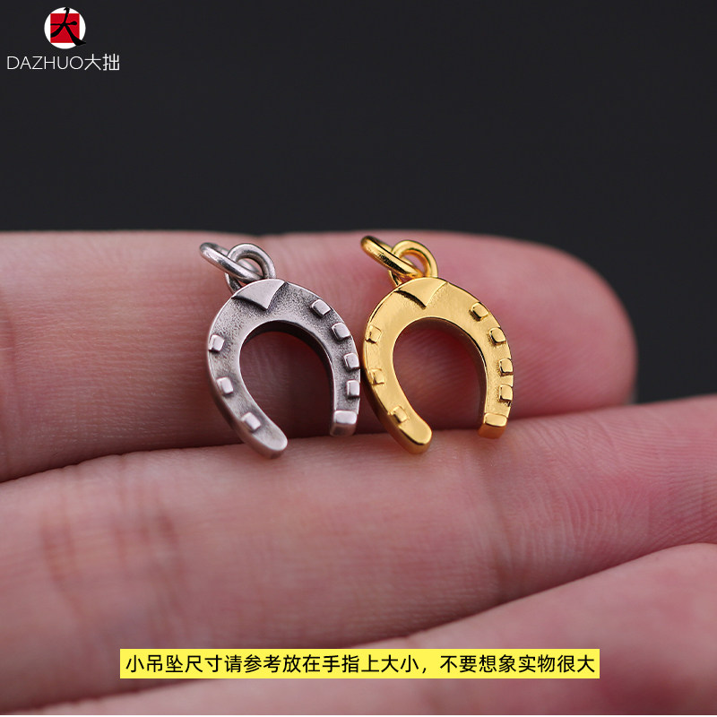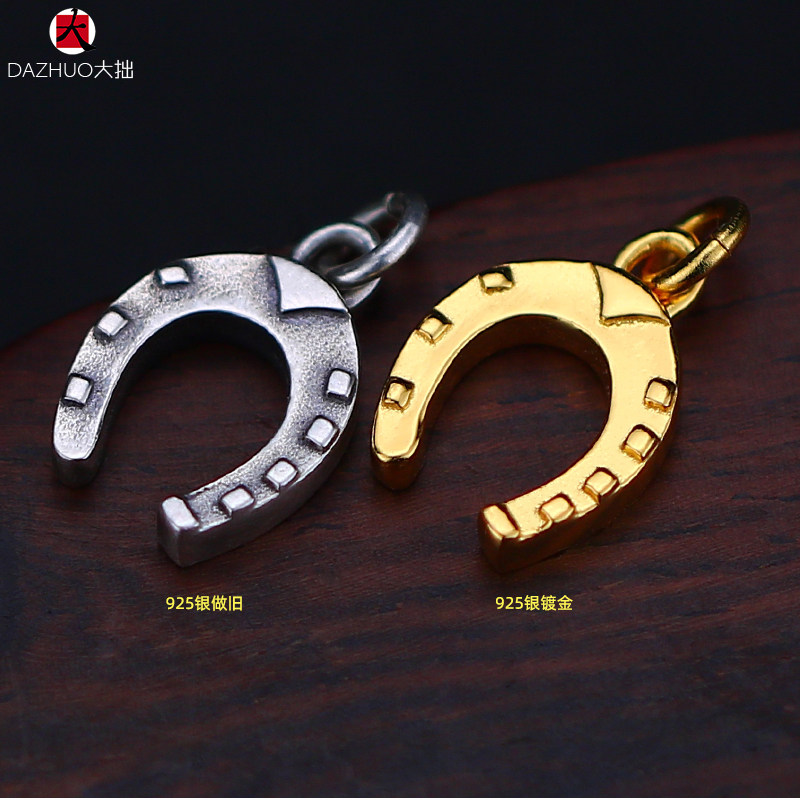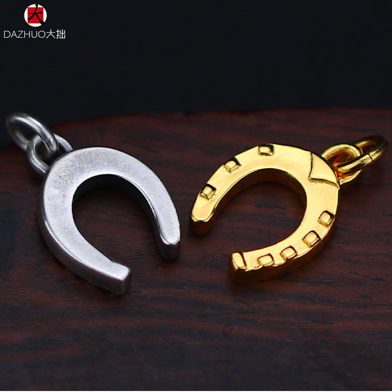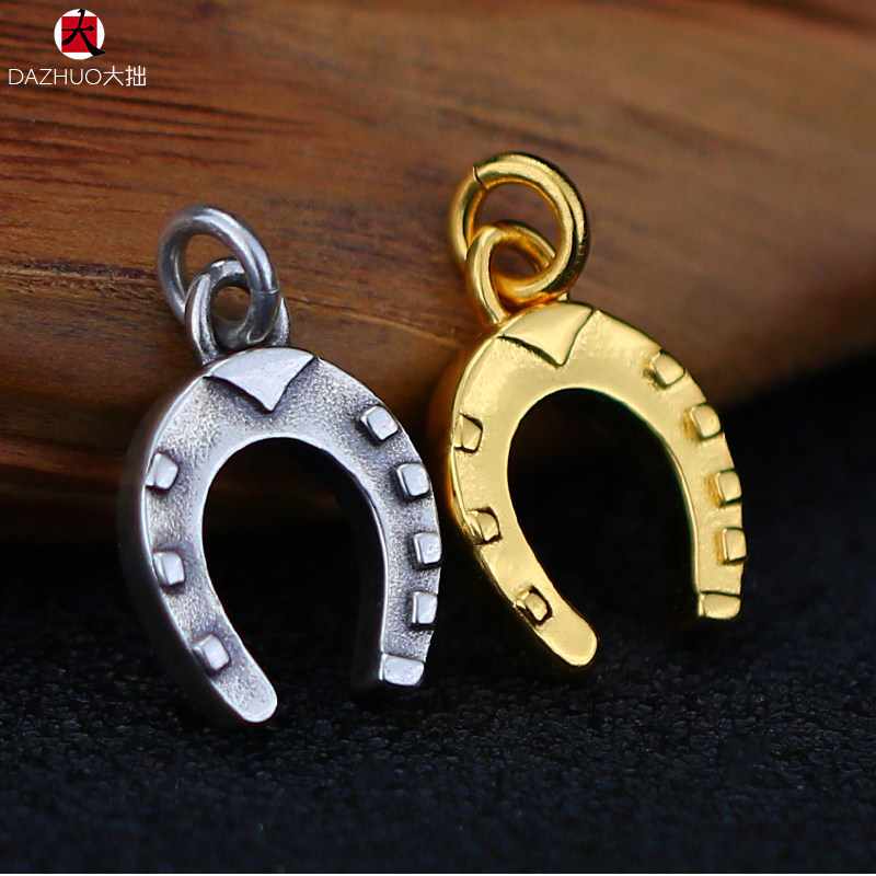 Big clumsy design solid horseshoe small pendant for men and women new s925 sterling silver retro gold-plated handmade original individual pendant