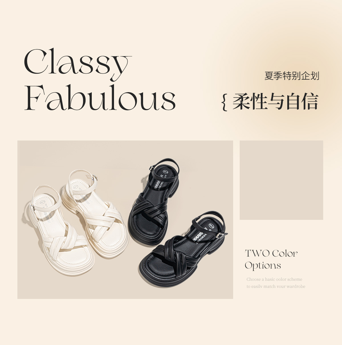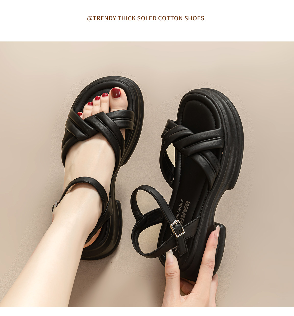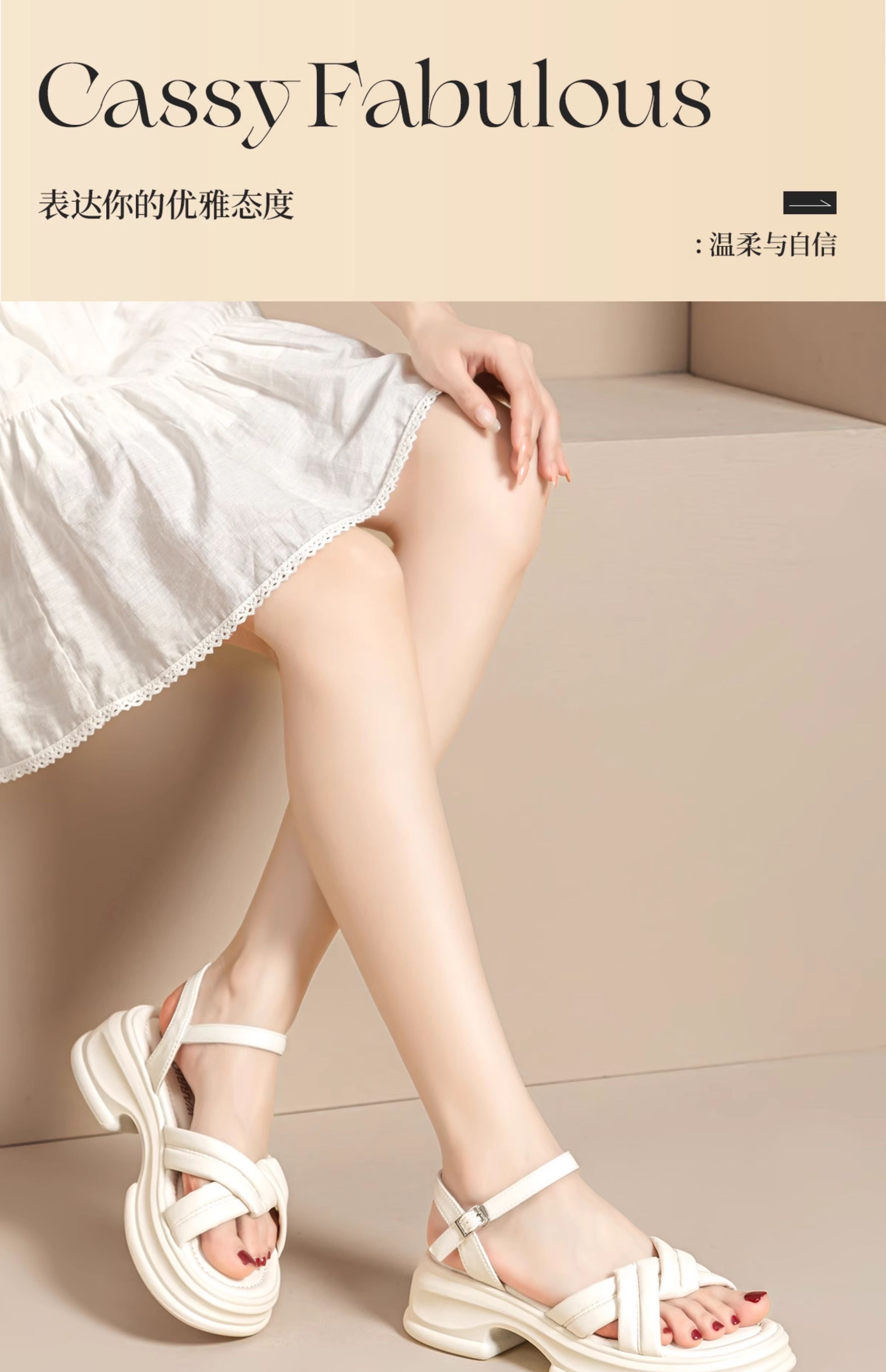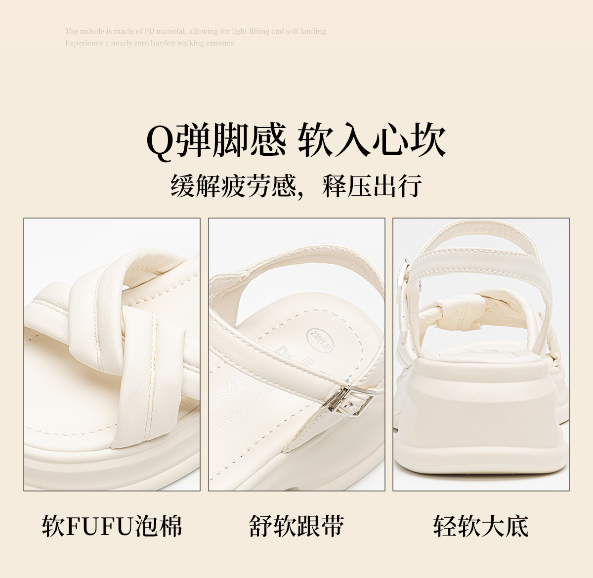 Pull-Back Thick-Soled Sandals for Women, Summer 2025 New Style, Suitable for Wearing with Skirts, Fairy-Style Soft-Soled Versatile One-Strap Sandals