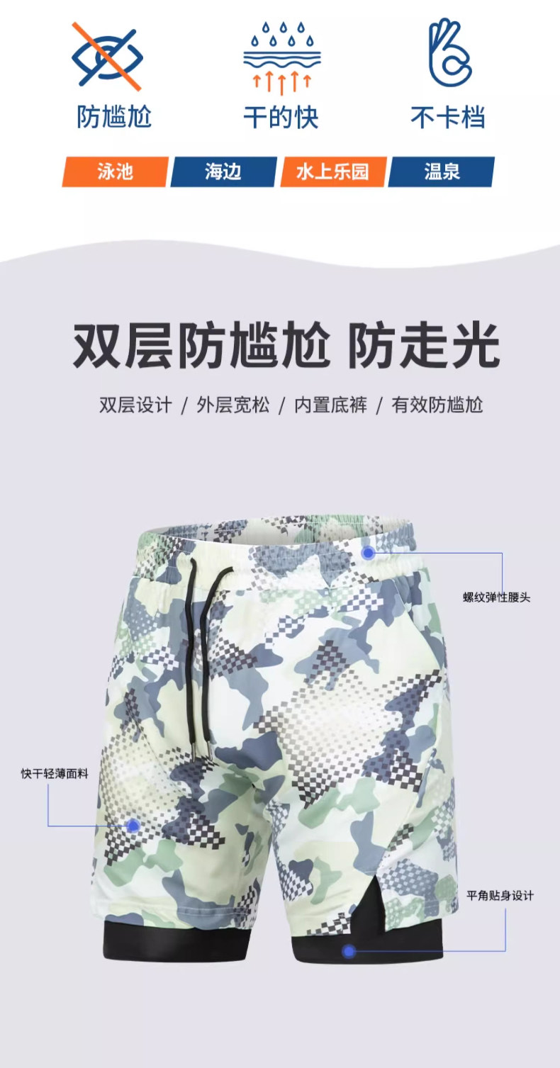 Men's swimsuit double-layer anti-embarrassment adult suit five-point swimming trunks men's loose quick-drying beach swimming trunks hot spring