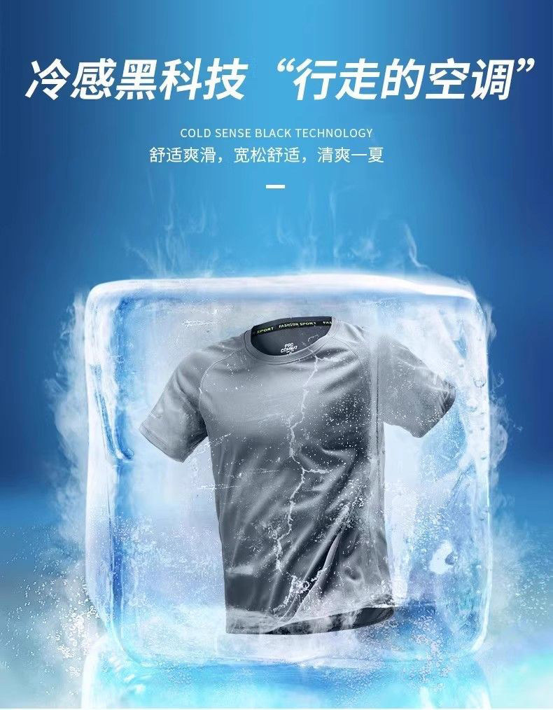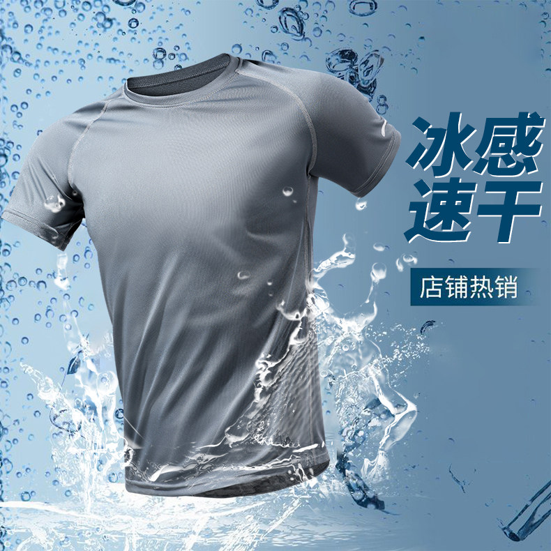 Ice Silk Sports Suit Men's Running Quick-Drying Short-Sleeved Summer Thin Fitness Clothing Casual Basketball Training Clothing Equipment