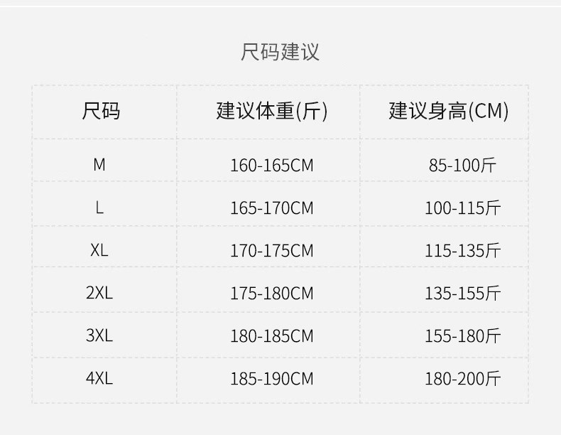 China (cm) 165 / 88-90 170 / 96-98 175 / 108-110 180 / 118-122 185 / 126-130