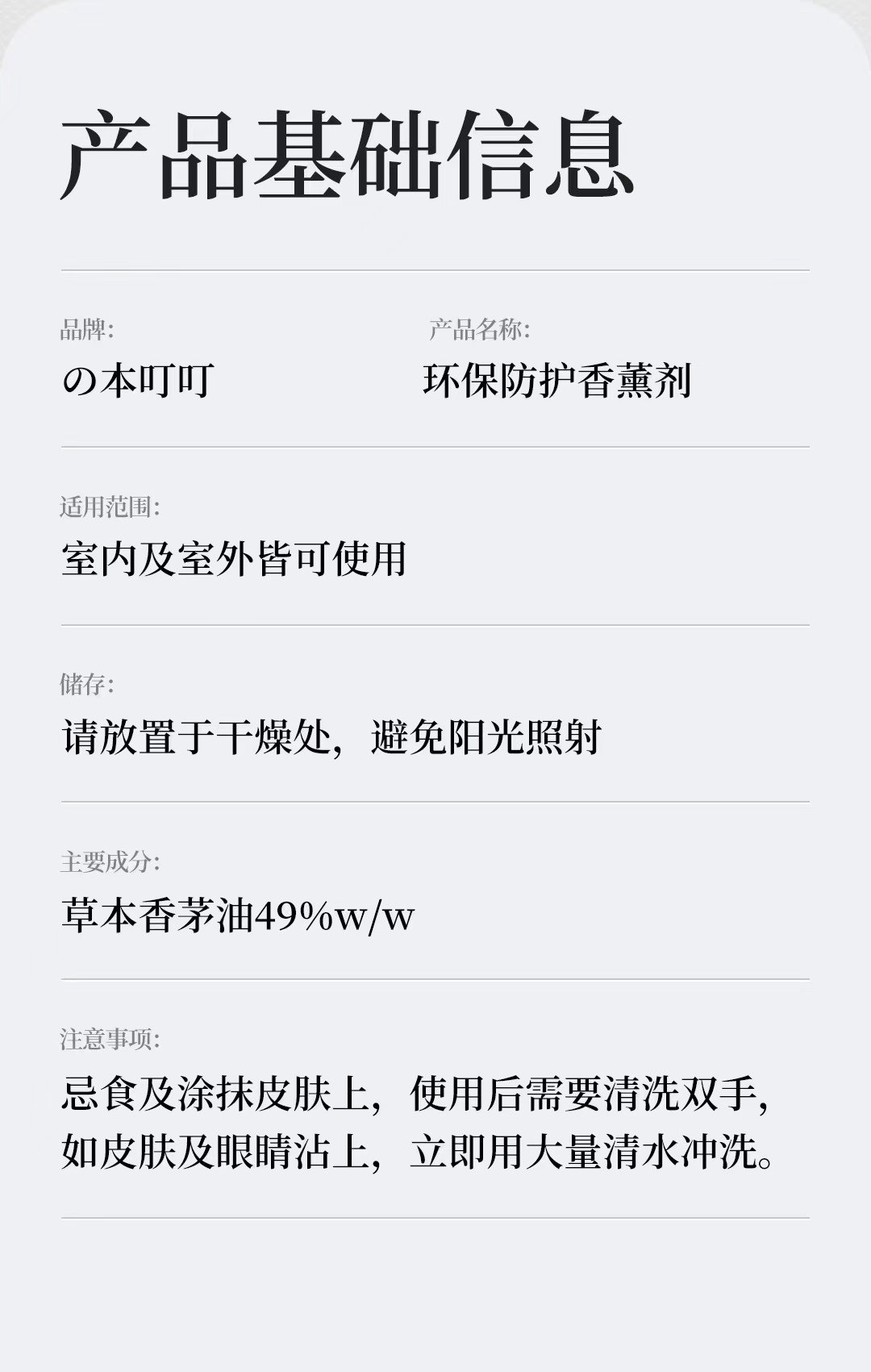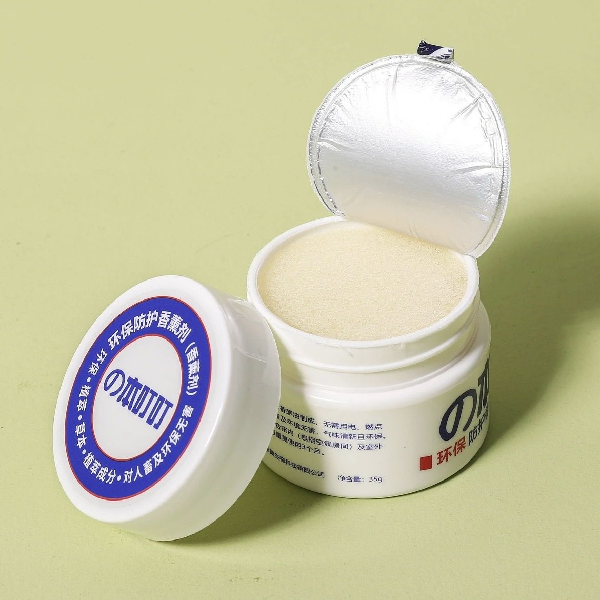 This eco-friendly mosquito repellent does not contain DEET. Mosquito repellent citronella diffuser 35g for pregnant and infants is ready to use after opening the lid.