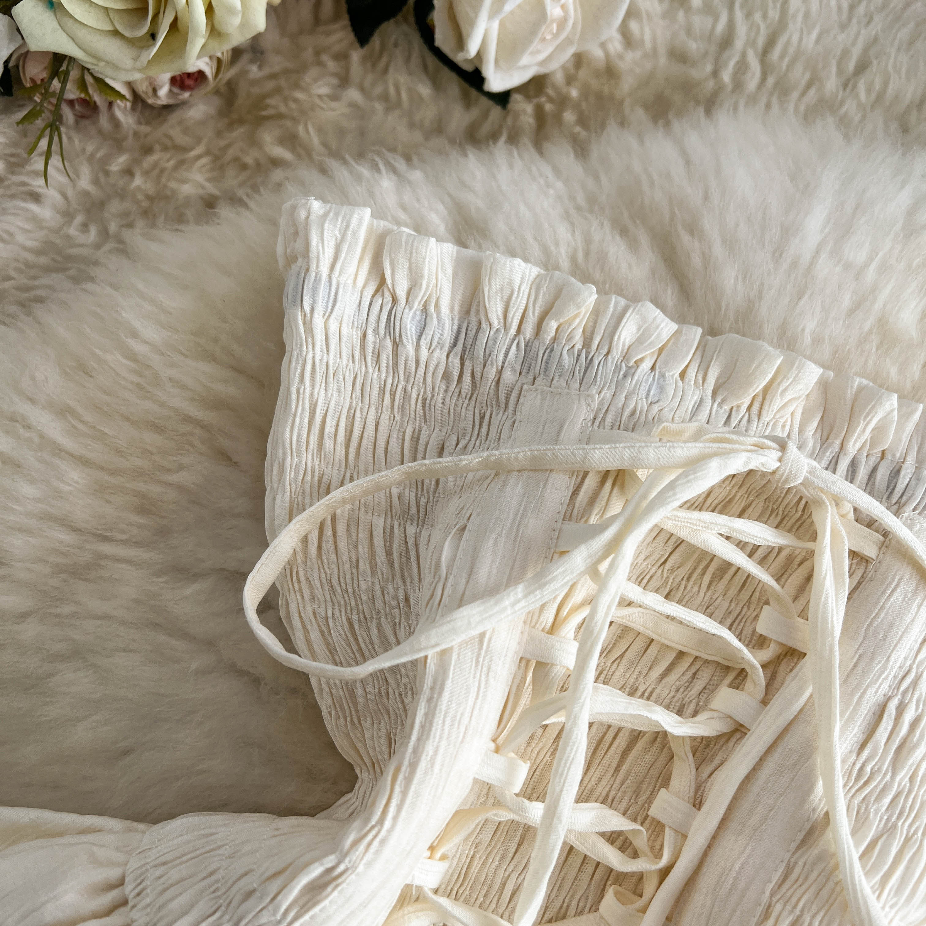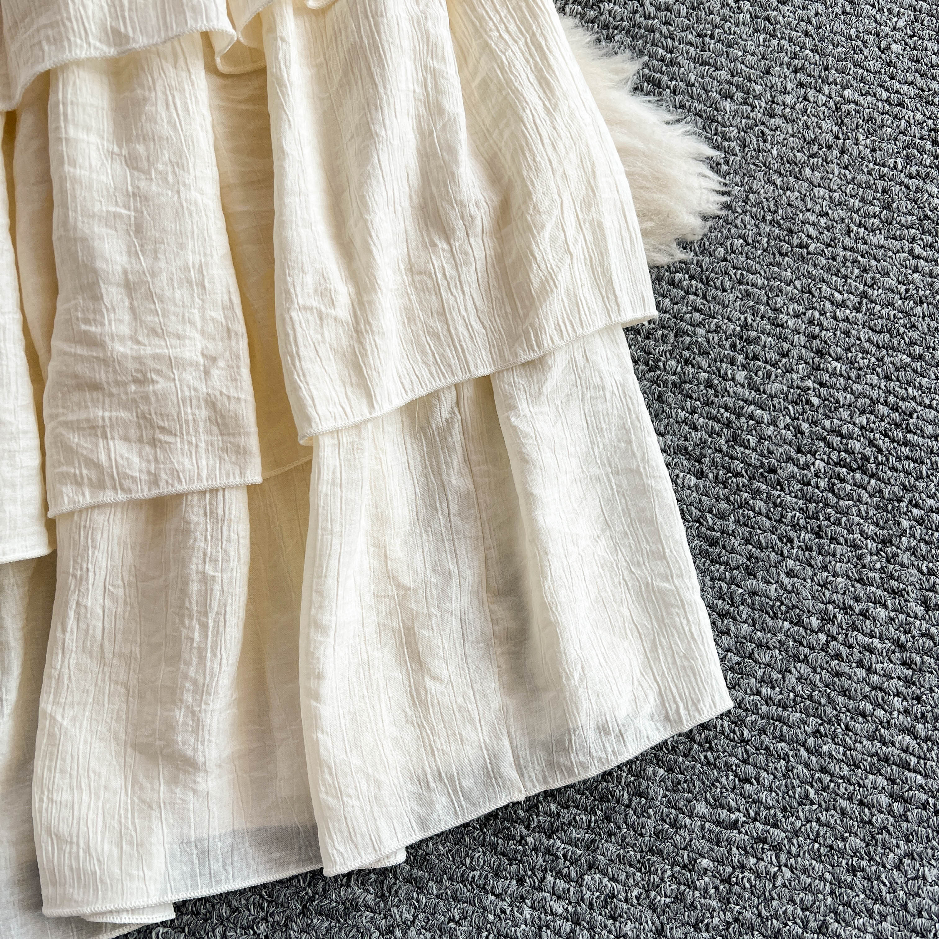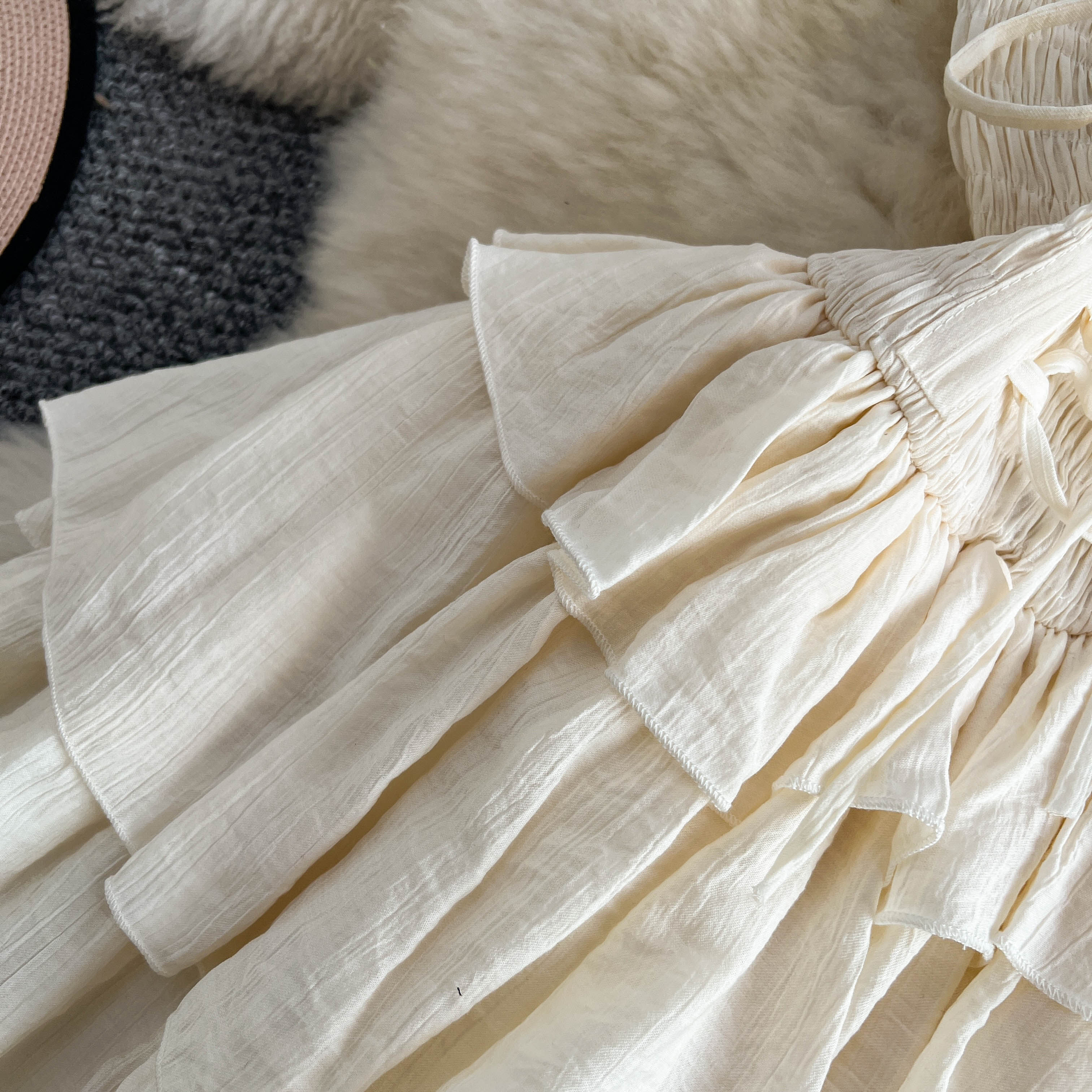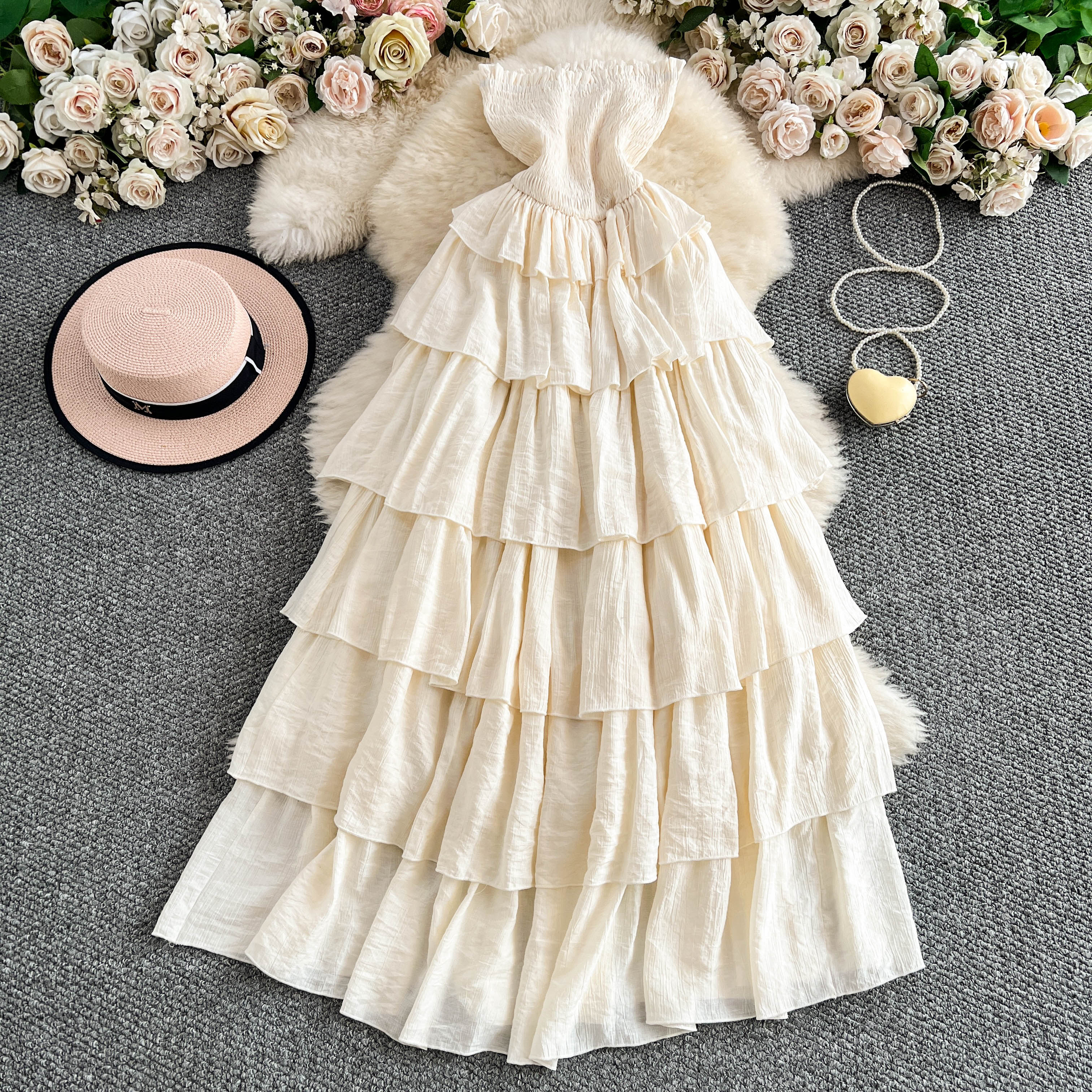 Atmospheric Niche French-Style Lace-Up Dress for Women, New Summer Style, Sexy Waist-Cinching, Slimming, Layered Ruffle Long Dress