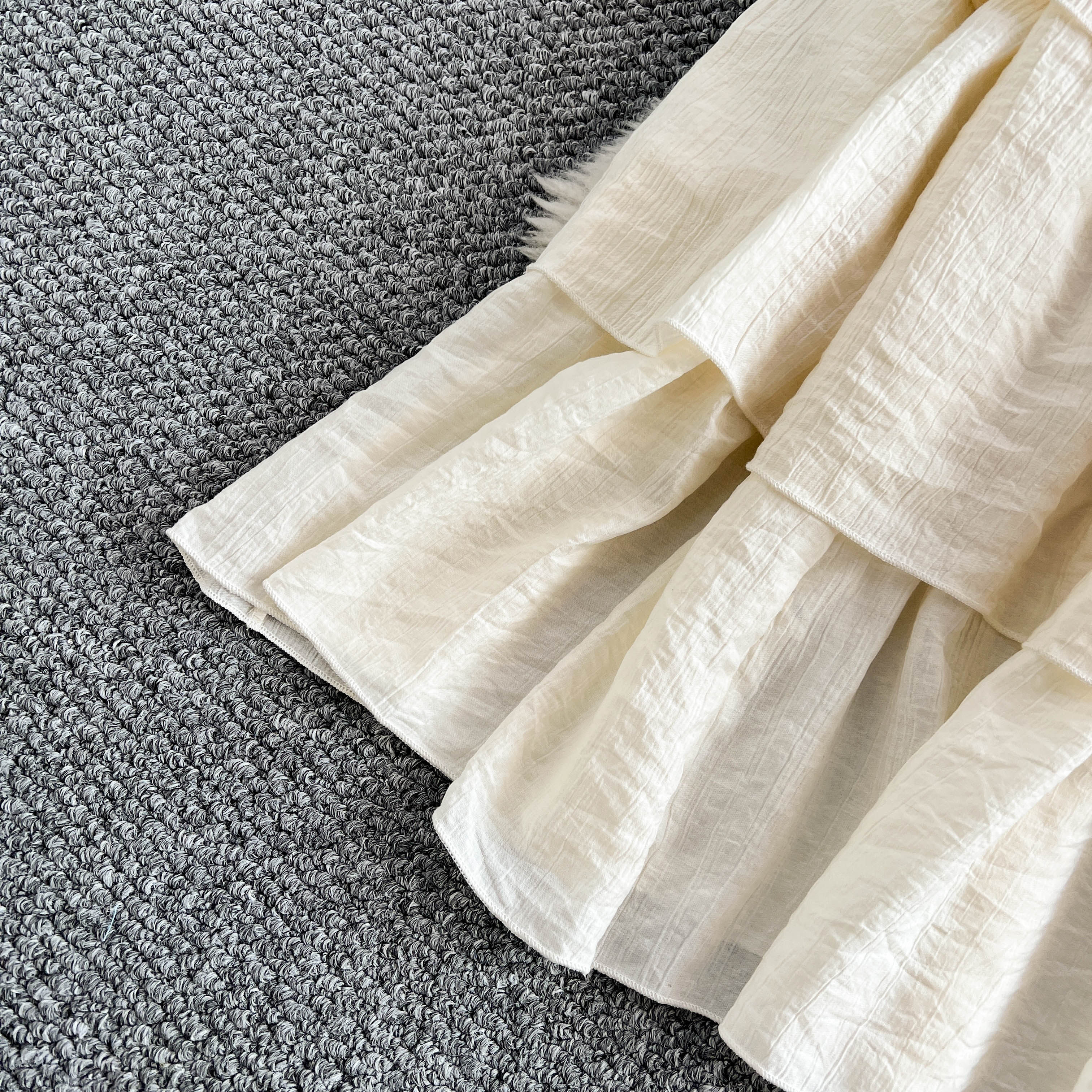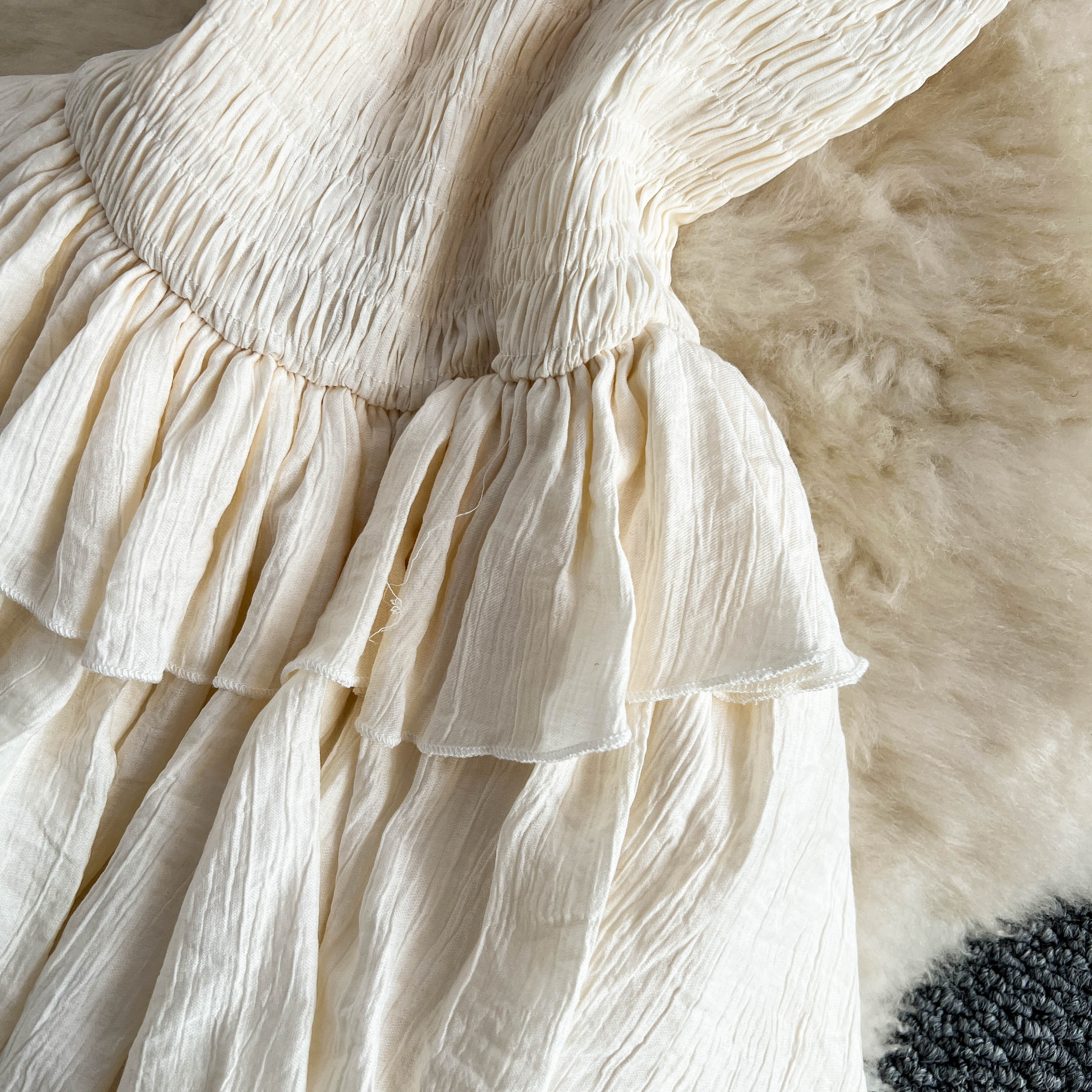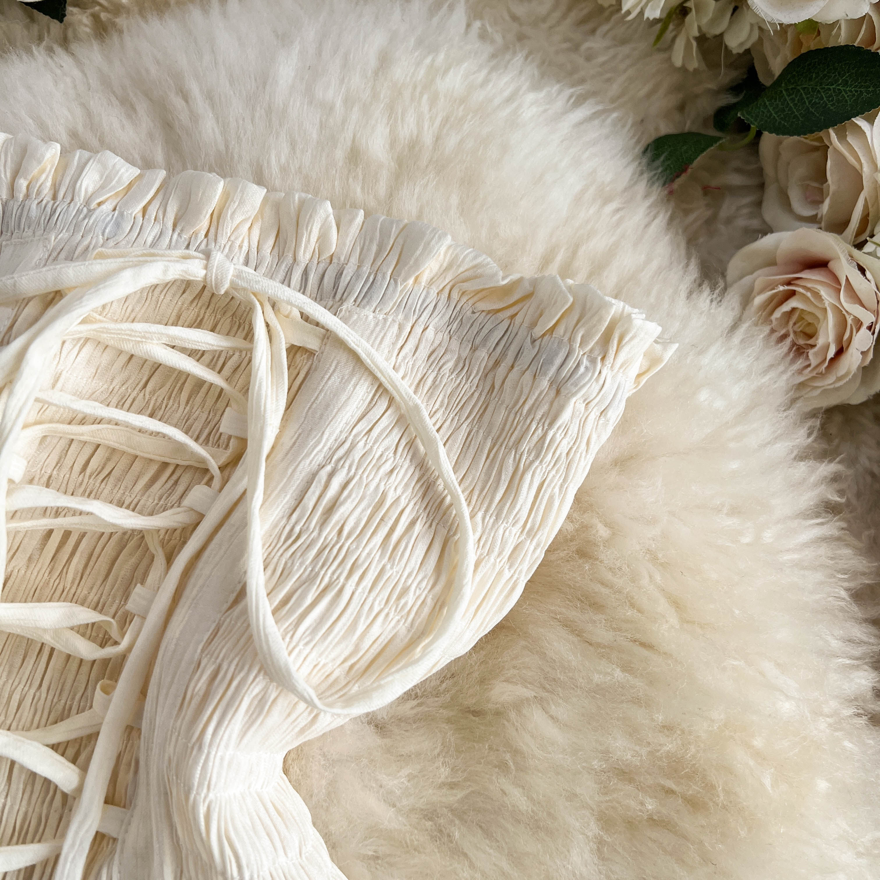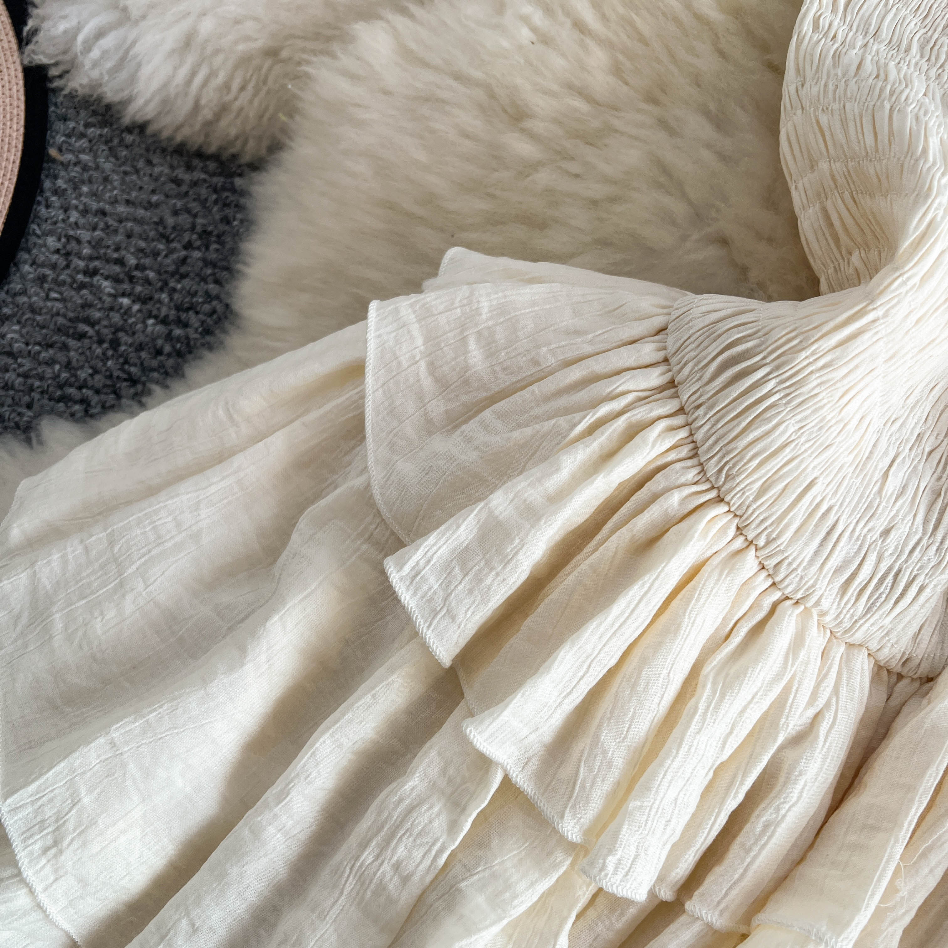 Atmospheric Niche French-Style Lace-Up Dress for Women, New Summer Style, Sexy Waist-Cinching, Slimming, Layered Ruffle Long Dress
