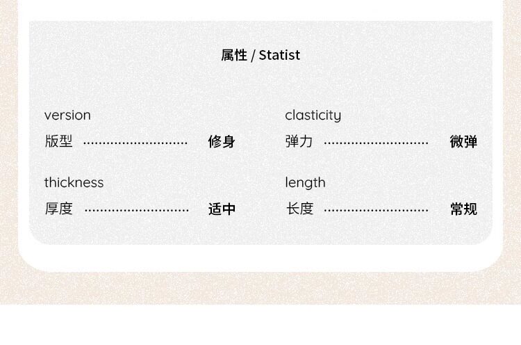 Material Composition Viscose Fiber (Viscose Fiber) 92.4% Polyurethane Elastic Fiber (Spandex) 7.6%