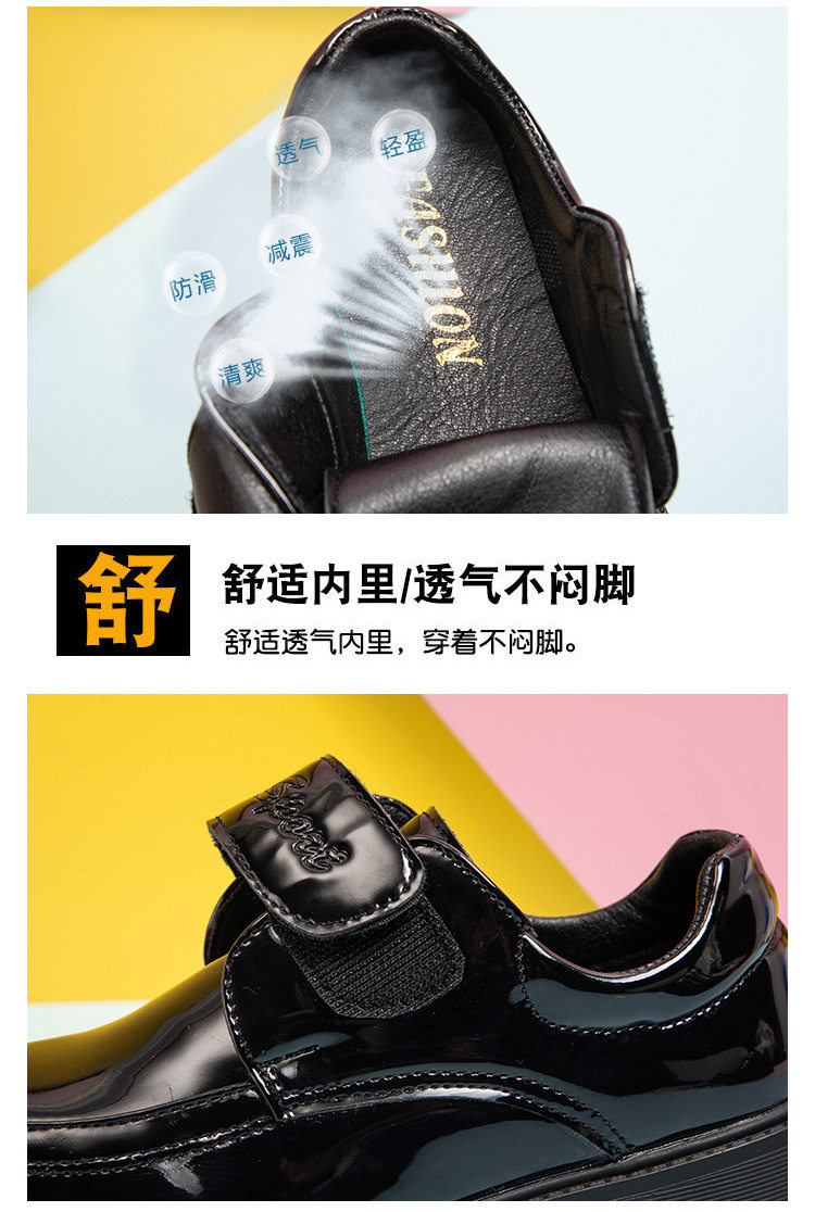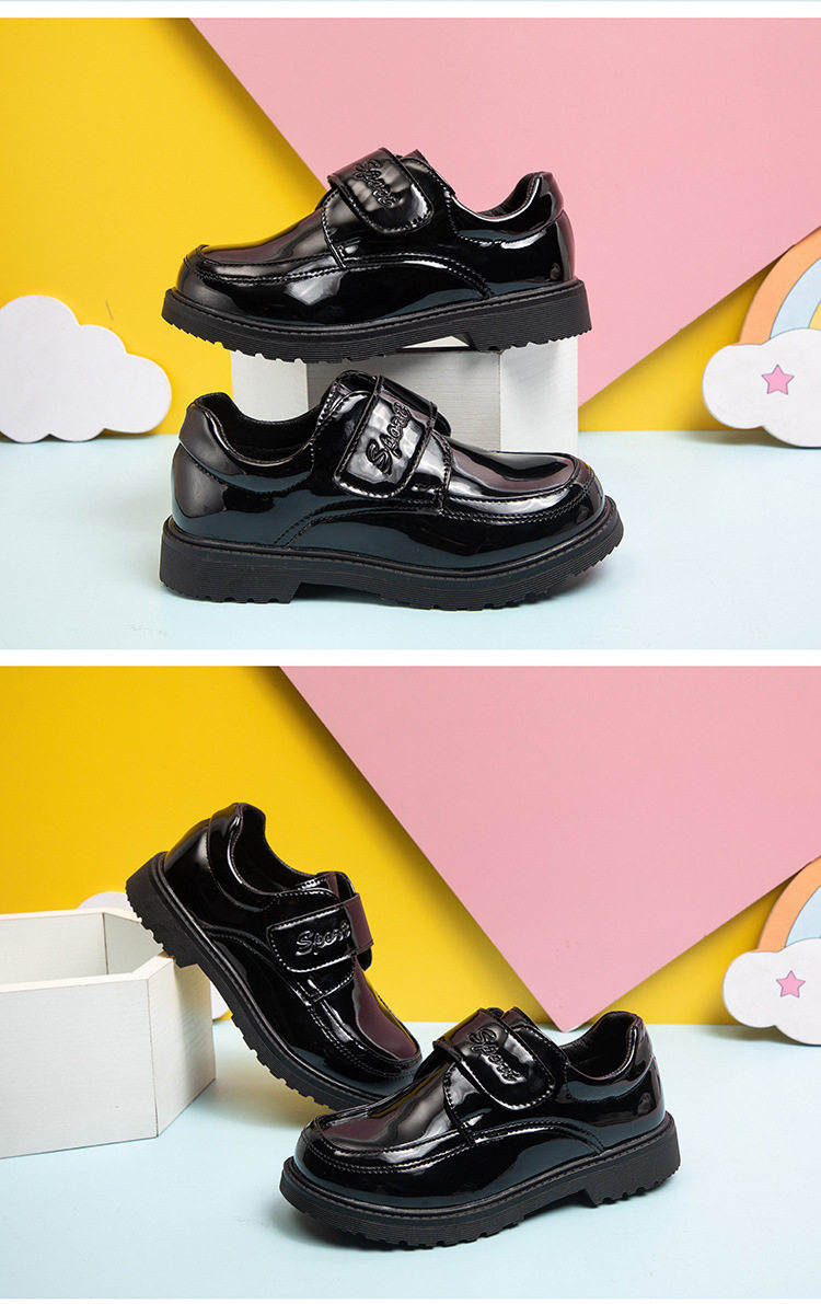 Boys' Black Leather Shoes with Soft Soles for Children's Performances, Boys' Show Shoes, Student Spring and Autumn New School Shoes, Patent Leather Dress Shoes