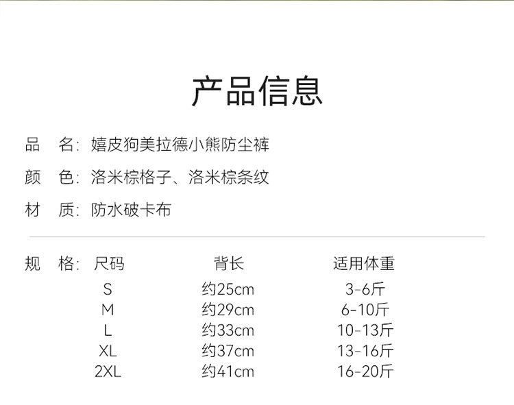 Size S Code[Back Length 25Cm/Recommended 1.5-3kg],M Code[Back Length 29Cm/Recommended 3-5kg],L Size[Back Length 33Cm/Recommended 5-6.5kg],XL Size[Back Length 37Cm/Recommended 6.5-8kg],XXL Code[Back Length 41Cm/Recommended 8-10kg]