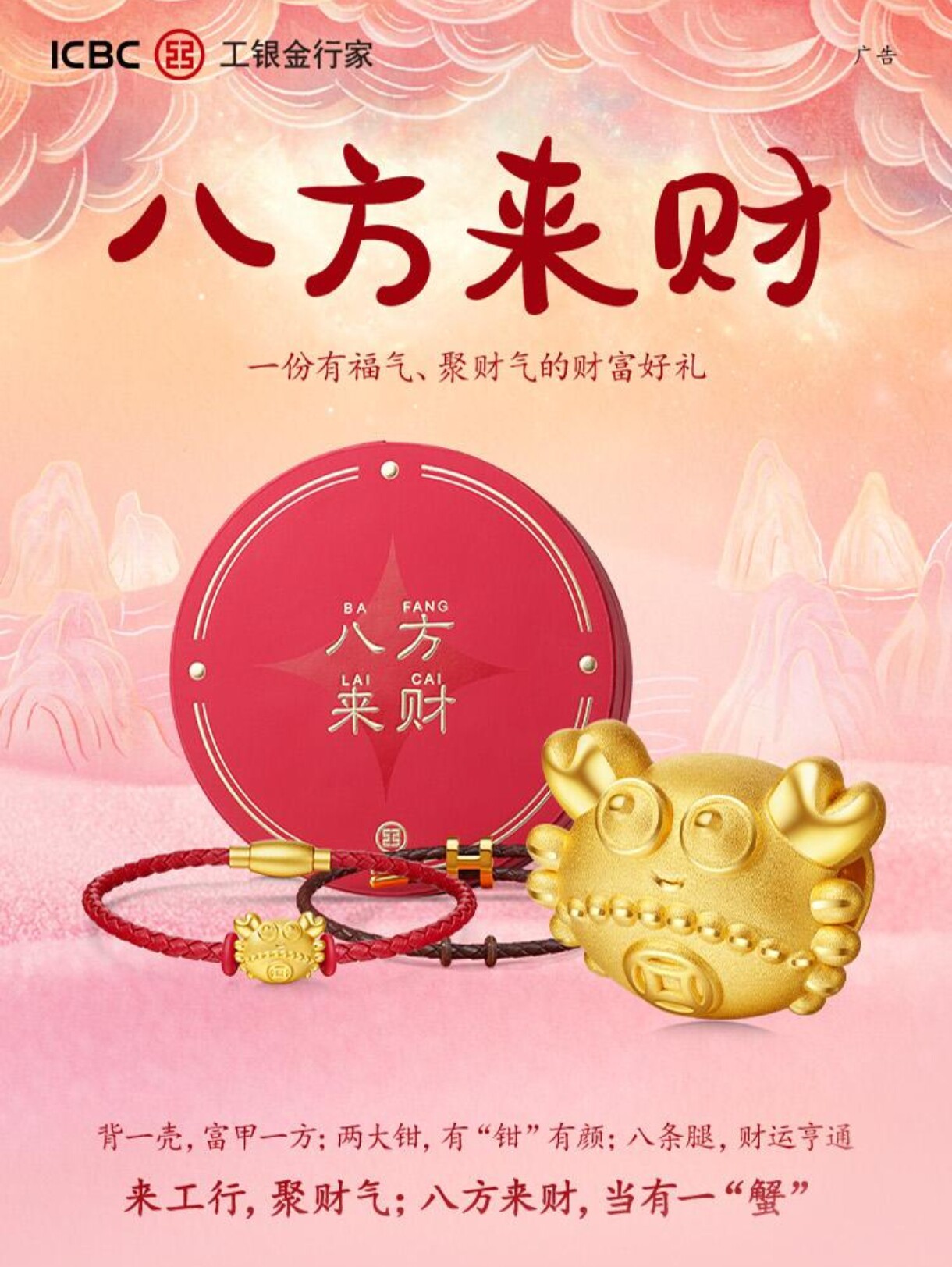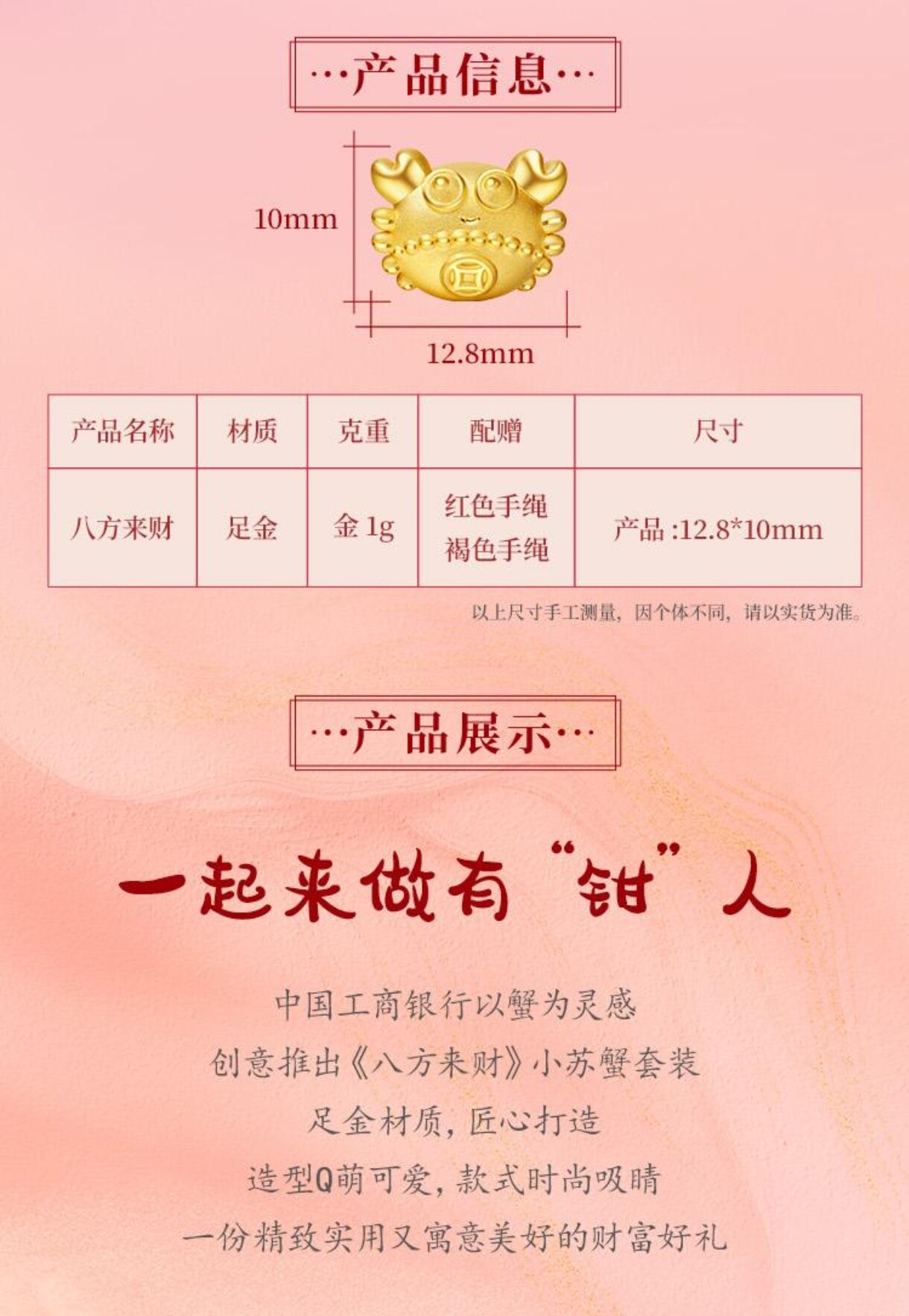 Industrial and Commercial Bank of China - Wealth from All Directions Little Crab - Pure Gold 1 Gram, Comes with 2 High-Quality Leather Cords Official Website, Genuine Product, Guaranteed Authenticity.