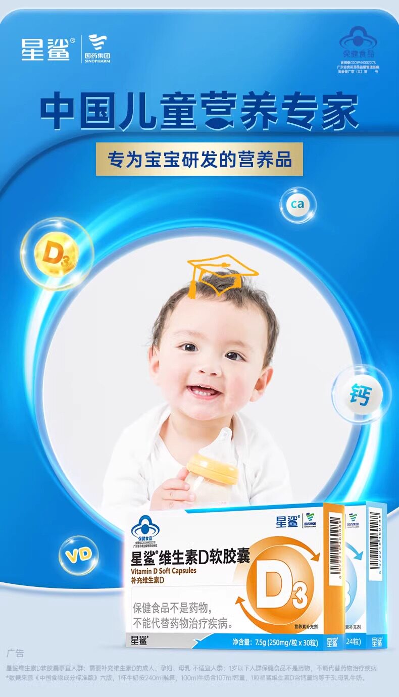 Star Shark Vitamin D3 Vitamin D Calcium Supplement Vd Soft Capsules Children's Calcium Tablets for Promoting Calcium Absorption Official Genuine Product