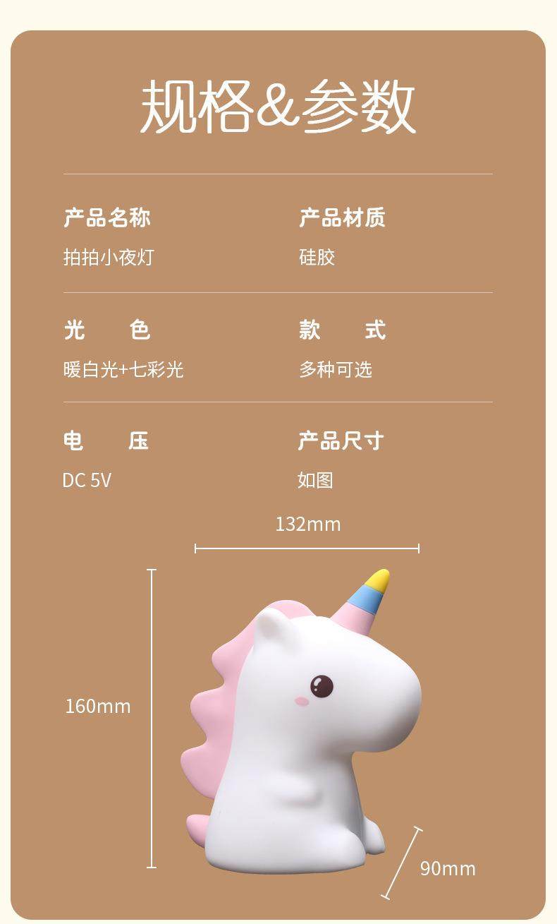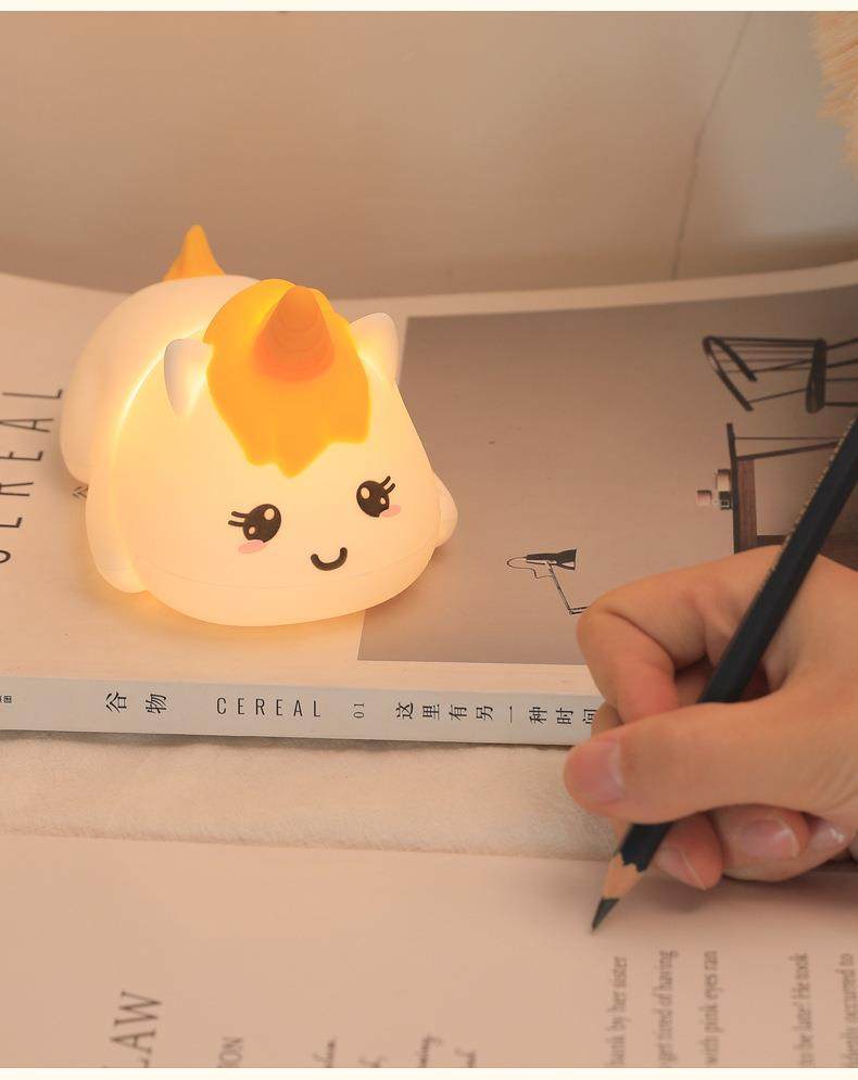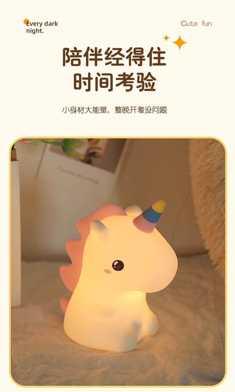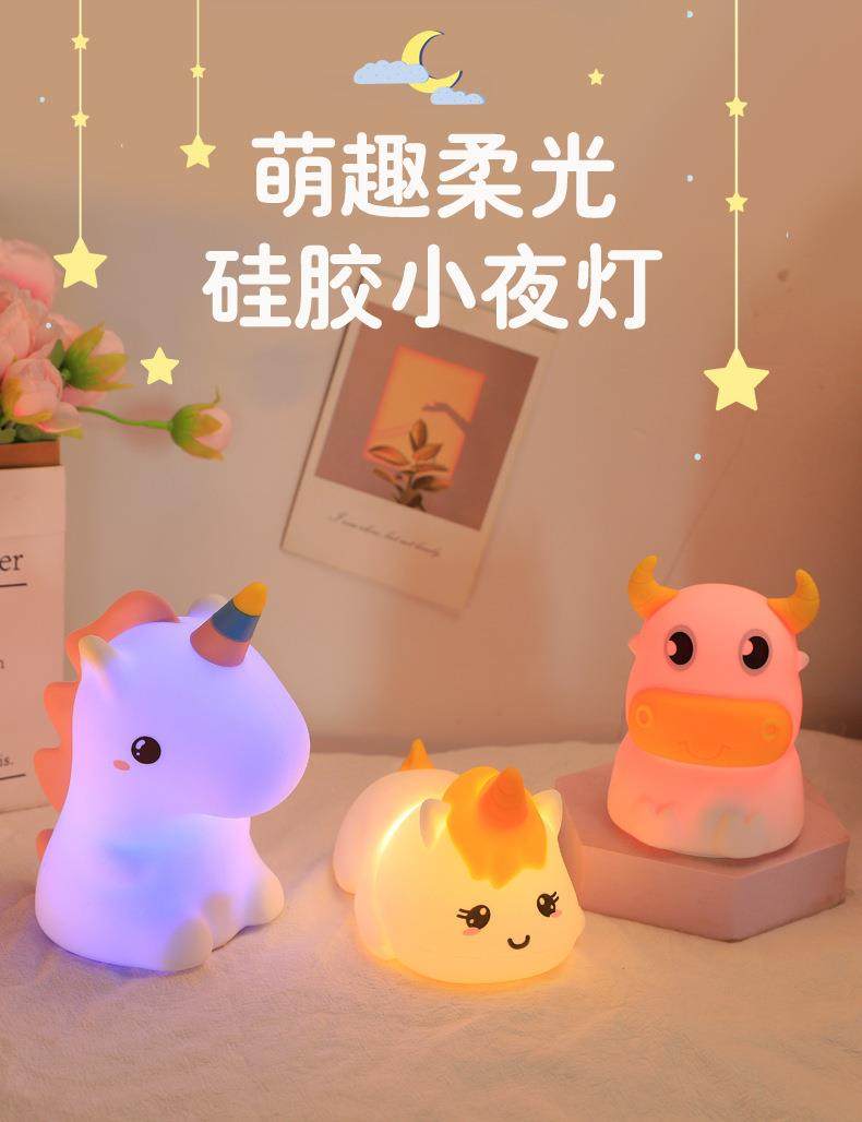 Unicorn Cartoon Cute Soft Light Pat Lamp Baby Sleeping Companion High-Looking Bedroom Ornament Table Lamp Silicone Night Light