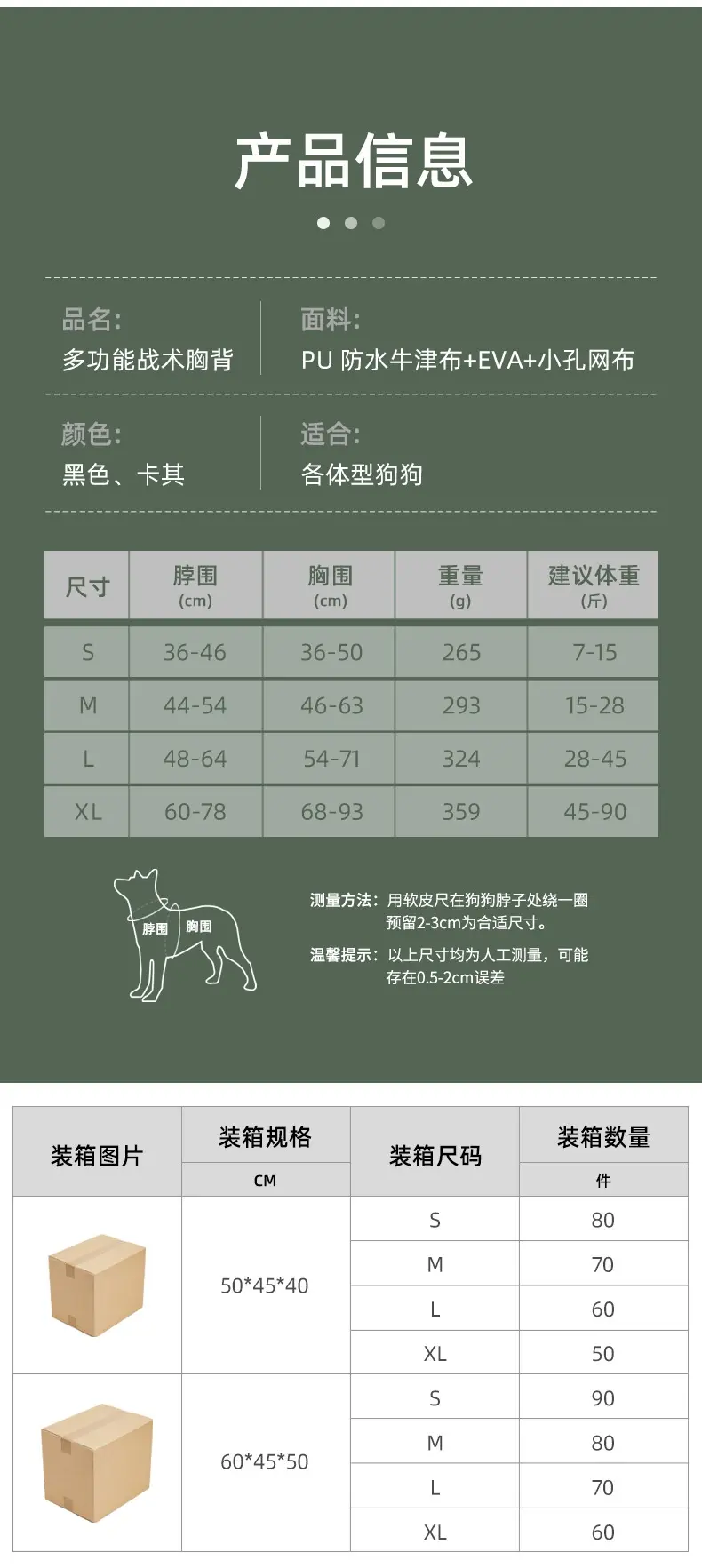 Applicable Size S (Recommended Weight 3.5-7.5kg),M (Recommended Weight 7.5-14kg),L (Recommended Weight 14-22.5kg),XL (Recommended Weight 22.5-45kg)