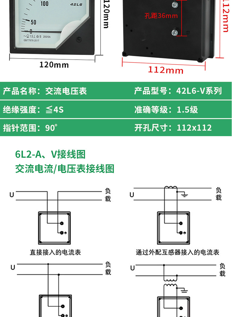 42L6 Analog Ac Ammeter 50/5 100/5 300/5 Voltmeter 300V 500V Mechanical Meter Head