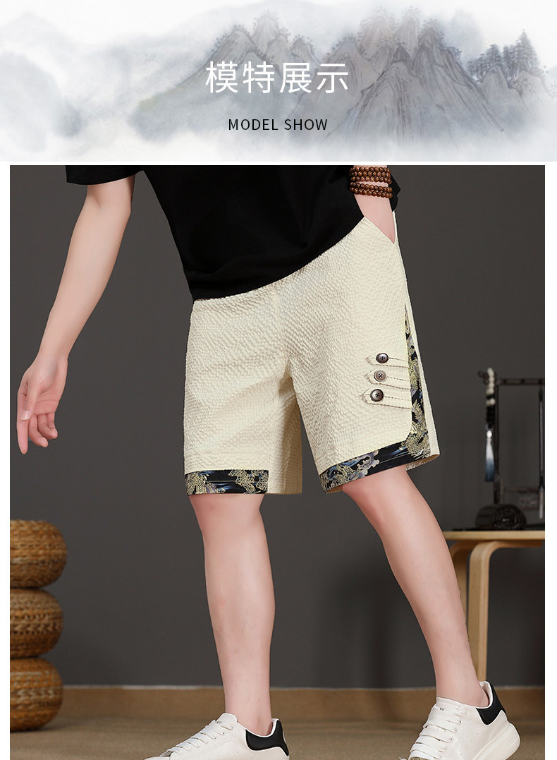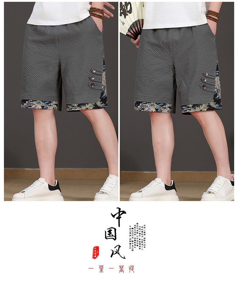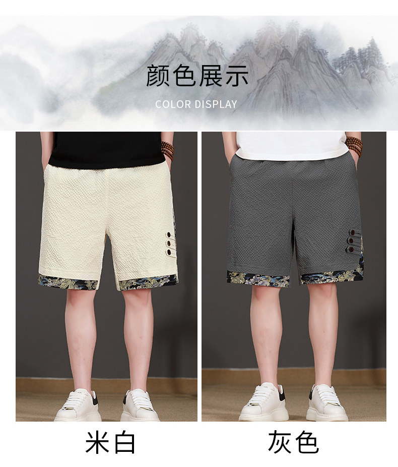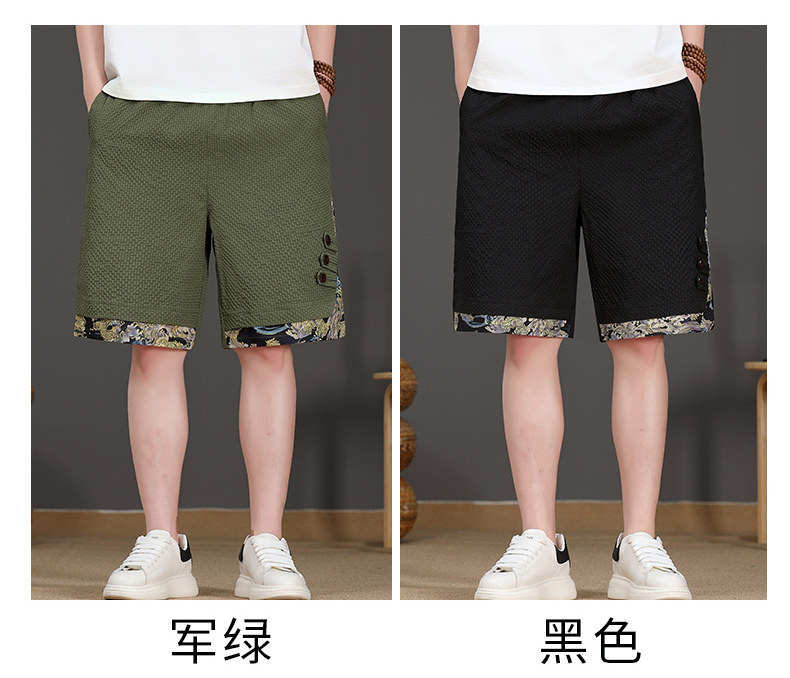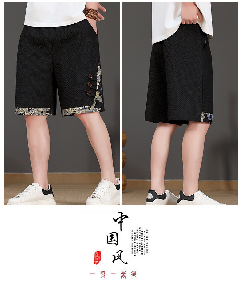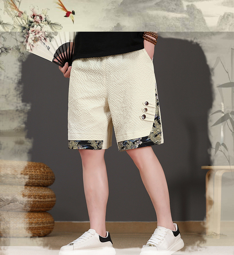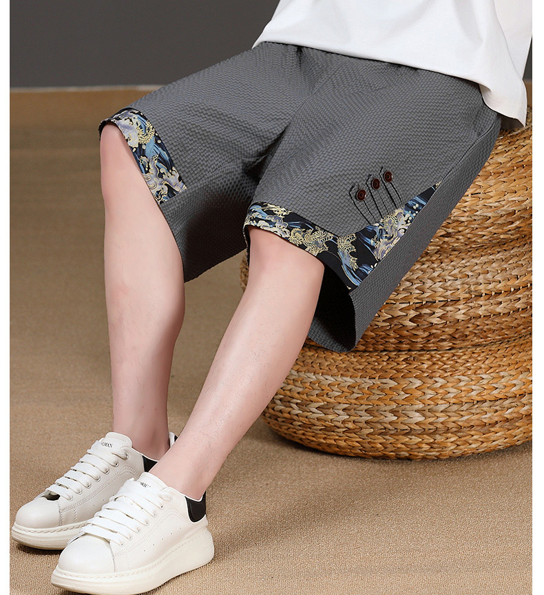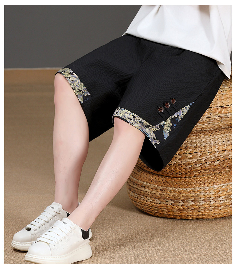 Chinese Style New Shorts for Men, Summer Thin Ice Silk Quick-Drying Loose Mid-Length Pants, Trendy Patchwork Casual Five-Point Pants