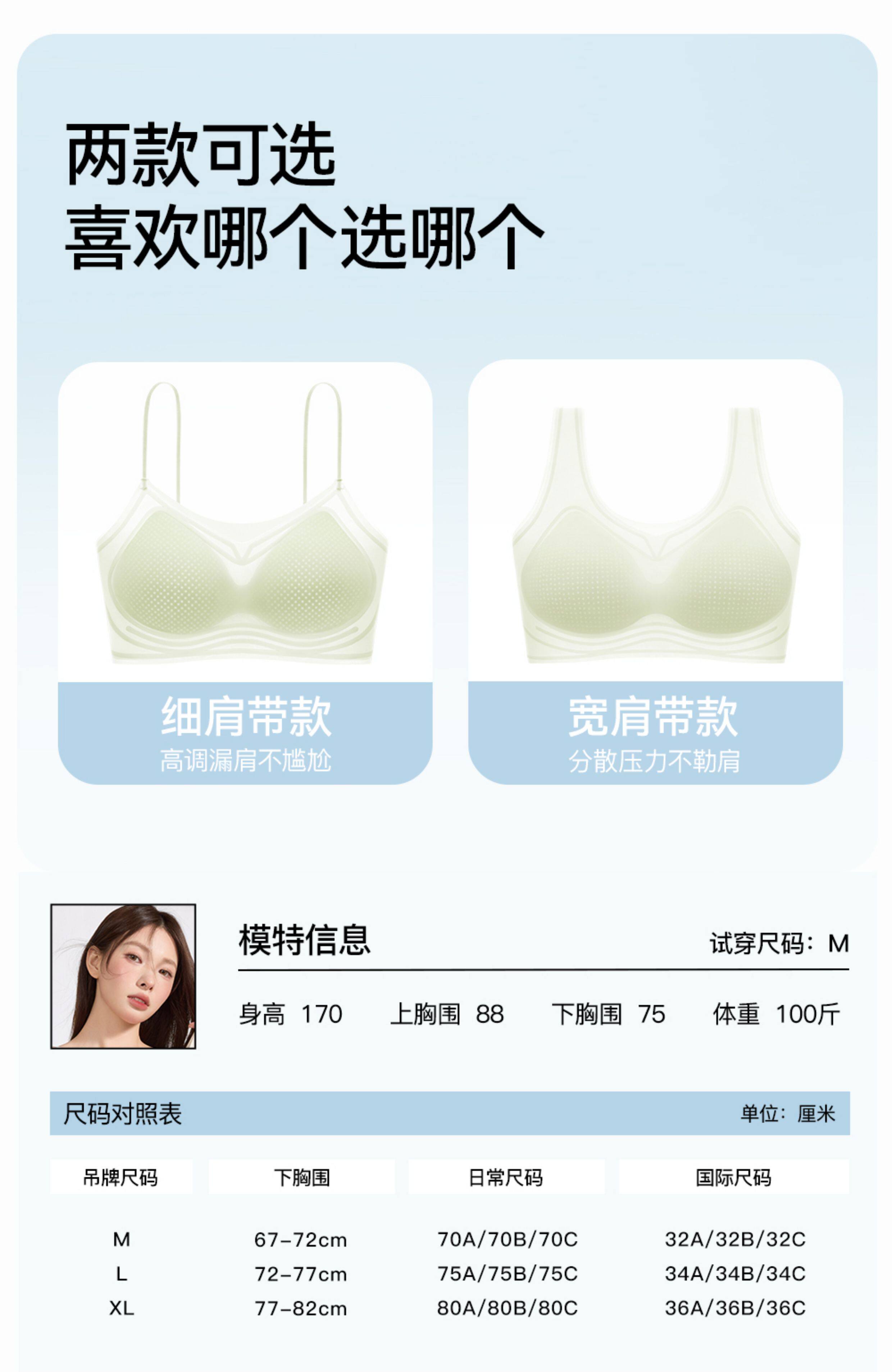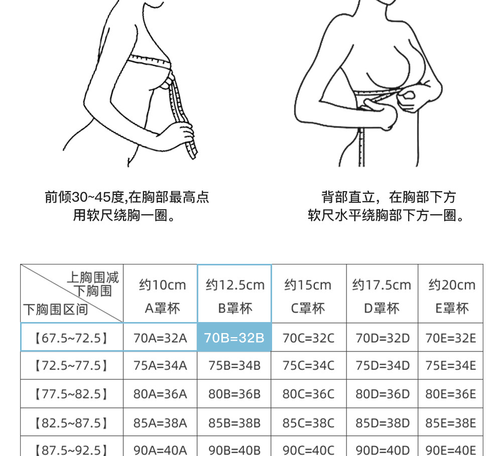 Size M(70A/70B/70C),L(75A/75B/75C),XL(80A/80B/80C)
