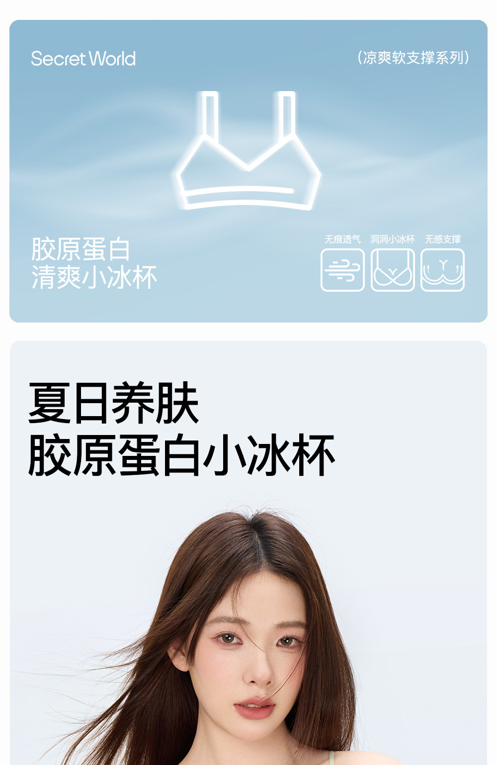 Secretworld Cool-Feeling Spaghetti Strap Bra for Women, Summer Ultra-Thin Small Chest Push-Up Breathable Seamless Bra