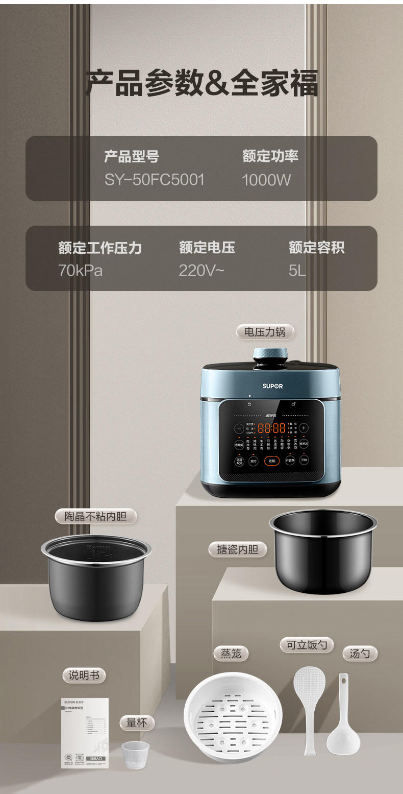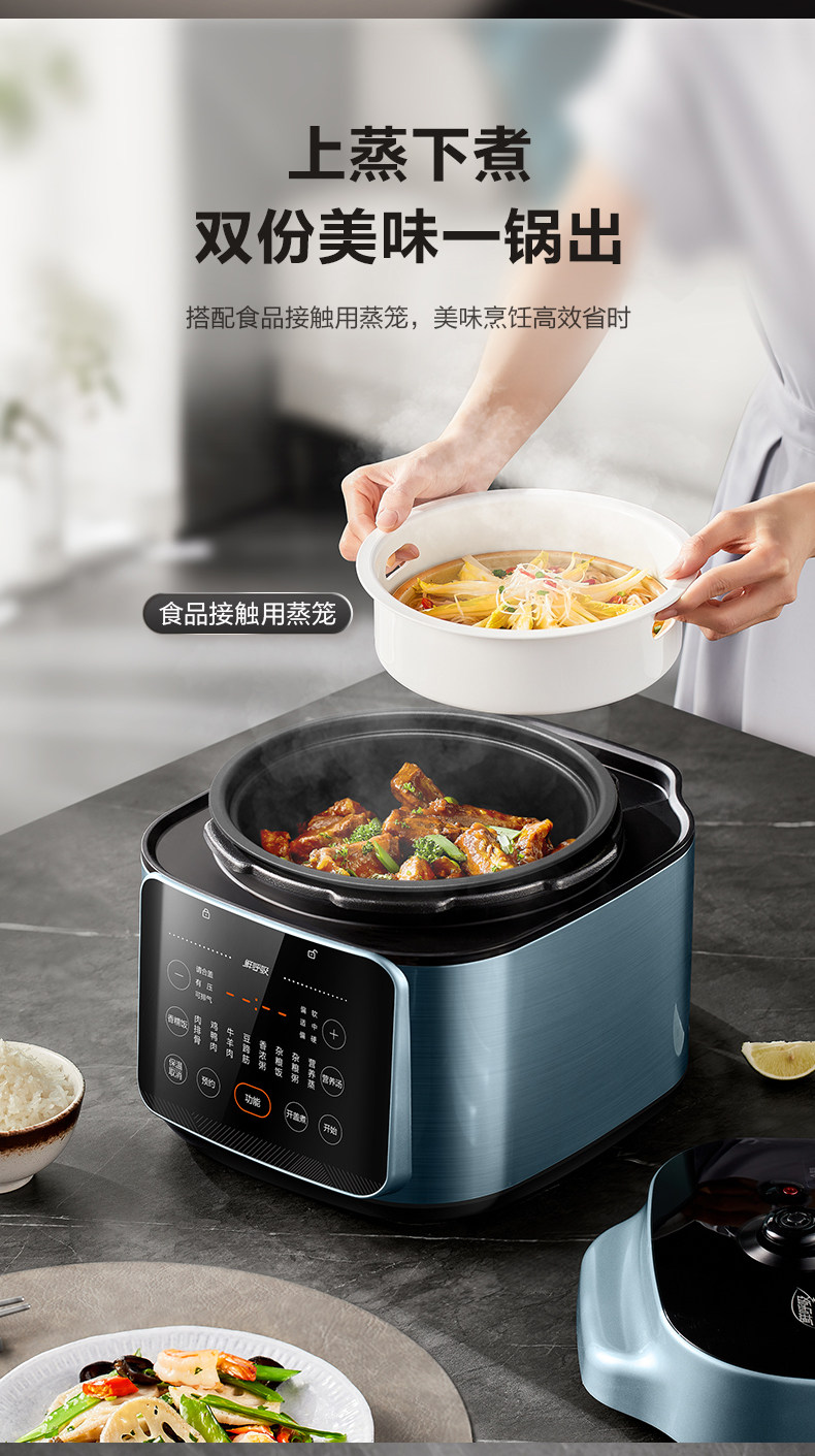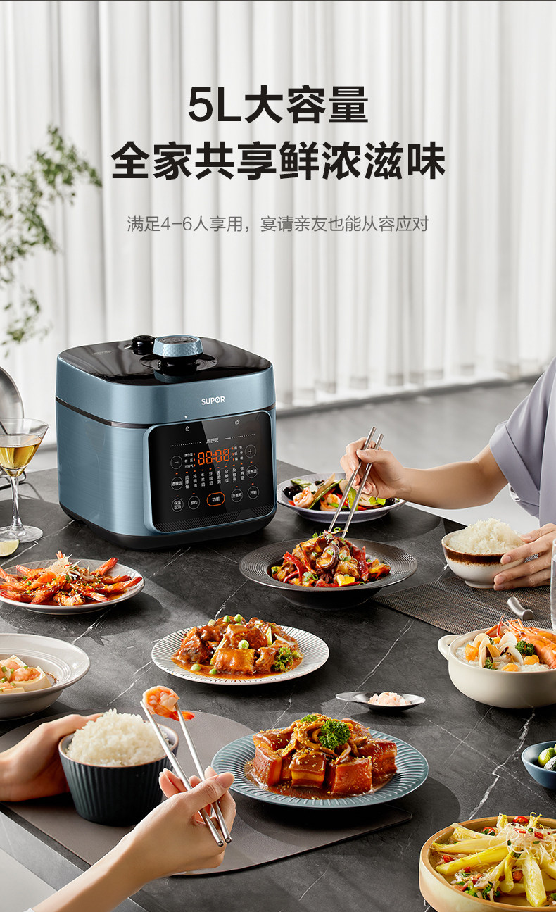 Supor Electric Pressure Cooker for Home Use, 5L Large Capacity, Dual Pot High-Pressure Cooker, Multifunctional Rice Cooker, Smart New Model