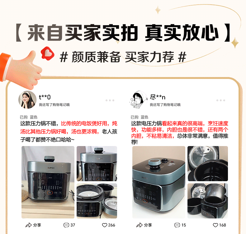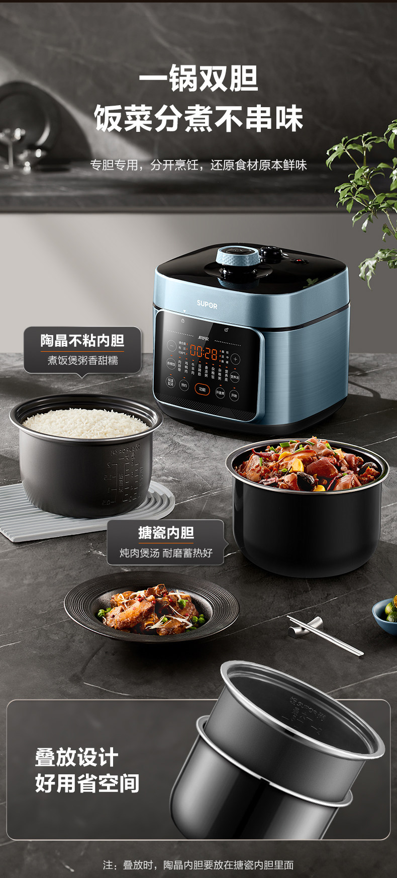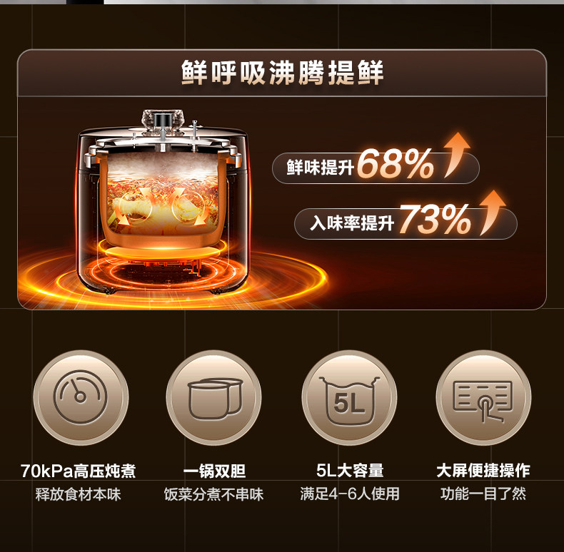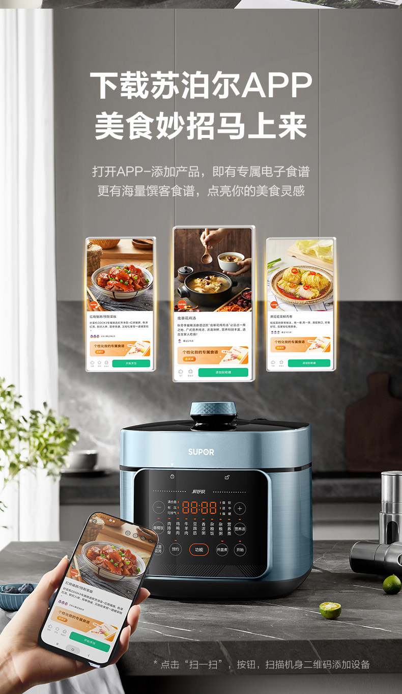 Supor Electric Pressure Cooker for Home Use, 5L Large Capacity, Dual Pot High-Pressure Cooker, Multifunctional Rice Cooker, Smart New Model