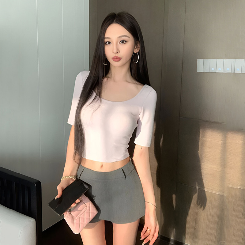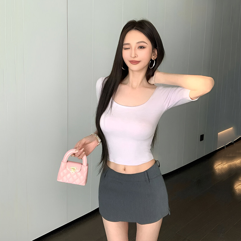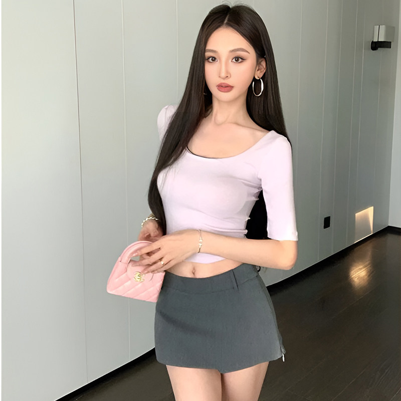Super Pretty Lavender Mid-Sleeve T-Shirt for Women, Summer 2025 New Style, Beautiful and Sexy, Tight-Fitting, Slimming Short-Sleeve U-Neck Top