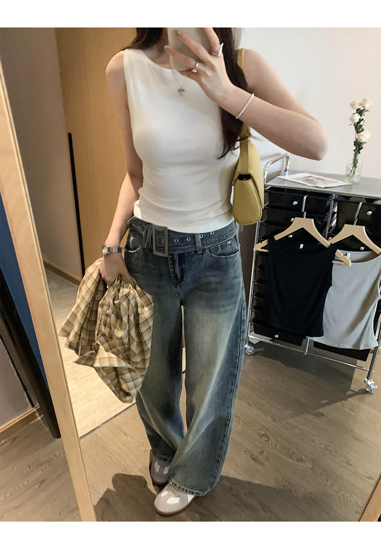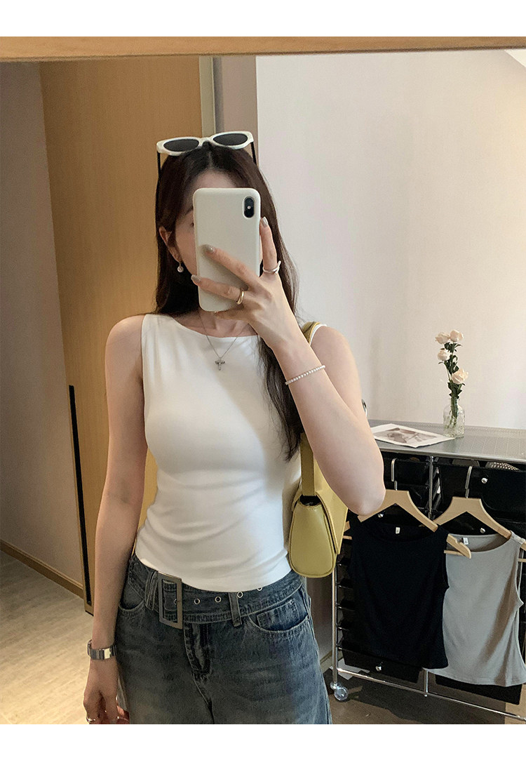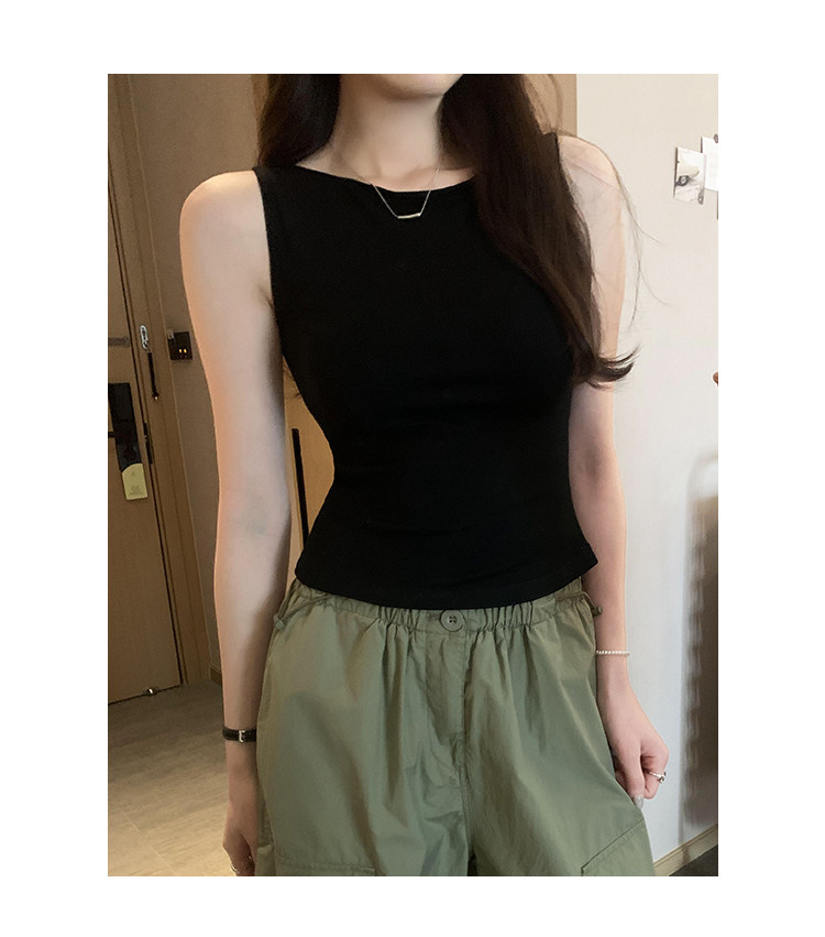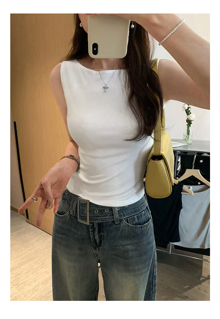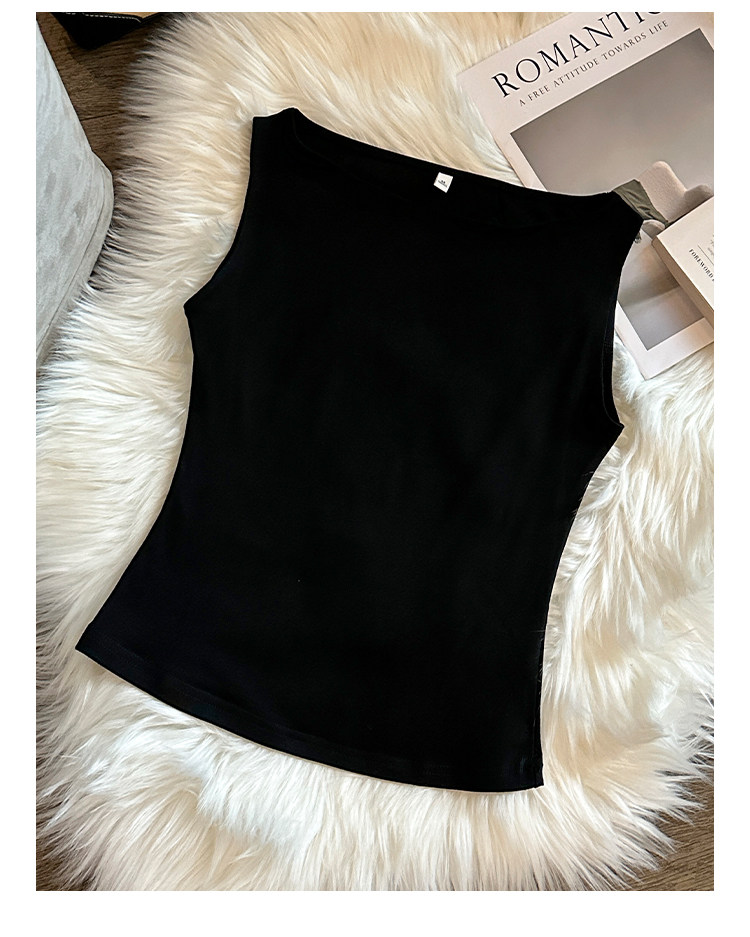 Beautiful and Stylish Off-The-Shoulder Sleeveless Tank Top for Women, Summer 2025 New Style, Trendy and Slimming Short T-Shirt for Outerwear