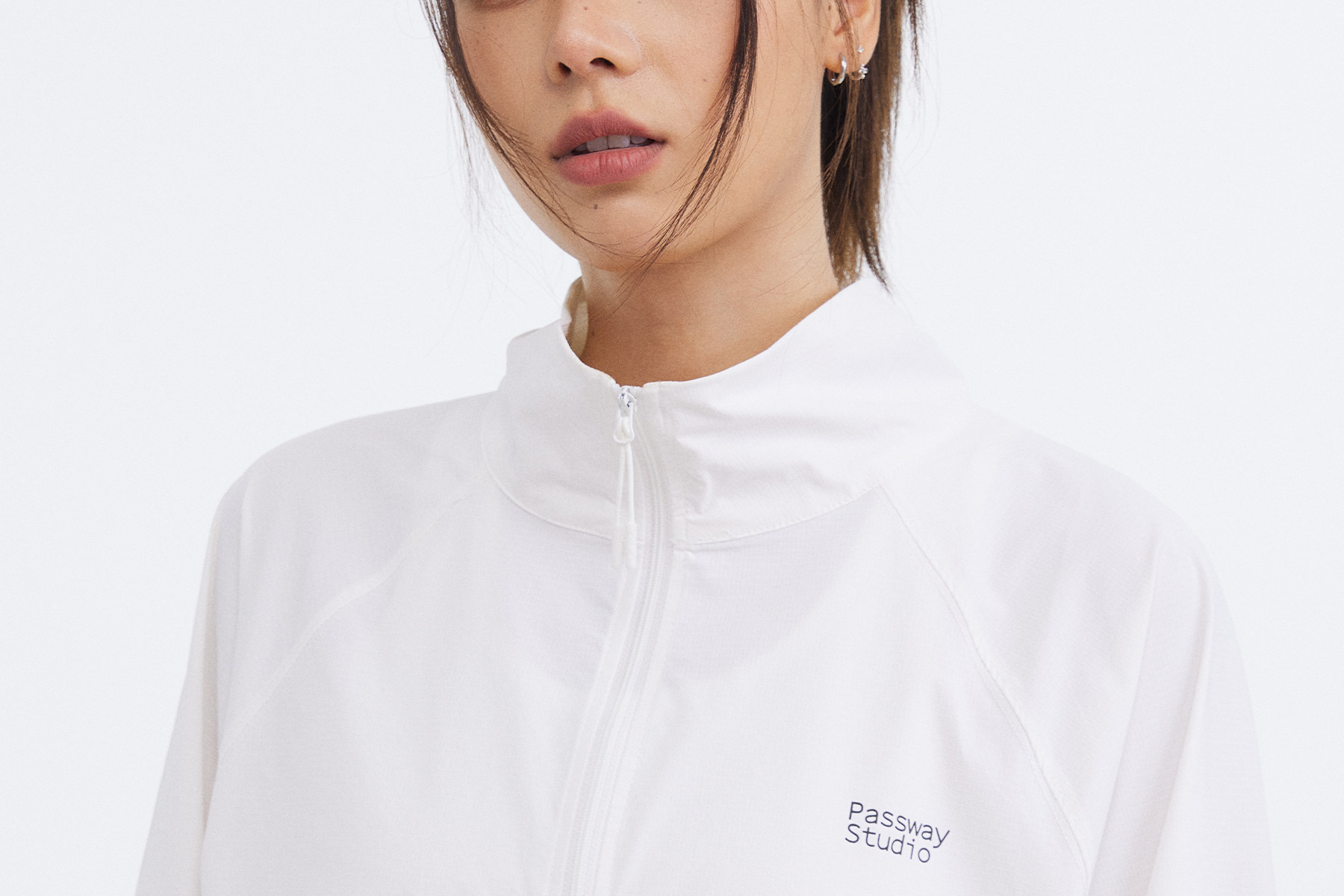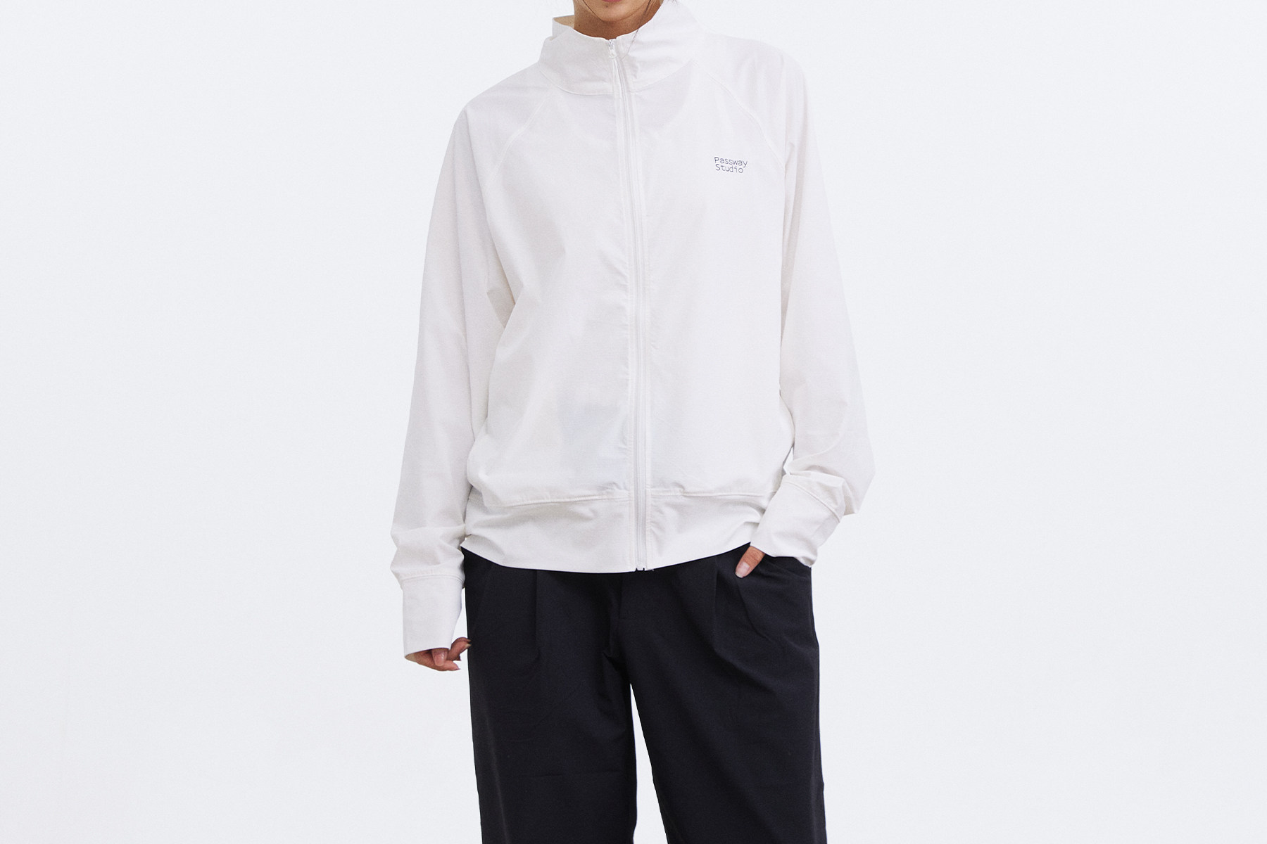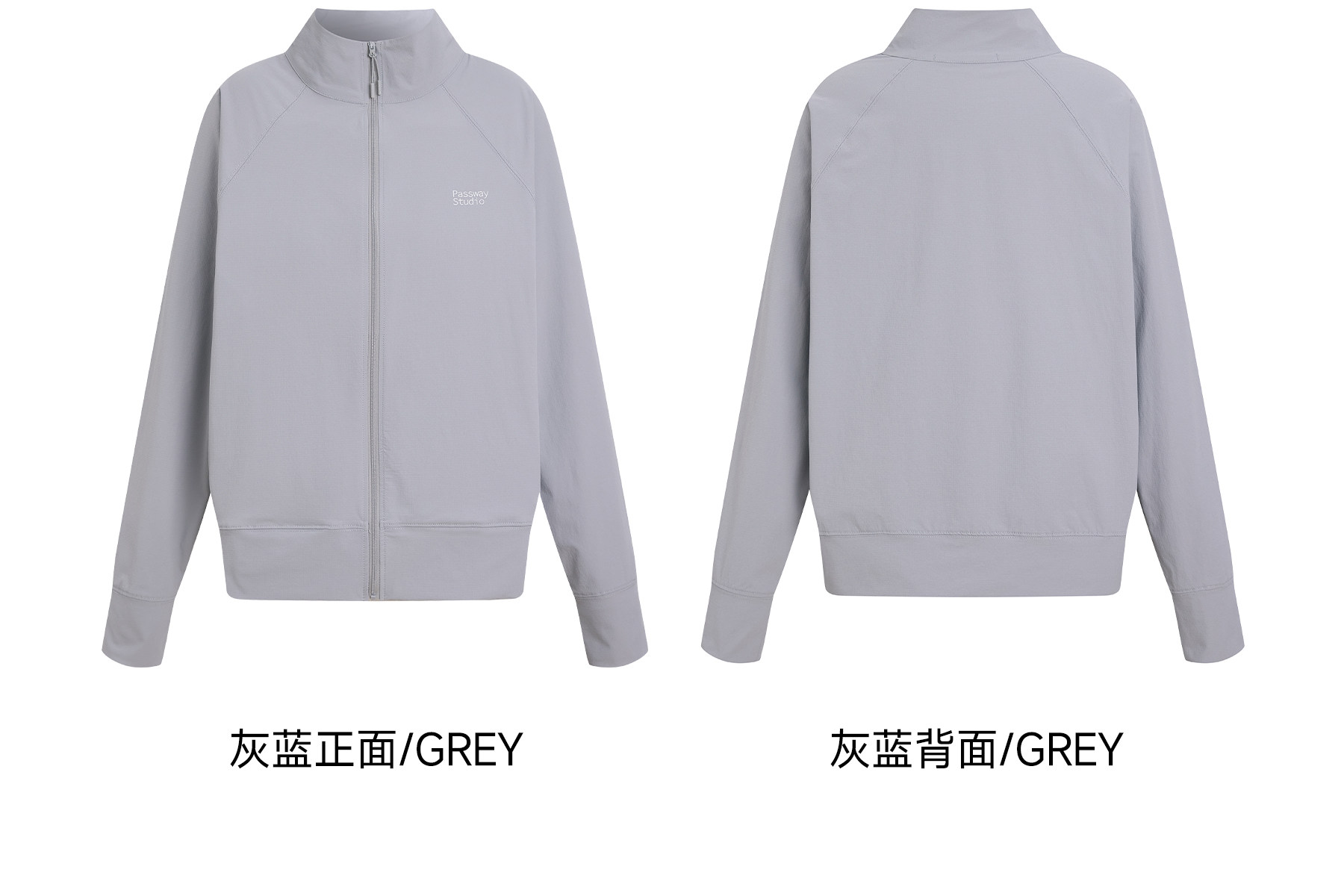 Passway Studio Stand Collar Loose Raglan Sleeves Sun Protection Jacket Zipper Summer UPF50+ Cool Long Sleeves