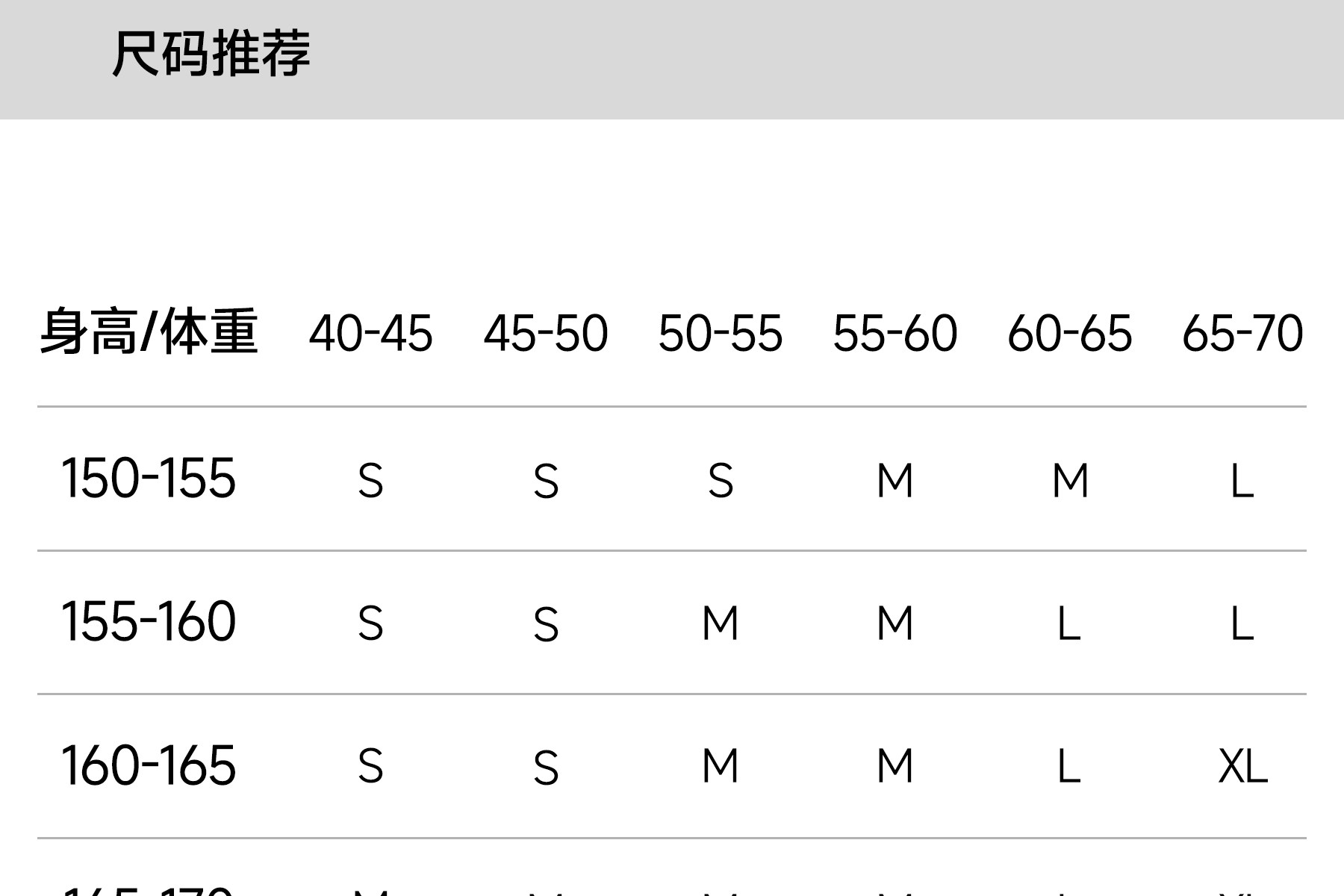 China (cm) 160-165/84-86 165-170 / 88-90 167-172 / 92-96 168-173 / 98-102 170-176 / 106-110
