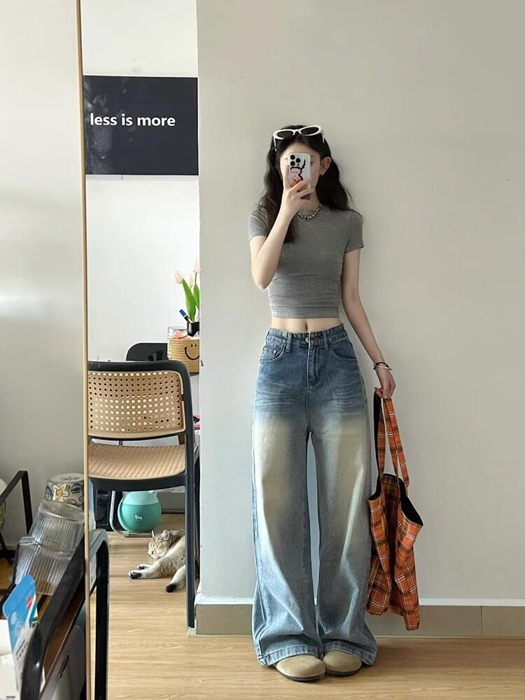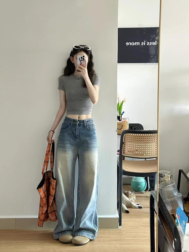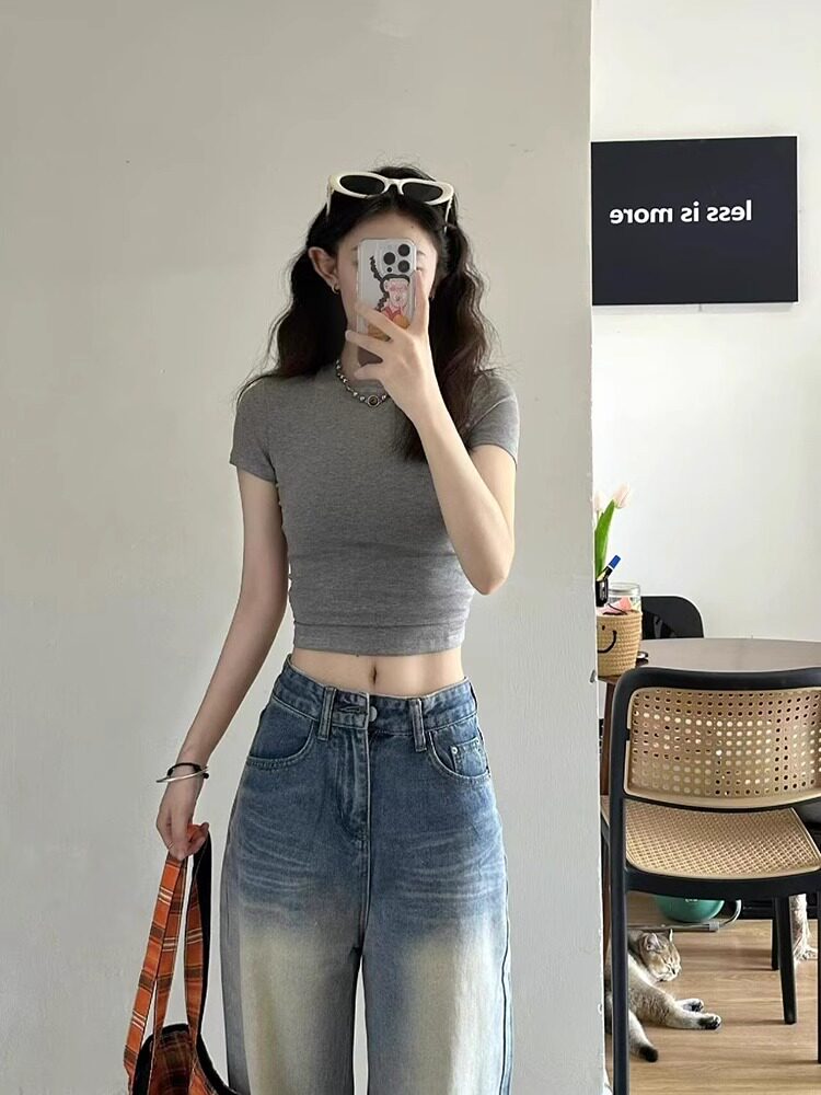American-Style Sweet and Spicy Short Round-Neck Short-Sleeve Women's Summer Outerwear, Tight-Fitting, Figure-Flattering, Slimming Inner Top T-Shirt