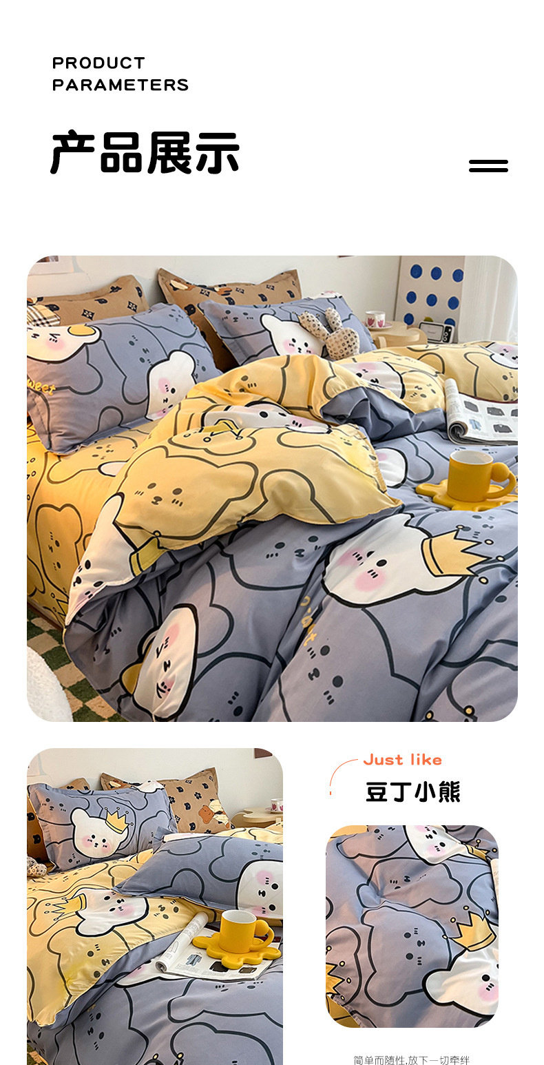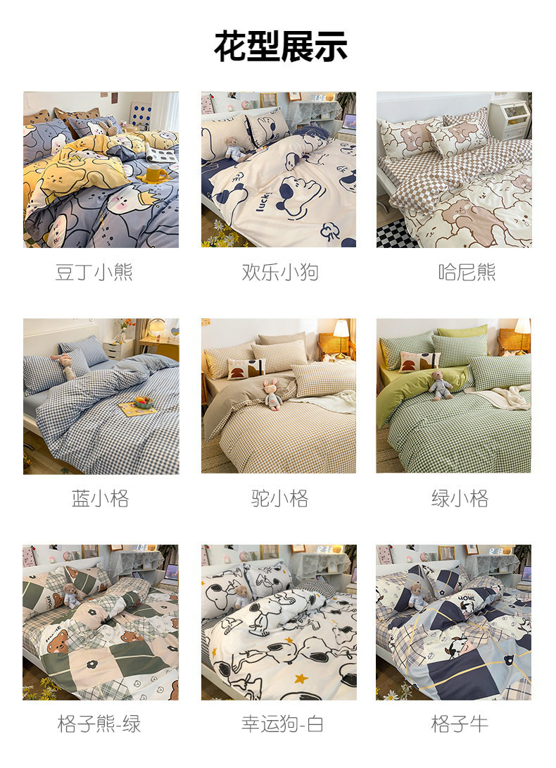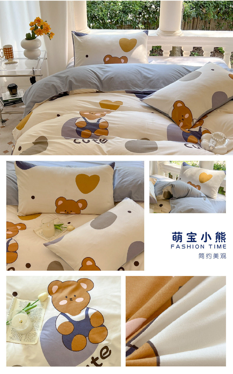 Four-piece set cartoon single-piece bedding dormitory sheets quilt covers quilt covers three-piece set spring