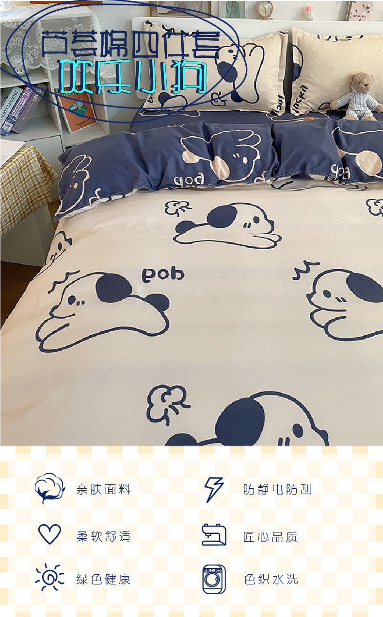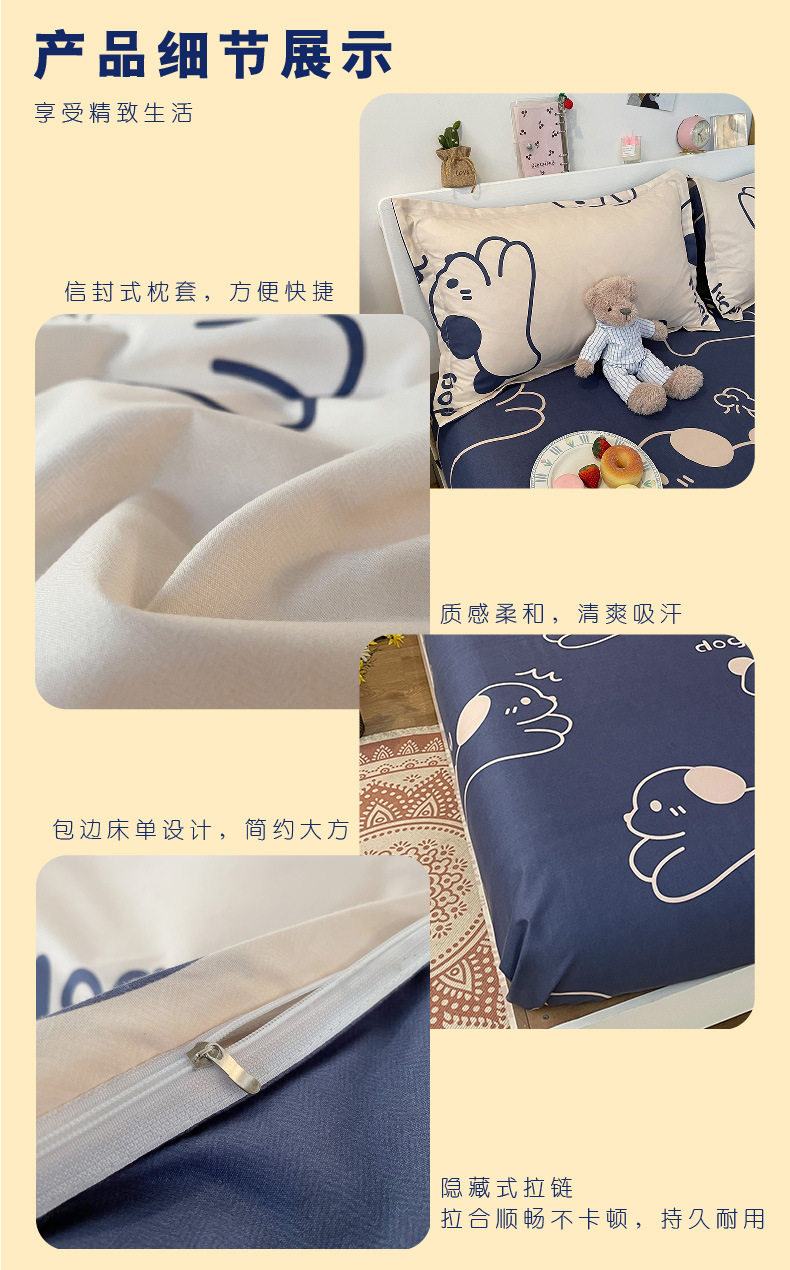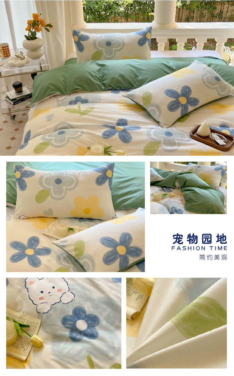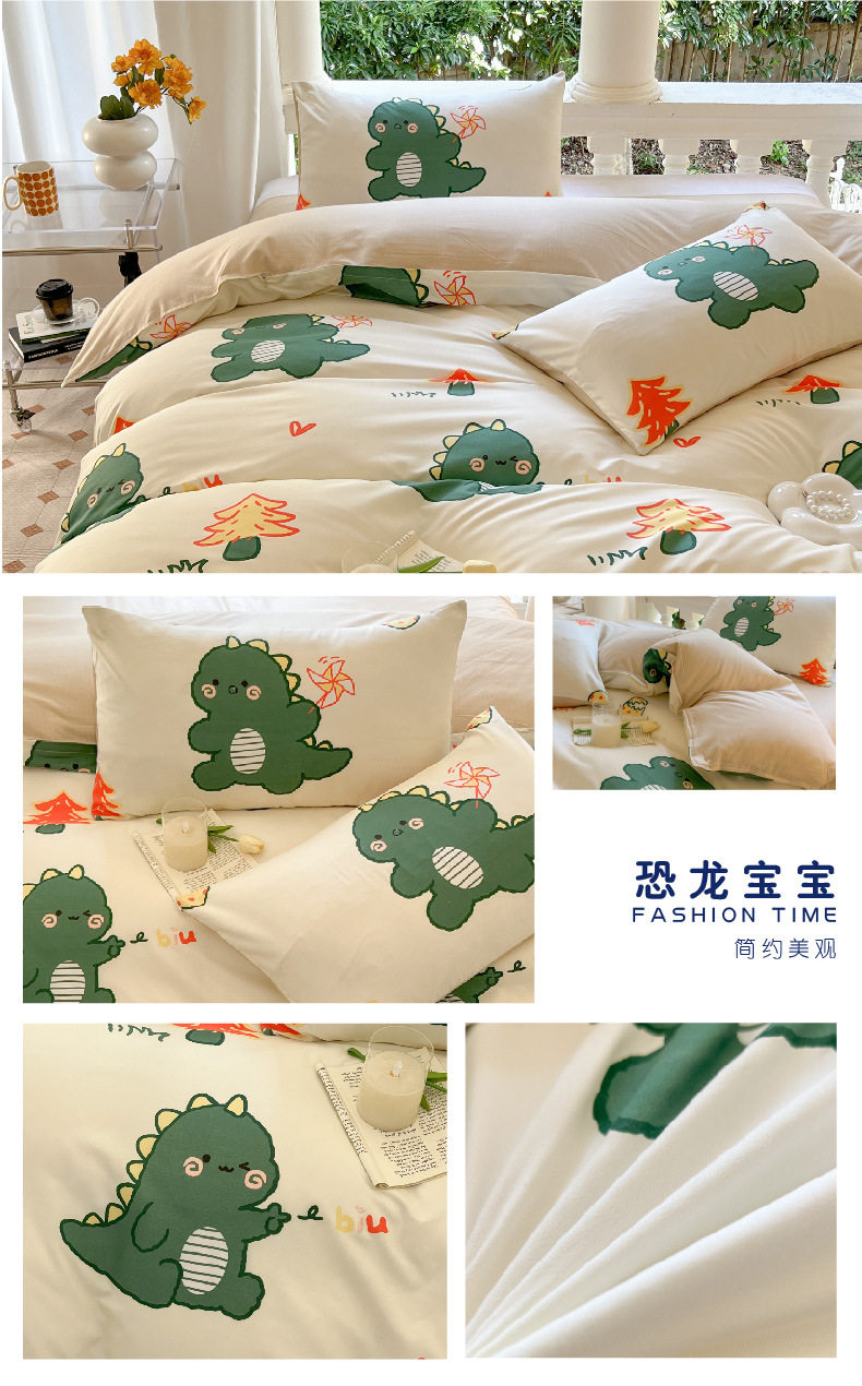 Four-piece set cartoon single-piece bedding dormitory sheets quilt covers quilt covers three-piece set spring