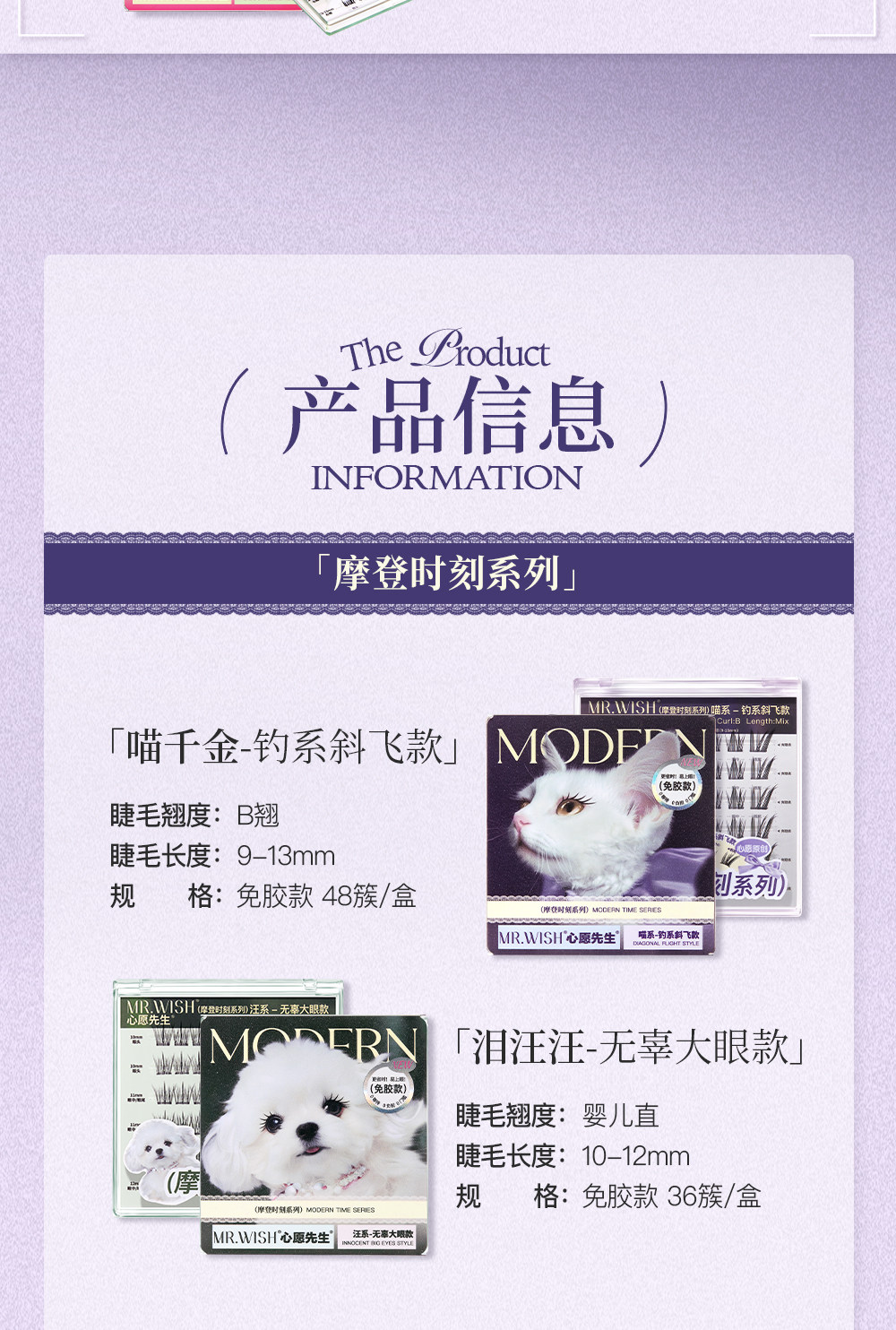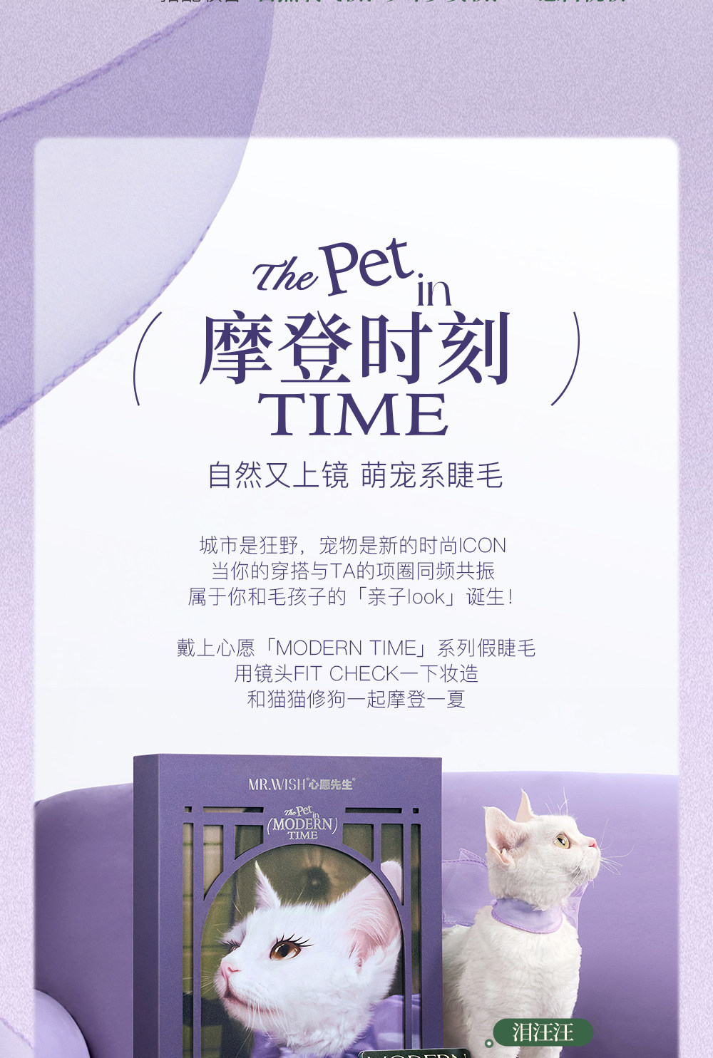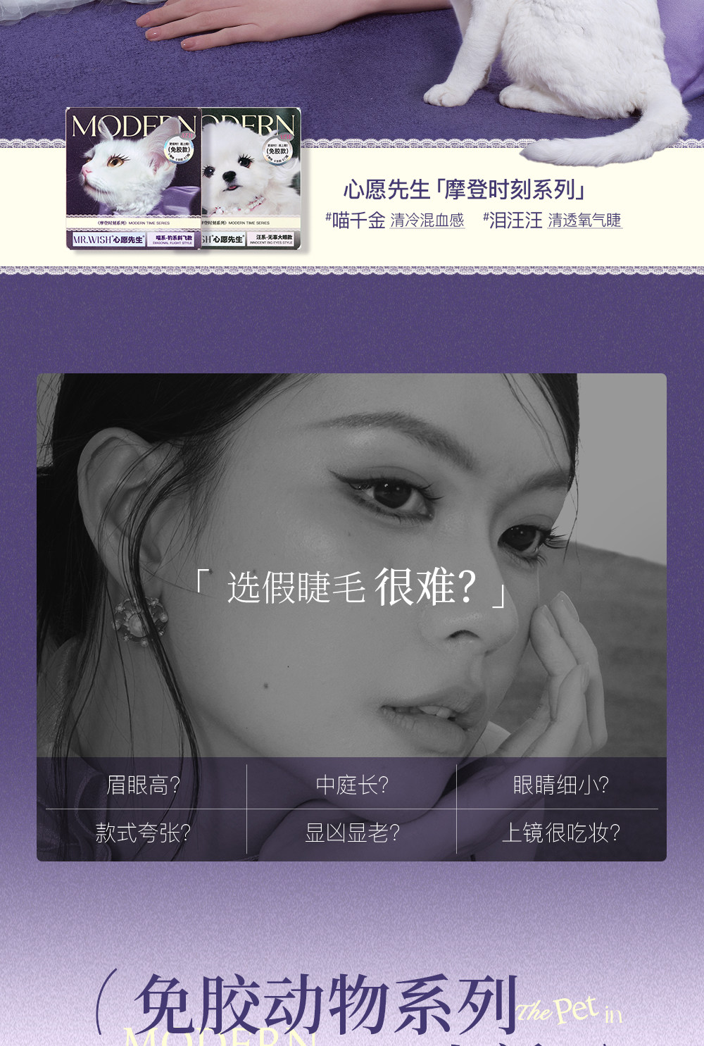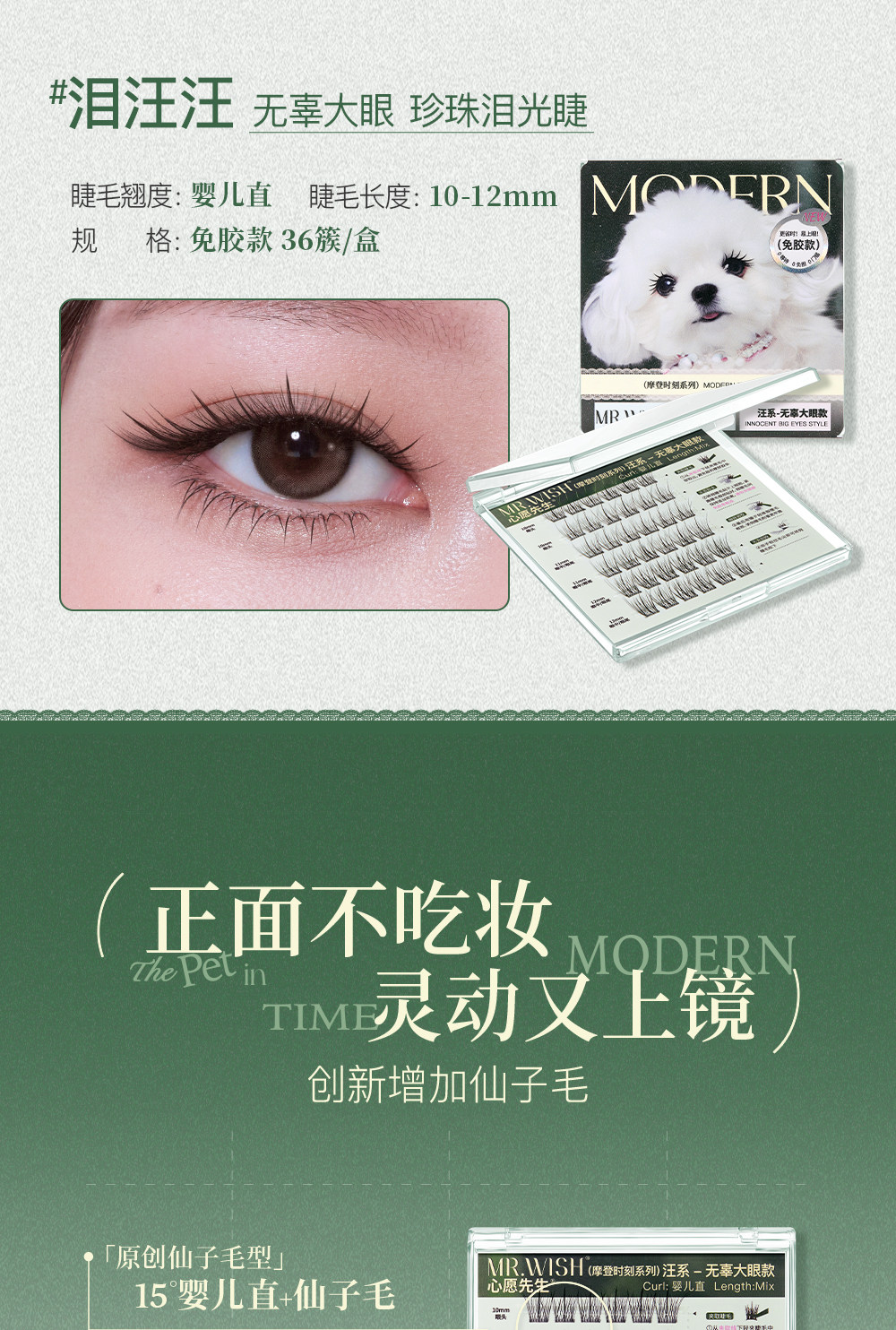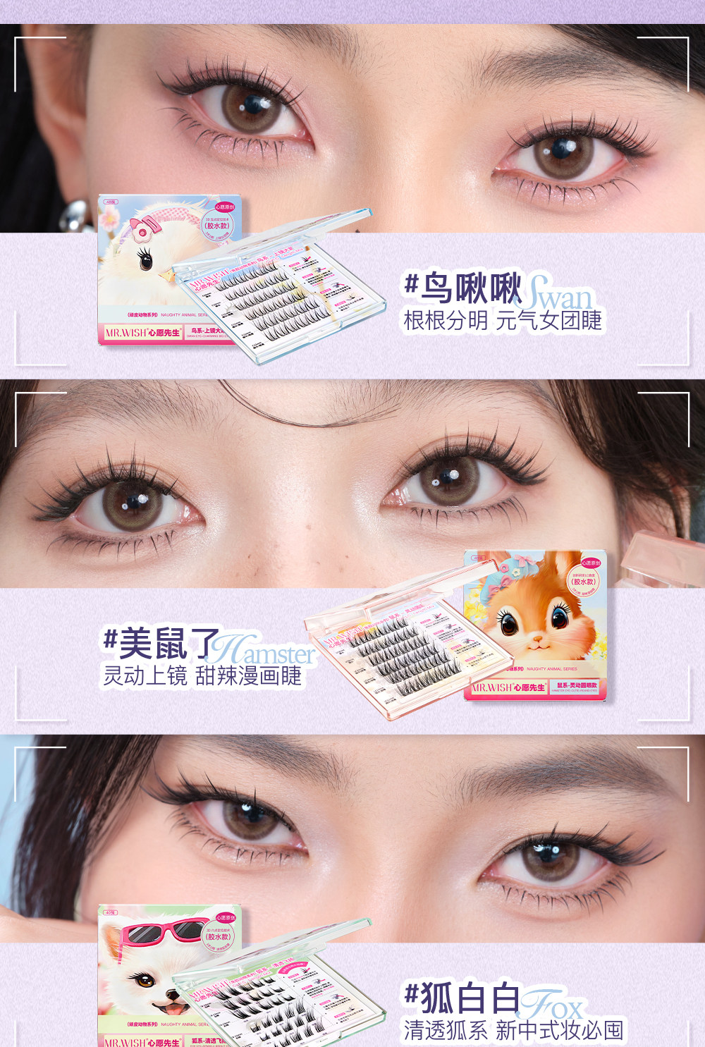 Mr. Wish Modern Animal Teary Eyes Meow Princess Cotton Glue-Free False Eyelashes Glue Type Baby Straight 15 ° Light Makeup