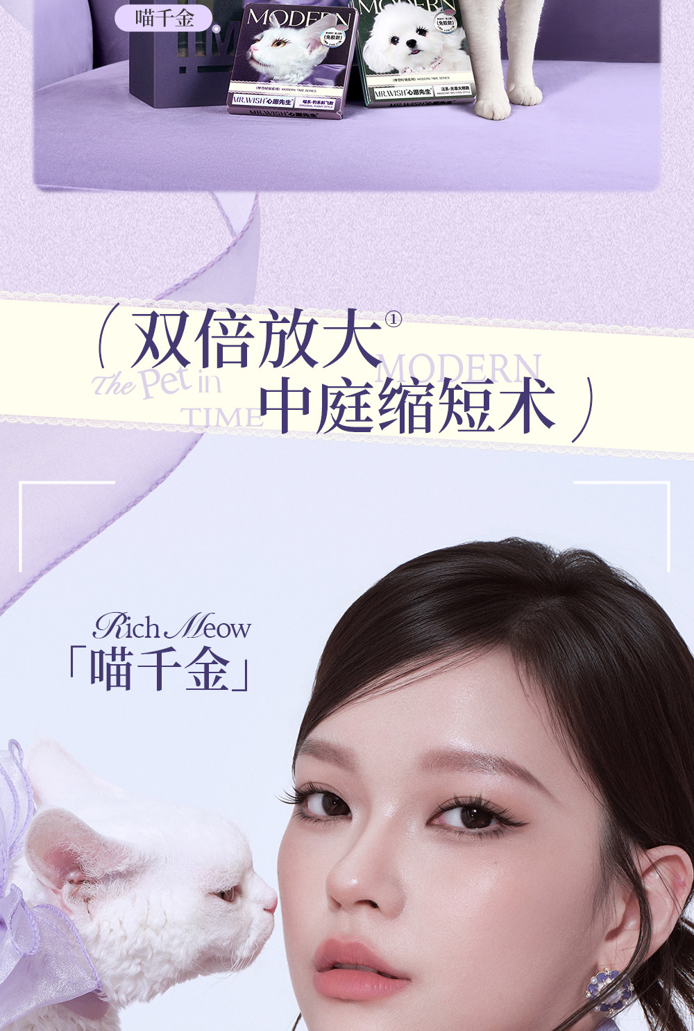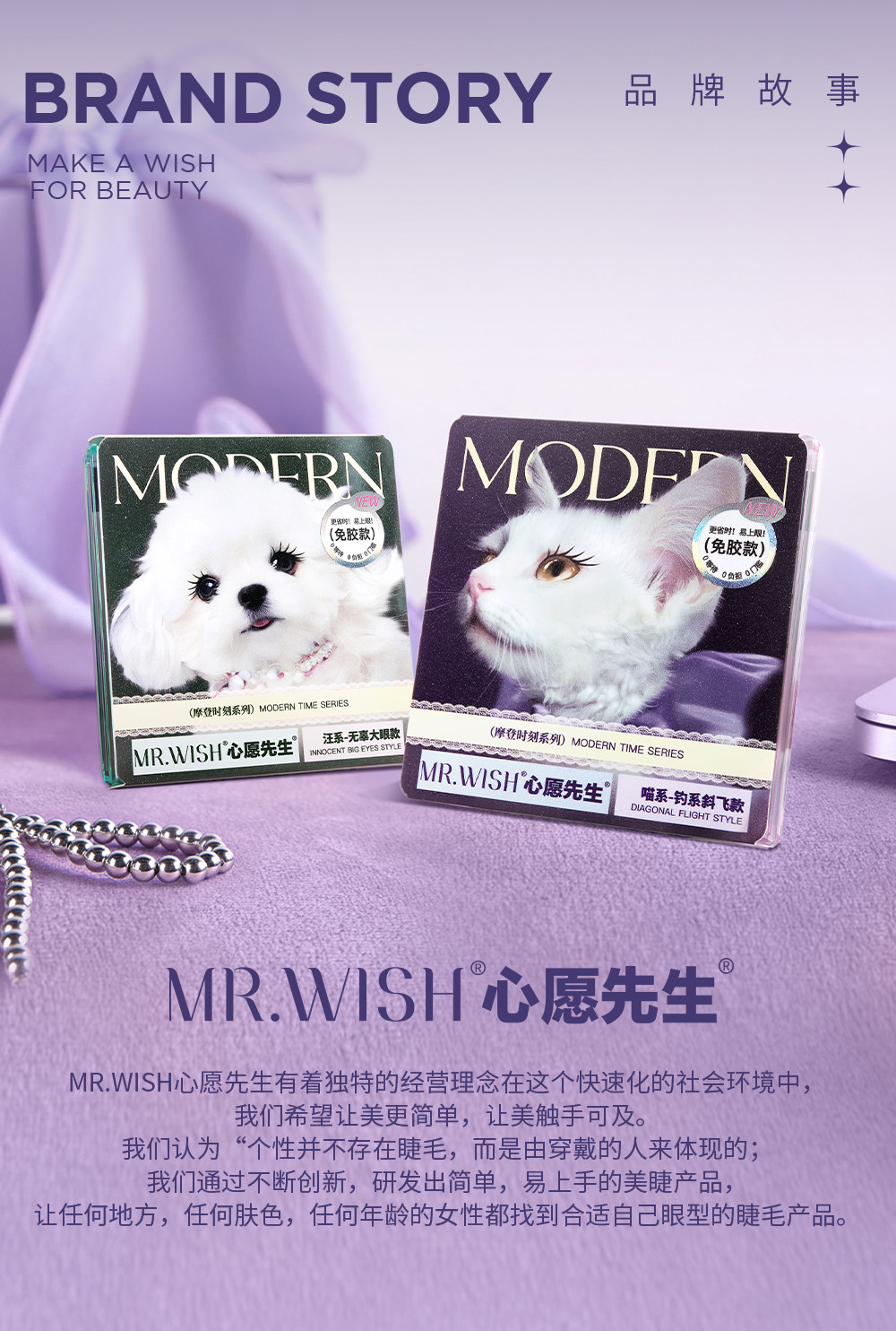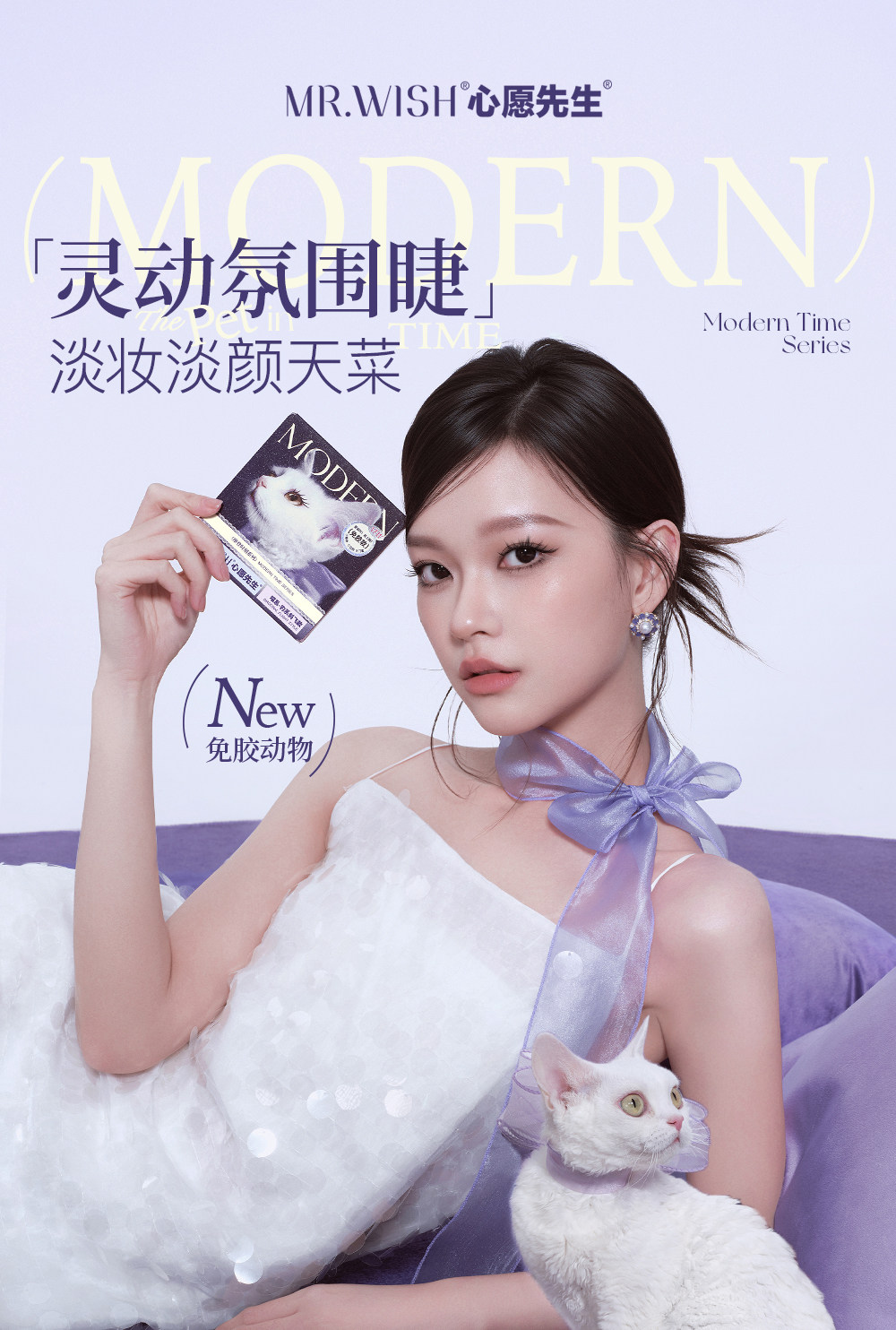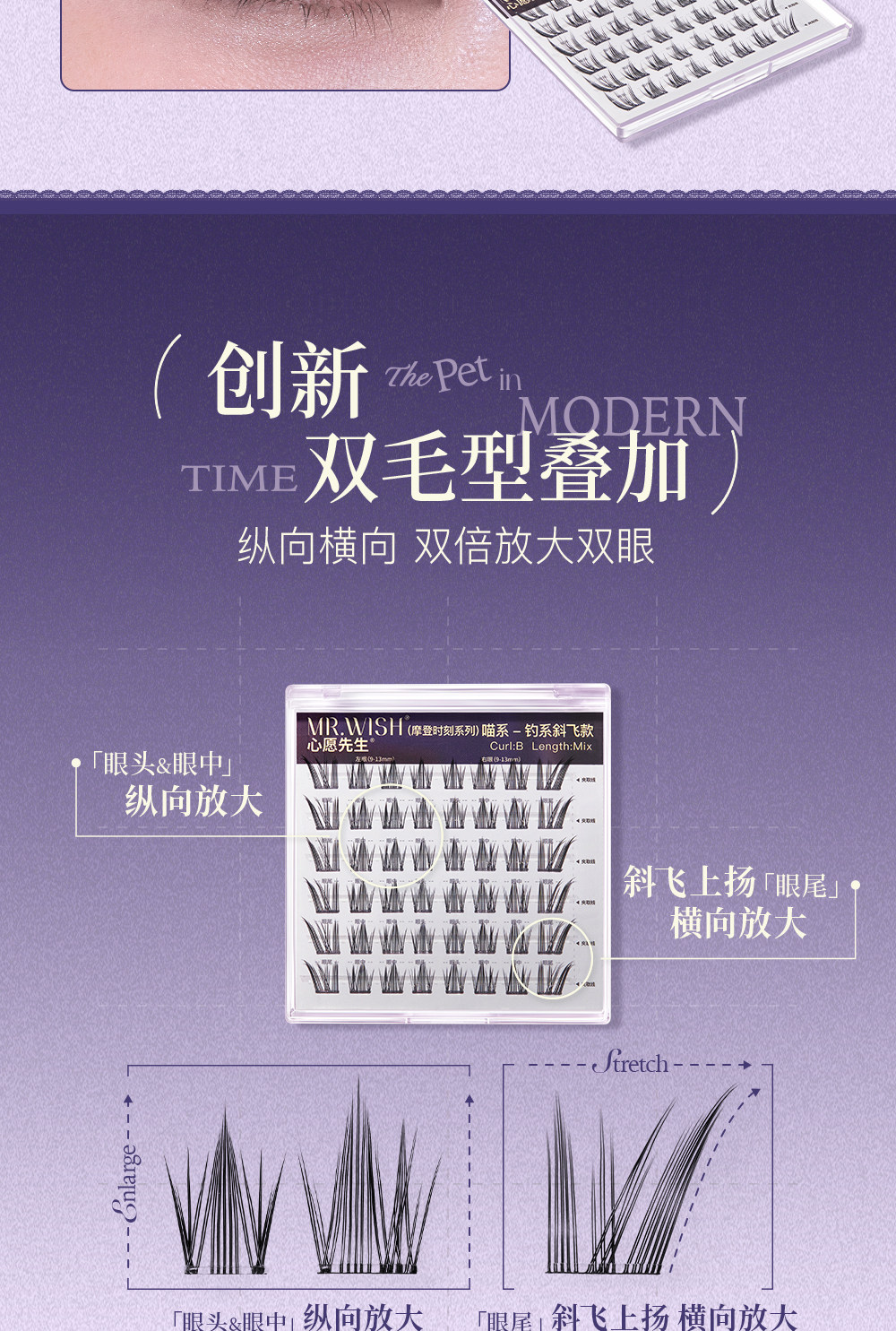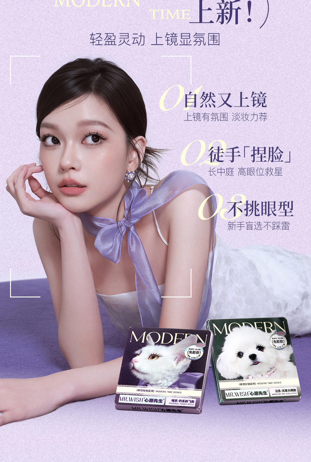 Mr. Wish Modern Animal Teary Eyes Meow Princess Cotton Glue-Free False Eyelashes Glue Type Baby Straight 15 ° Light Makeup