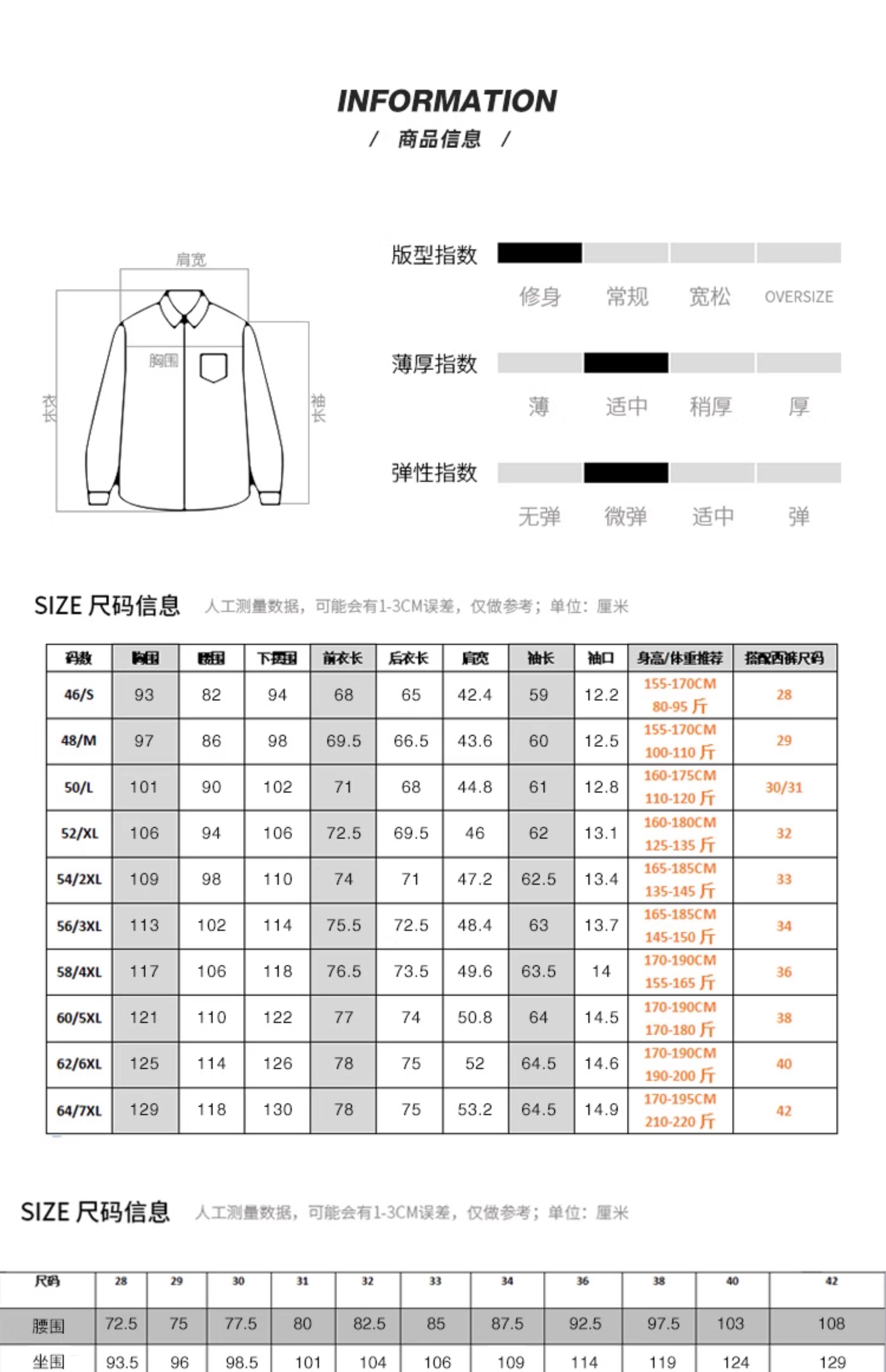 Size 48/M[Recommendation 47.5-52.5kg],50/L[Recommendation 52.5-60kg],52/XL[Recommendation 60-67.5kg],54/2XL[Recommendation 67.5-74kg],56/3XL[Recommendation 74-80kg],58/4XL[Recommendation 80-87.5kg],60/5XL[Recommendation 87.5-95kg],62/6XL[Recommendation 95-102.5kg],64/7XL[Recommendation 102.5-110kg]